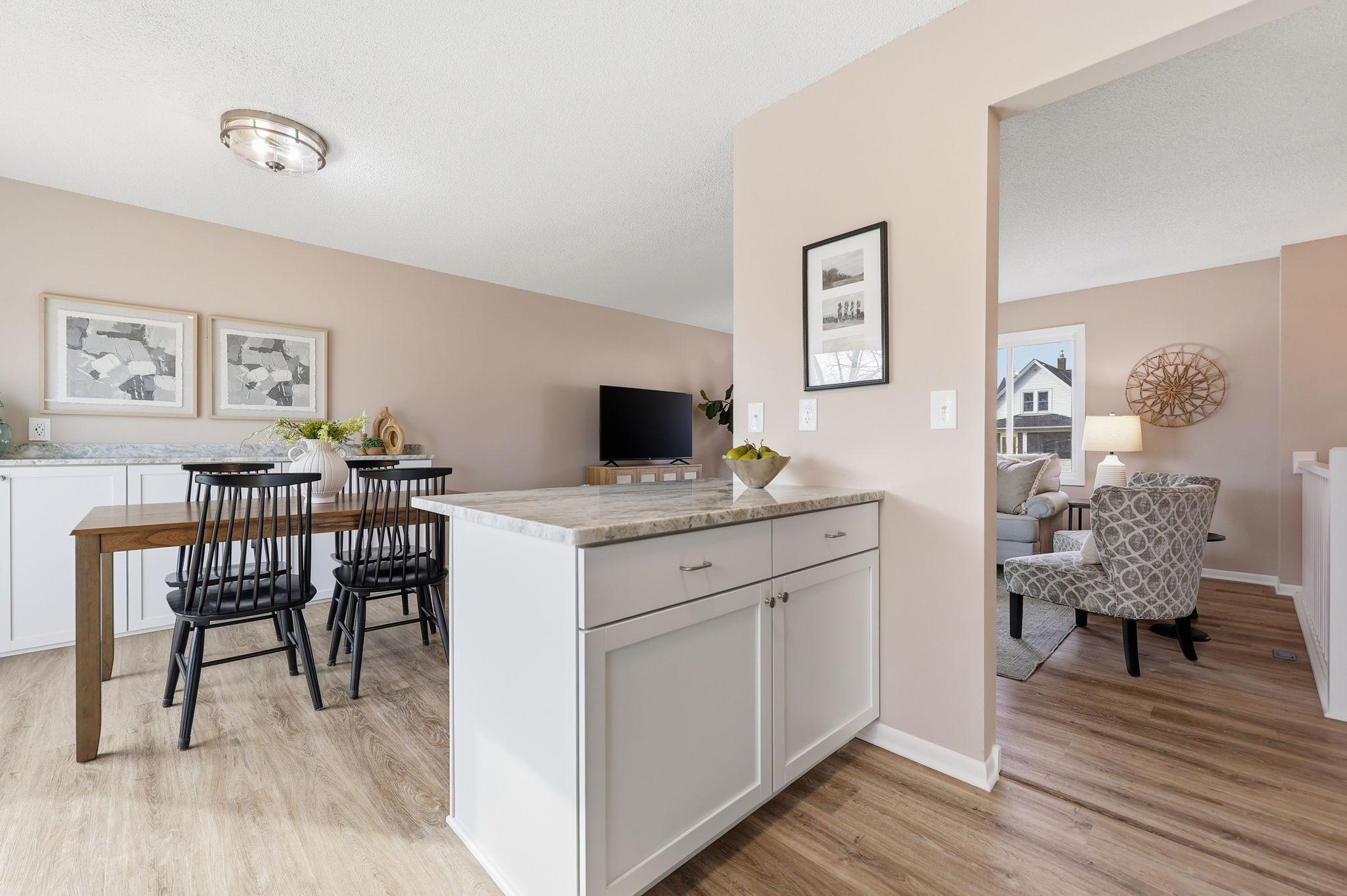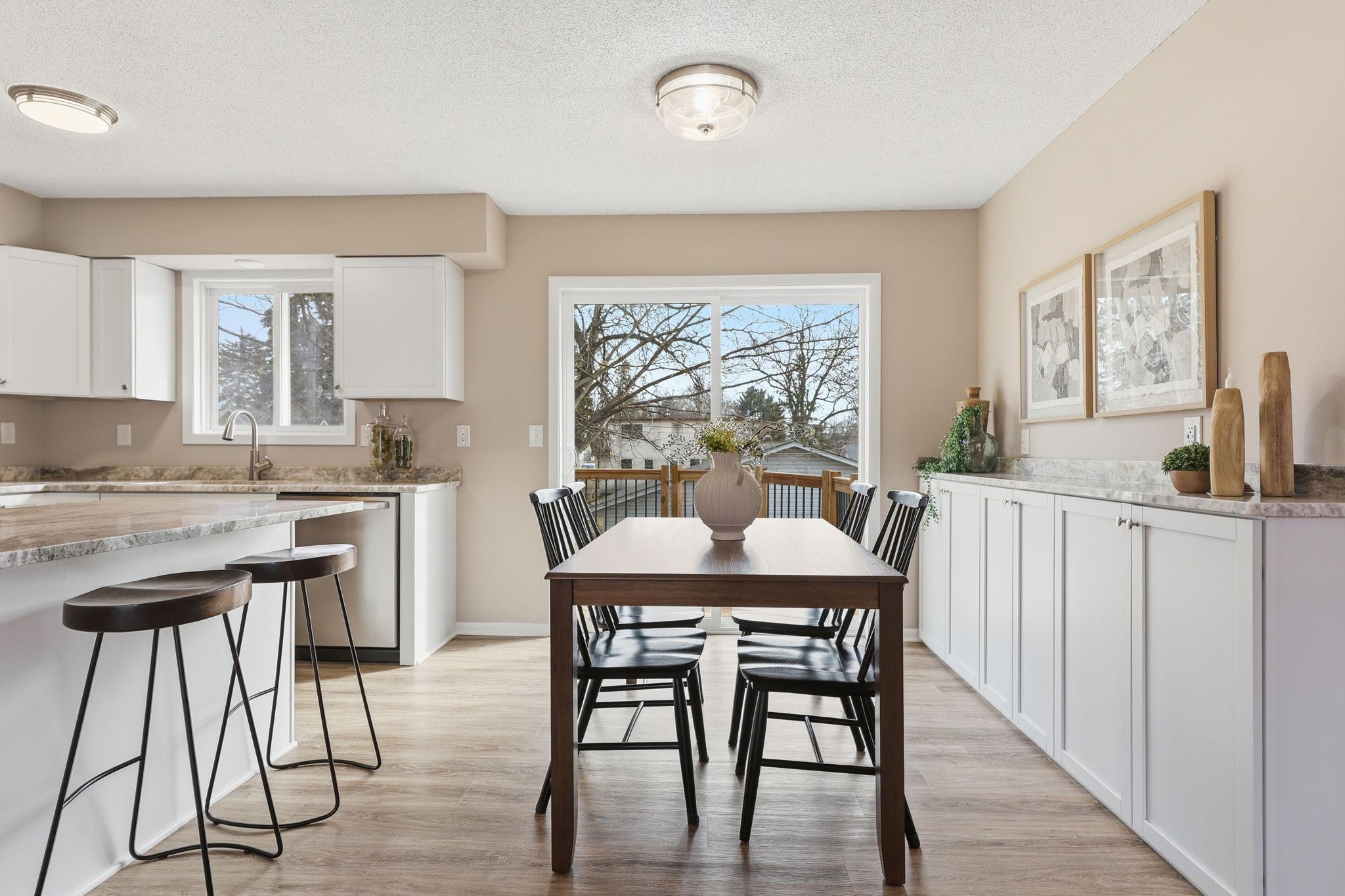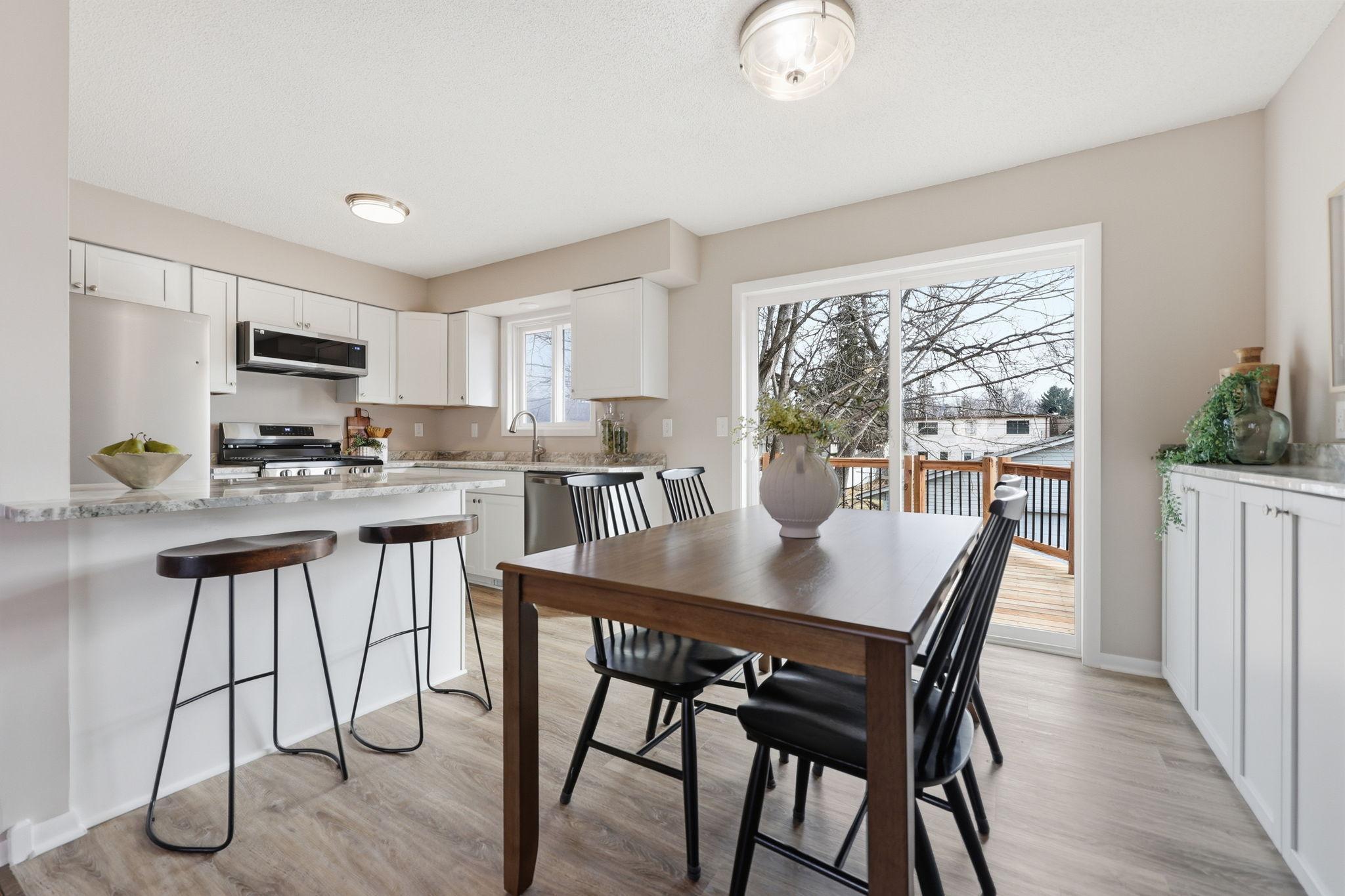 Turn-key and ready for you, this beautifully updated home shines from the moment you arrive. The open floor plan is filled with natural light and features durable LVP flooring along with abundant storage throughout. The kitchen offers stainless steel appliances, granite countertops, classic shaker cabinetry, a drop-in sink, and a convenient coffee bar that provides additional storage and prep space. A sliding glass door leads directly to the deck, creating an easy connection to the outdoors and peaceful rear views.The lower level includes two private bedrooms, a bath, and an oversized family room that provides plenty of space to relax or entertain. Outside, enjoy the incredible patio tucked into the backyardperfect for unwinding at the end of the day or hosting friends and family. The large garage offers ample room for vehicles, storage, or a workshop. A fantastic opportunity for a move-in-ready home you wont want to miss.