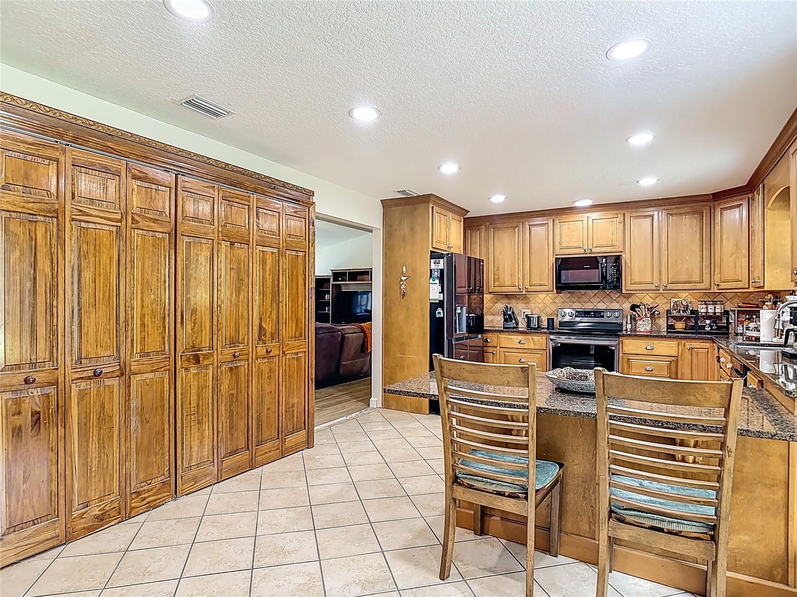 Tucked away on a cul-de-sac in the Tomoka Woods community, this spacious ranch-style home offers the kind of privacy and flexibility thats getting harder to find and theres no HOA to limit your lifestyle. Located just about a mile from the public boat ramp at beautiful Lake Dias, this property is perfectly suited for outdoor enthusiasts who want easy access to boating, fishing, and nature while still enjoying the comforts of home. With plenty of space to park your RV (with hookup available), boat, and recreational equipment, this property was made for those who love the outdoors.The homes classic cedar exterior welcomes you into a generous foyer that opens to a warm and inviting living room highlighted by a dramatic floor-to-ceiling wood-burning fireplace. Just a step up from the living room, the dining area features French doors that lead to a screened porch overlooking the impressive 20 x 50 screened swimming pool, creating an ideal setting for indoor-outdoor living and entertaining.The kitchen is designed with the home chef in mind, with newer appliances and offering an abundance of rich warm toned wood cabinetry, granite countertops, a convenient breakfast bar, and an entire wall dedicated to pantry storage.A large family room provides the perfect space to relax, play billiards or entertain and a full bathroom featuring an oversized jetted soaking tub styled with a tropical island feel for your own private retreat.The primary suite offers direct access to the porch and pool through glass sliders, while the thoughtfully designed split-bedroom floor plan places guest bedrooms on the opposite side of the home with a full bath conveniently located between them.Outside, the property continues to impress with a three-car garage and workshop area, plus a separate storage shed for lawn and garden equipment. The home is connected to city water, and an additional private well is available for irrigation, helping maintain the property efficiently. There is also a wire fenced dog run for furry friends to have their own space.Several valuable updates add to the homes appeal, including a new roof installed in 2023, a 2019 hot water heater, Solar panels, fully paid for, help heat the pool and contribute to hot water production for improved energy efficiency. New duct work throughout the home. Updated sprinkler system with new spray heads. With brand-new gutters already installed, this home is ready to handle Floridas summer downpours while keeping maintenance simple for the next owner. Security system with video cameras conveys, adding both convenience and peace of mind.For those dreaming of a little homestead lifestyle, there is even space to raise chickens and enjoy a more self-sufficient way of living.This property offers the rare combination of space, privacy, and outdoor freedom, all within close proximity to one of the area's most scenic lakes.