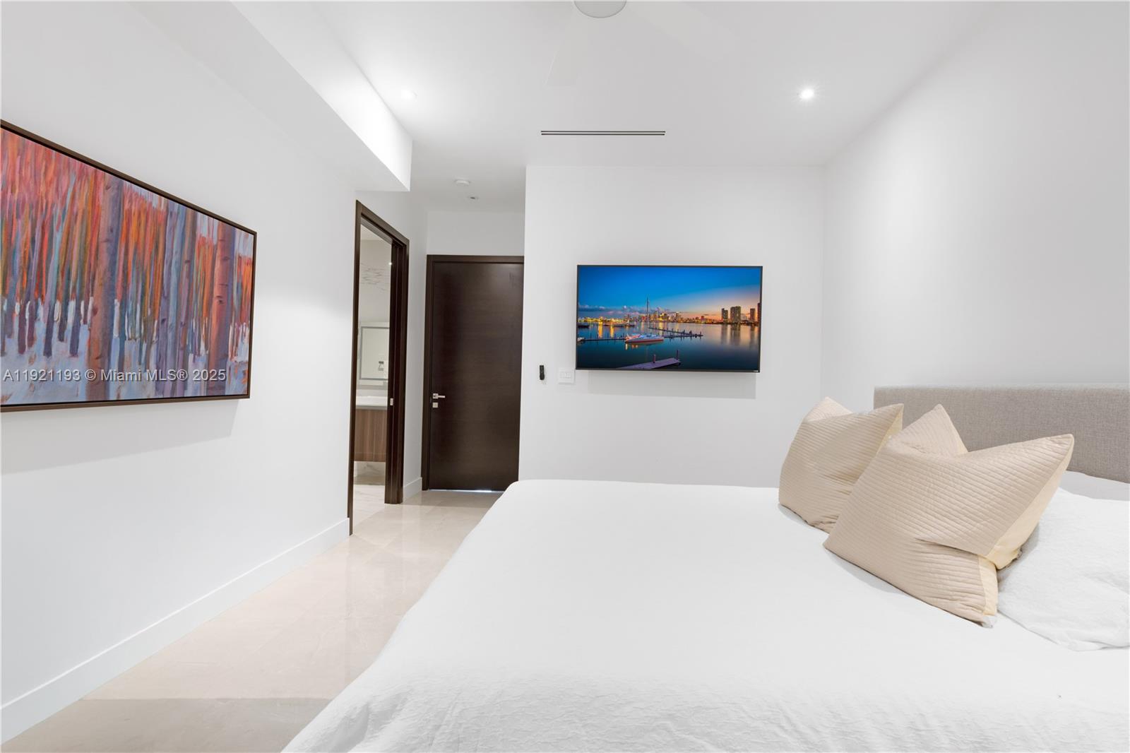 A residence of remarkable elegance, volume and presence throughout. Soaring 12-foot ceilings, expansive open spaces, and beautifully filtered natural light define this distinguished residence. Premium 48x48 Spanish ceramic flooring, 8-foot solid wood doors, and a sleek modern kitchen appointed with Bosch appliances elevate the homes refined aesthetic. A private family room enhances the living experience with a built-in ice maker, wine cooler, and direct access to the terrace. Sliding glass doors open wide to create a seamless connection between the interior and the outdoor areas, extending the homes sense of scale and comfort. Additional features include Toto ceramic fixtures, upgraded electrical installation for enhanced efficiency, and a strategically engineered AC system. Approved pool plans offer the opportunity to further elevate the exterior environment.