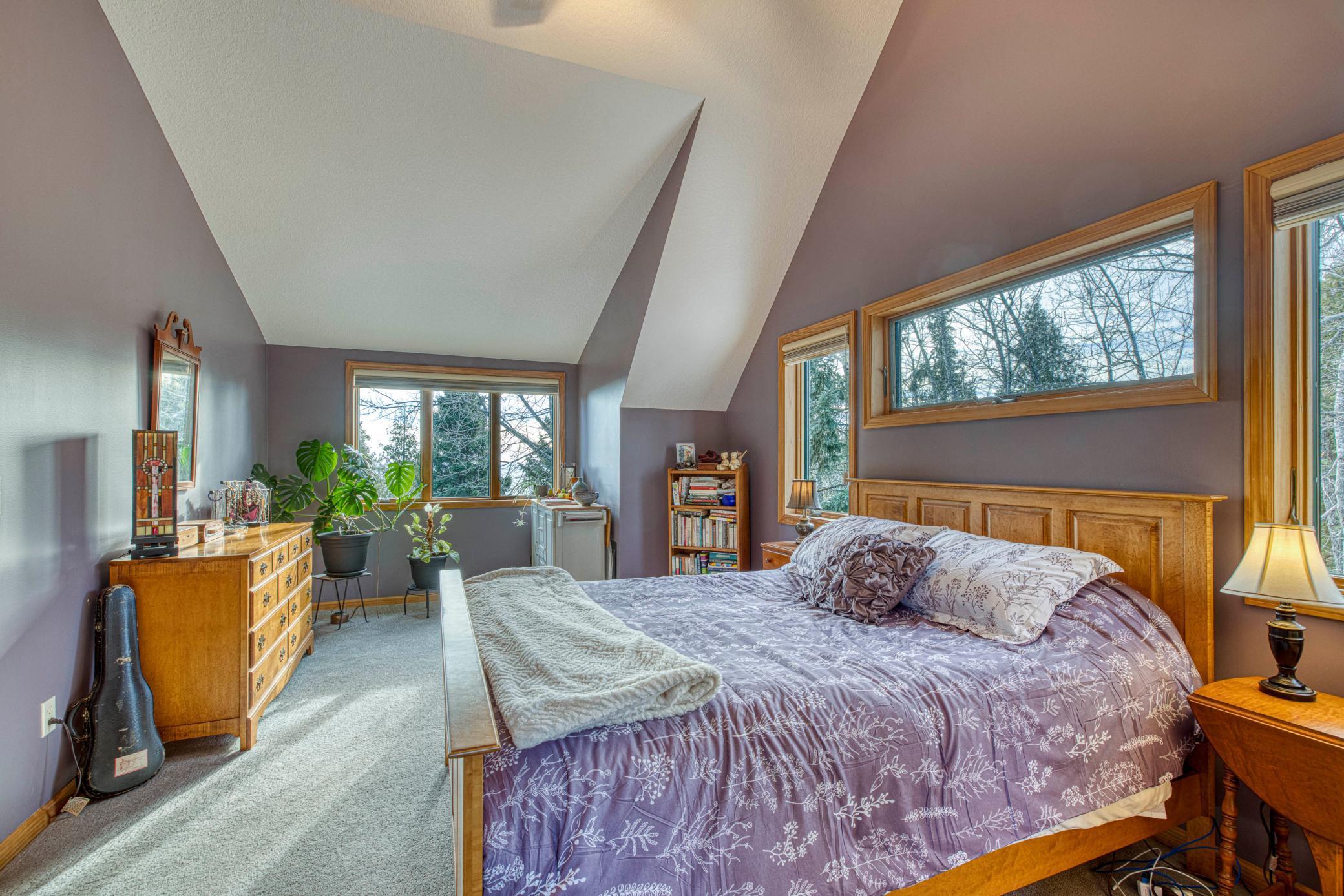Stunning views of the north woods and the majestic Lake Superior. This is a unique situation where you are part of an HOA, $200/month and It Includes, sewer, water,trash, plowing and mowing of common areas. You have joint access to Lake Superior with a boardwalk and stairs. Only 13 homes and this home is amazing with its 3Bedrooms, 3.5 bathrooms updated kitchen with dining/sitting room facing the lake out the patio doors. Living room has a bank of windows that are floor to ceiling thatgive you that grand entrance feeling, The upper level has a loft and a custom designed railing situated between the two upper level bedrooms. The lowest level of thehouse has a nice family room with built in cabinets, a wet bar, bathroom and a walk out to access the sauna! There is a patio to cool off from the sauna and sit andlisten to the trees and the Lake. The detached 2 car garage is finishing and the upper level of the garage is finished off as a studio or office, no plumbing but excellentspace! There is a new furnace, a generator for the emergency power outage, updated colors, redone hardwood floors, new counter tops, 2 gas fireplaces and a coveredfront porch to enjoy those warm summer nights. You are at the beginning of the North Shore, you are located very close to Crow Creek hiking trails, Gooseberry StatePark, Superior Hiking trail and numerus State Parks!