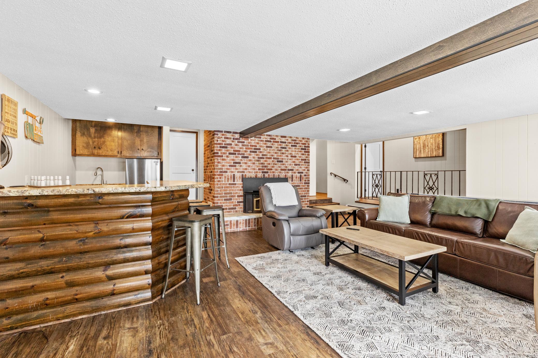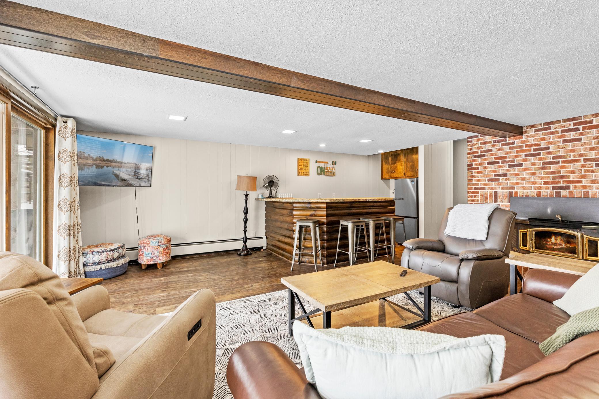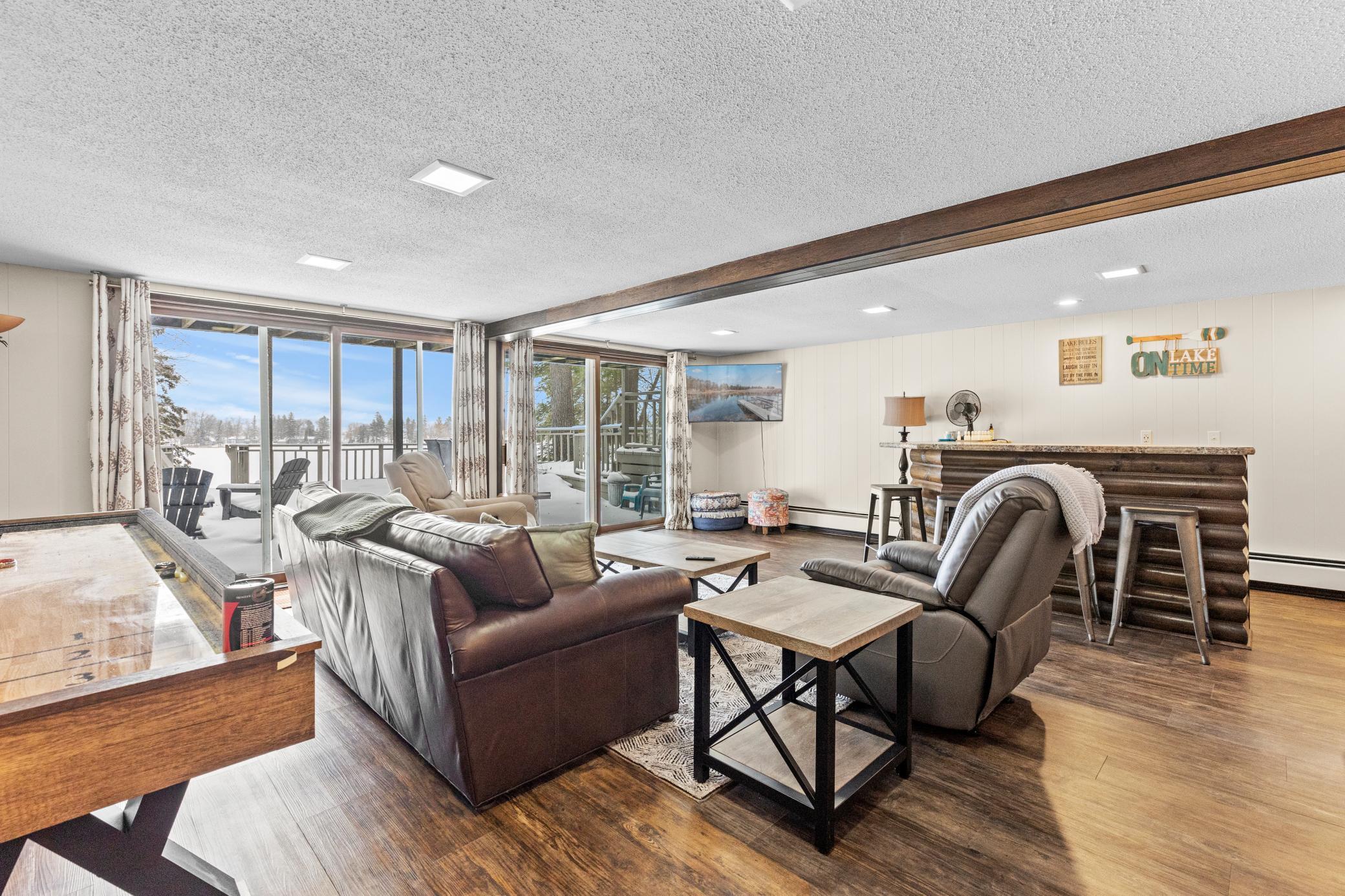 Discover a refined Northwoods retreat in Akeley, MN. Set on a quiet cove of pristine Eleventh Crow Wing Lake- one of the area's clearest- this beautifully refinished walk-out home offers elevated year-round living. With 200+ feet of private shoreline on a spacious double lot, this property is designed for those who love to host.The main level and walk-out lower level provide sweeping lake views and expansive gathering spaces. The home features a custom kitchen with stainless-steel appliances, updated baths, a wet bar, a private sauna, and two fireplaces. While officially a 2-bedroom home, the layout includes two additional rooms currently utilized as bedrooms, providing the functional space of a 4-bedroom residence.Recent 2024 improvements include a fresh exterior/interior paint refresh and a rebuilt lower deck. With a private beach, floating dock, and immediate access to the Heartland and Paul Bunyan trails, this is more than a house- it's a lifestyle.