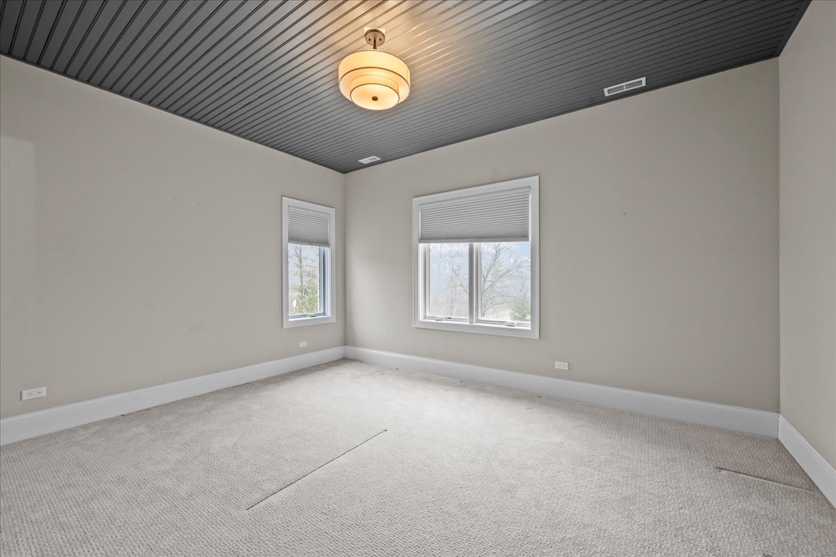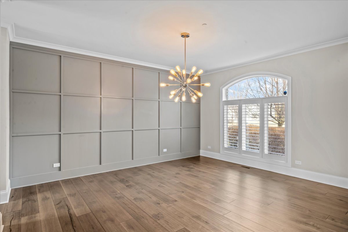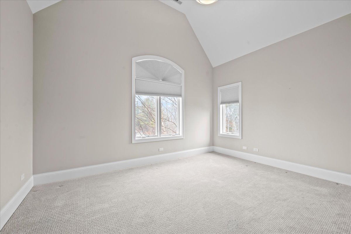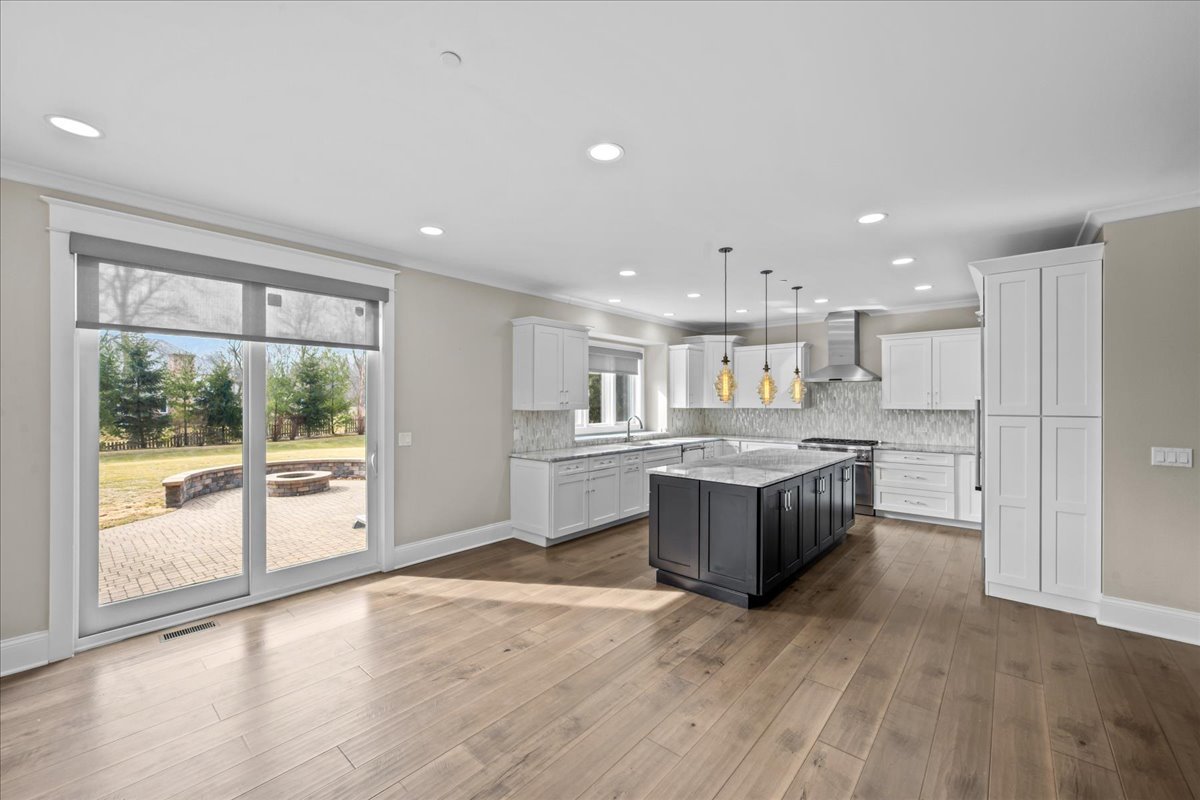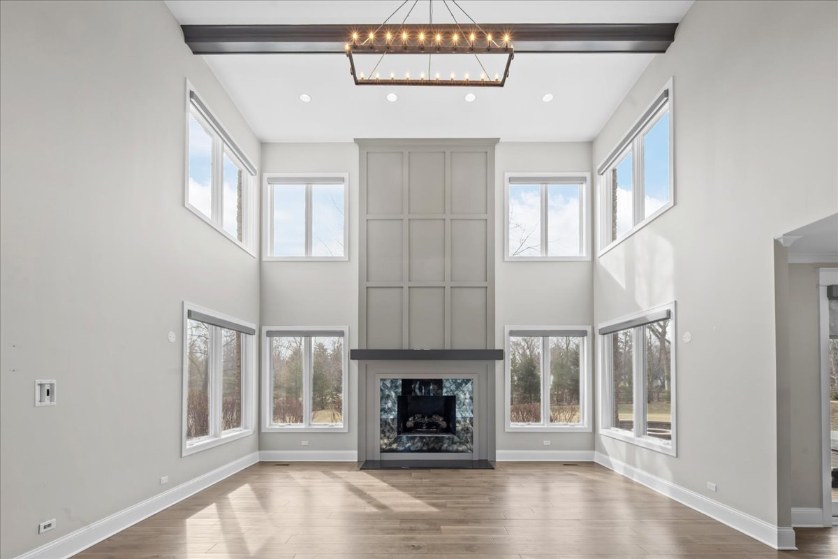 Built in 2015, this extraordinary 5,037-square-foot brick & stone estate is gracefully positioned on over an acre within a serene cul-de-sac in Wimbledon Estates, offering the perfect balance of privacy, sophistication, and modern comfort. The residence showcases soaring ceilings, gleaming hardwood floors, and thoughtfully designed living spaces throughout. The gourmet eat-in kitchen features custom cabinetry, an oversized quartzite island, high-end stainless steel appliances, and a walk-in pantry. A wet bar connects seamlessly to the dining room, highlighted by custom millwork. The living room is accented with plantation shutters, while the family room offers a dramatic two-story beamed ceiling and gas log fireplace. Enjoy a south-facing backyard with a paver patio, gas fire pit, and hot tub-perfect for outdoor entertaining. A spacious mudroom and laundry room sit adjacent to the four-car garage with epoxy flooring. A versatile first-floor bedroom, ideal as an office or guest suite, is located next to a full bathroom. Upstairs, two staircases-including a front staircase with iron balusters-lead to the expansive primary suite featuring a large dressing room with wet bar and two oversized walk-in closets. The luxurious primary bath includes a soaking tub, large shower, and double vanity. Three additional bedrooms complete the second level: two generous bedrooms with walk-in closets share a Jack-and-Jill bathroom, and one bedroom offers an en-suite bath and walk-in closet. The unfinished basement features tall ceilings, is already plumbed for a bathroom, and is ready to be finished to suit your needs. Ideally located with convenient access to downtown Lake Forest and Lake Bluff, this exceptional home combines space, style, and location!