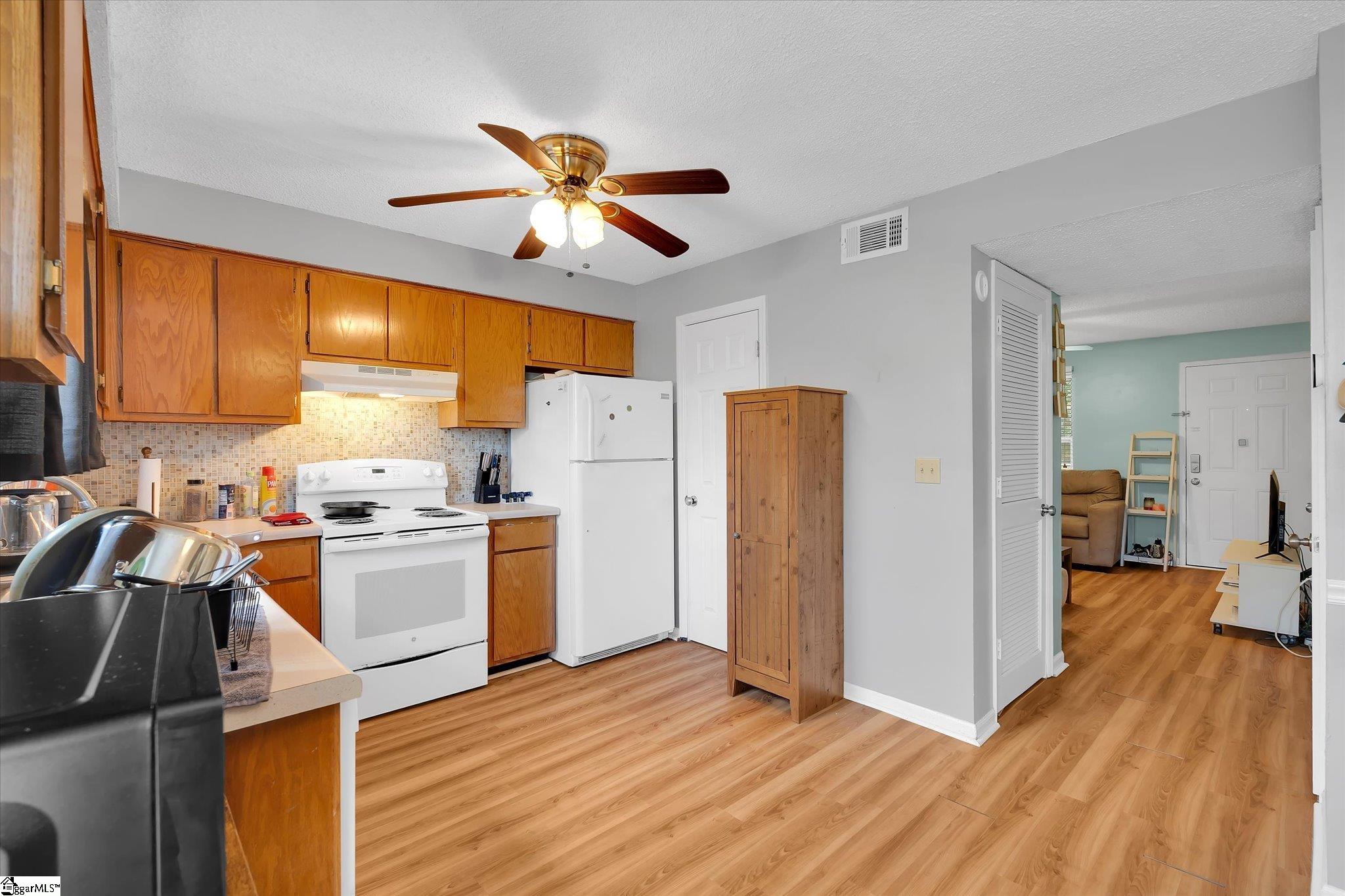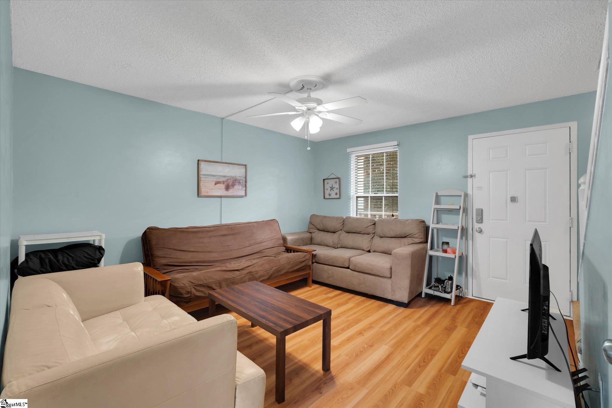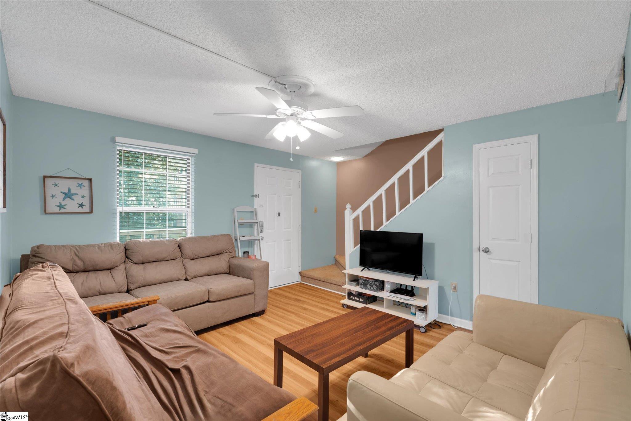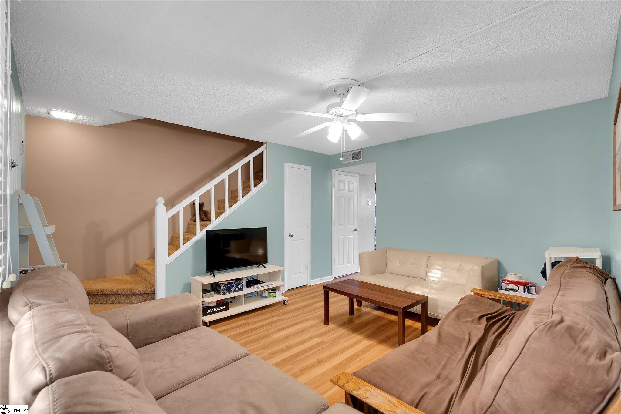 Welcome to easy living in the desirable Riverbank Commons community, just minutes from Clemson University! This charming 2-bedroom, 1.5-bath condo offers the perfect blend of comfort, convenience, and low-maintenance livingideal for students, game day getaways, investors, or anyone looking to enjoy everything the Clemson area has to offer. Located on the second floor, this unit features a bright, open living room with modern plank laminate flooring and plenty of natural light. A convenient half bath is located on the main level, along with a handy storage space tucked under the stairs. The open kitchen offers great cabinet space, a stylish tile backsplash, and room for casual dining. A pantry closet houses the stackable laundry for added convenience. Upstairs, youll find two spacious bedrooms, each with ceiling fans and generous closet space. The front bedroom opens to a shared balconyperfect for enjoying fresh air and relaxing. The full hall bath features tile flooring and a modern vanity. Additional features include a programmable thermostat, Lennox furnace, and appliances that may convey. Residents of Riverbank Commons enjoy access to a clubhouse, swimming pool, and shared laundry area. The CAT bus stops nearby, making commuting to the university simple and convenient. There is also plenty of parking available. Located just minutes from downtown Clemson, youll be close to shopping, dining, recreation, and all the excitement of game day. Plus, with nearby lakes and mountains, outdoor adventures are always within reach.
