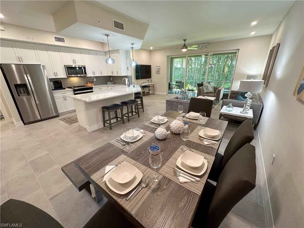 Available rest of 2026.Rate is for annual rental.This brand new first floor classic coach home features 3 bedrooms and 2 bathrooms and an all beach themed decor, and it is amazingly decorated with anything you would want to have in your own home. The owners have meticulously curated this fabulous condo and youx2019;ll have to see it to believe it and then you will absolutely fall in love! Containing 2,010 square feet, this wonderful residence features a one-car garage and a spacious master bedroom with an opulent ensuite, featuring an extended shower, dual sinks, and an expansive walk-in closet. Additionally, you'll discover a generously proportioned guest bedroom, a versatile office/den that can easily be converted into a third bedroom with two twin beds hidden by a trundle bed, and a well-appointed laundry room furnished with a washer, dryer, and a commodious utility sink. The unit also affords a delightful private garden vista. The interior is complimented by stainless steel appliances, bathing the space in an abundance of natural light, complemented by ceiling fans to ensure comfort throughout. The master bedroom boasts a luxurious king-sized bed, while the guest bedroom offers a full-sized bed. The office/den area is thoughtfully equipped with a play area and a twin bed configuration hidden in a day bed. The screened lanai, accessible through sliding doors from the living room allows one to simply relax or even dine outside. Impeccable furnishings finalize this capacious three-bedroom, two-bathroom retreat, accommodating up to six occupants. Key features of this meticulously designed residence include impact doors and impact glass, Decora trim wall switches, solid wood interior doors with Merano hardware, Decora silent rocker light switches, and a gourmet kitchen with Shaker-style wood cabinetry, quartz countertops, and under-mount sinks. Kohler plumbing fixtures, glass shower enclosures, and full-width mirrors above vanities grace the bathrooms. Spacious walk-in closets are equipped with designer closet systems, and the home is bathed in recessed LED flush-mounted lighting. Outside, lush tropical landscaping thrives with automatic irrigation, and a paver driveway leads to a charming paver entry walkway. Every detail has been perfectly arranged and well thought-out by the owners to ensure your vacation is nothing short of exceptional. Beach towels, bath towels, and all linens are provided for your convenience. In the garage, you'll discover a plentiful assortment of beach chairs, boogie boards, beach umbrellas, coolers and a beach cart to take it all down to the beach, catering to your entire group, allowing you to fully indulge in the splendor of our magnificent beaches. Antilles Naples is a serene oasis, enveloped by a lush tropical landscape. Its enviable location is just minutes away from Marco Island, the Isles of Capri, and a mere 15-minute drive from the gourmet dining and upscale shopping destinations of downtown Naples.