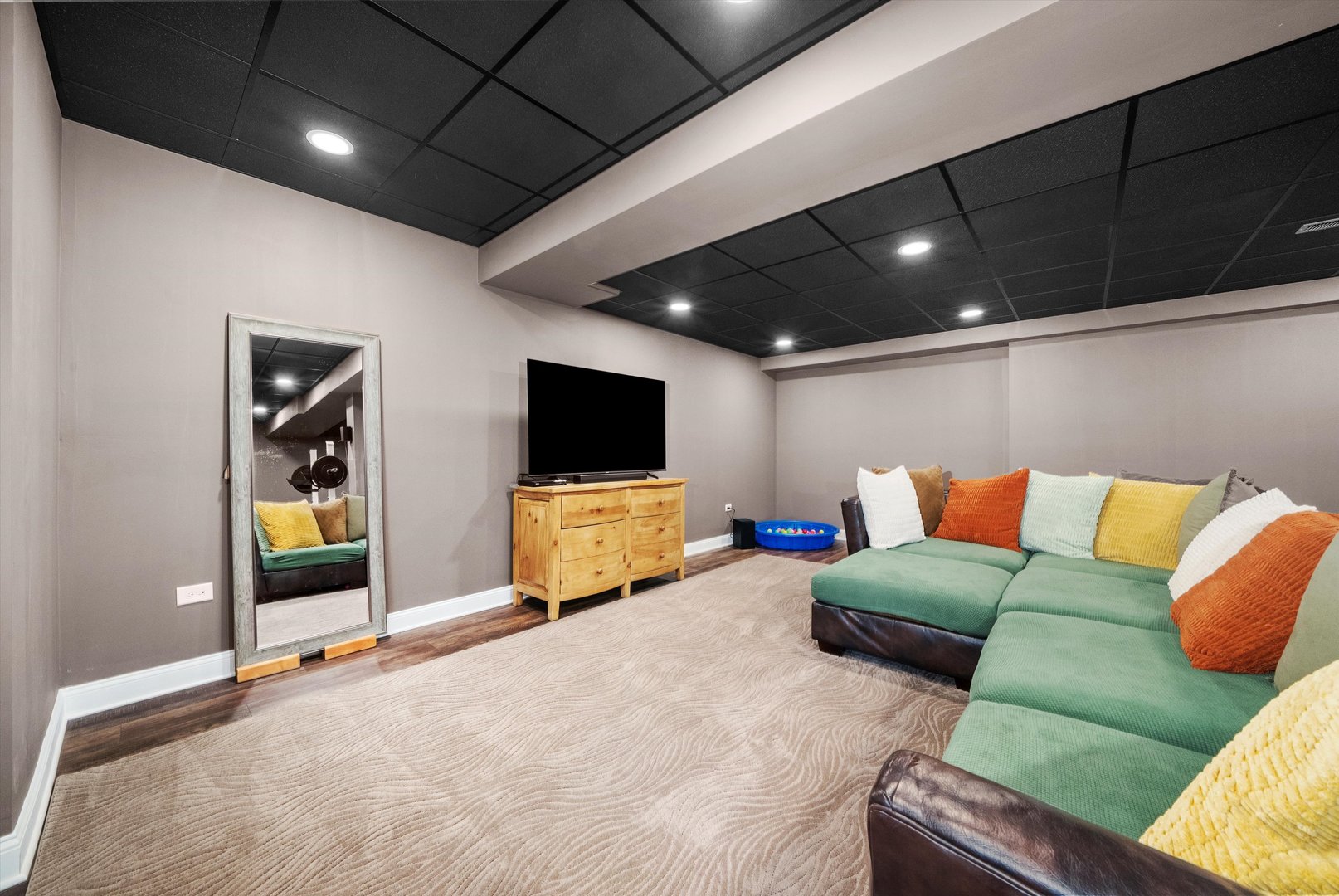 Much larger than it appears, this custom-built 2022 ranch sits on nearly 1.2 private acres in sought-after Pioneer Oaks, delivering a rare blend of modern luxury, thoughtful design, and complete functionality-truly better than new. Step inside to soaring tray ceilings, crown moulding, and a bright open concept. The chef's kitchen is the heart of the home, featuring a waterfall quartz island, pot filler, stainless steel hood, and walk-in pantry. It opens seamlessly to the great room with a stone-faced gas fireplace and the formal dining room, drenched in natural light. A first-floor office, two guest bedrooms with full hall bath, and convenient first-floor laundry add everyday ease. The primary suite is privately tucked away, offering tray ceilings, a spa-inspired bath with an oversized glass-enclosed shower, and a massive walk-in closet with direct access to the laundry room. A true highlight is the full in-law apartment, complete with a separate entrance, full kitchen, bedroom, and bathroom-perfect for guests, extended family, or multigenerational living. The finished lower level is an entertainer's dream: a spacious living room, a third kitchen, full bath, epoxy flooring, and a massive home gym/flex space ideal for theatre, playroom, or additional guest quarters. Walk out to a private paver patio and serene green space, or relax on the Trex deck overlooking a premium nature-backed lot with no rear neighbors. Additional features include a 3-car garage with epoxy floors, Generac generator, and leaf filter system for peace of mind. Located in the sought-after Pioneer Oaks community, minutes to golf courses, parks, dining, the Chain O'Lakes, and Lake Geneva-with highly rated Johnsburg Schools. Remarkable in both design and setting, this custom home stands out as a rare opportunity-offering the comfort of new construction with the character of a truly one-of-a-kind property.