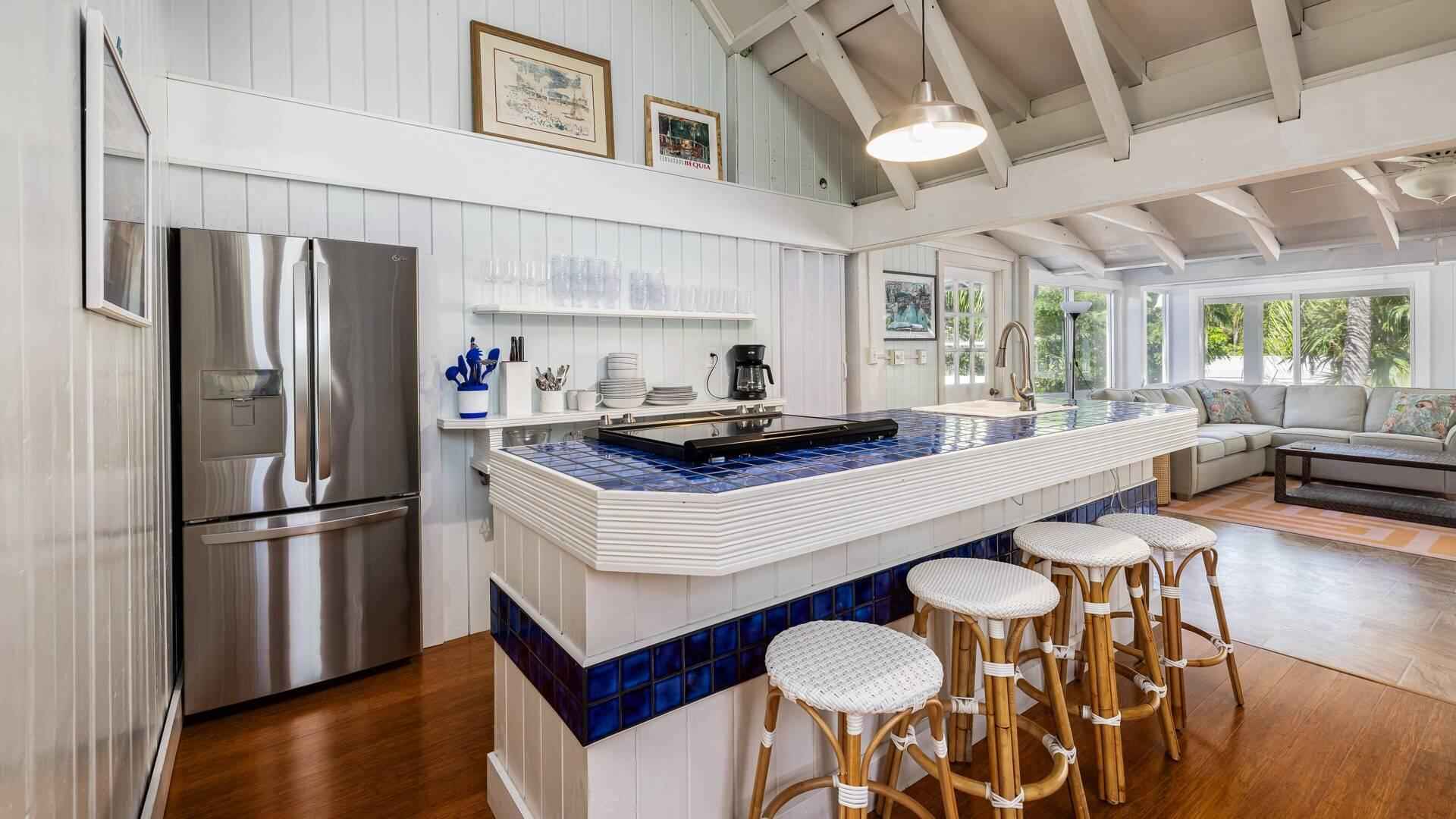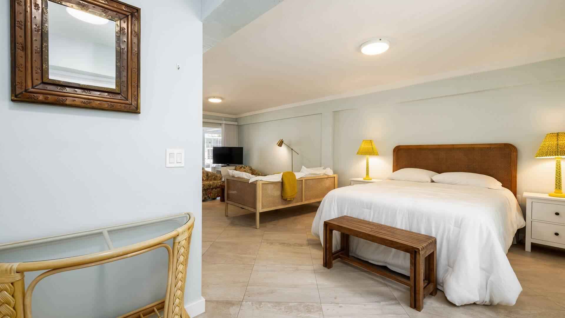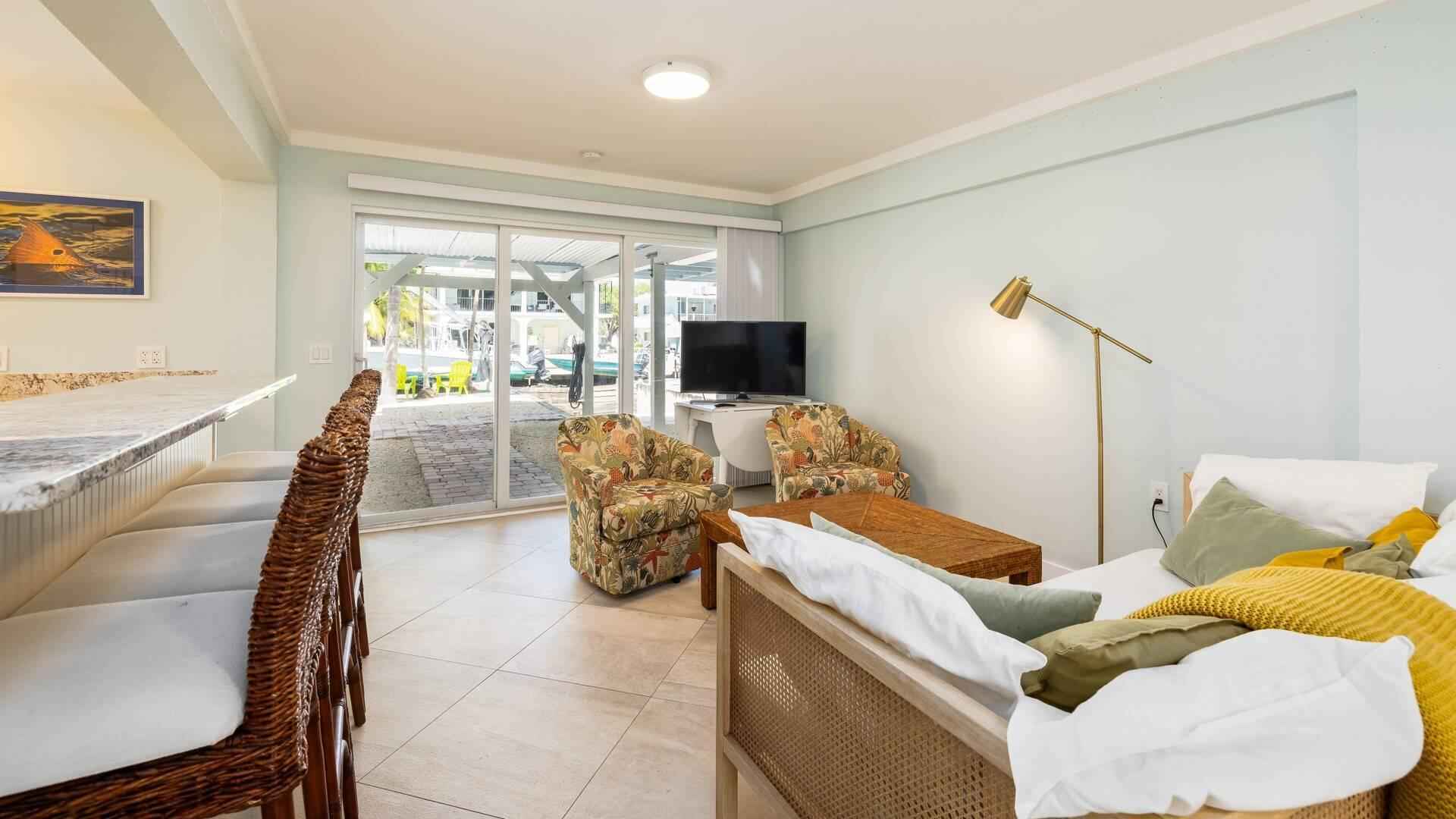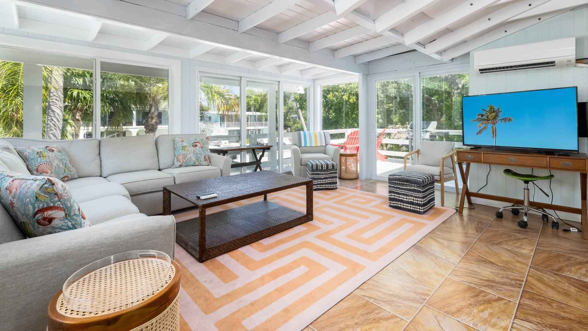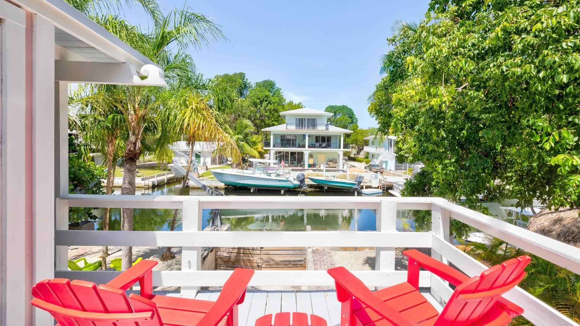 Located in the desirable Indian Waterways neighborhood on Plantation Key. Canal-front home with private dockage and a layout well suited for comfortable long-term living in the Florida Keys. The main living area is on the second level and features an open, light-filled floor plan with large windows and vibrant coastal decor. The primary bedroom includes a queen bed, an ensuite bath, and access to a private porch with an outdoor soaking tub. A second queen bedroom and full guest bathroom are also on this level, along with a loft space that adds flexible sleeping or use options. On the ground level, a separate apartment offers excellent additional space for visiting guests or extended stays. The apartment includes a queen bed, full kitchen, and private bathroom. The property is available furnished or unfurnished. Available for occupancy at the end of March.