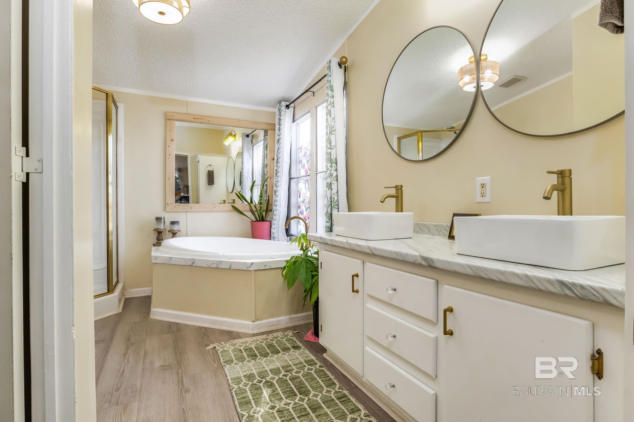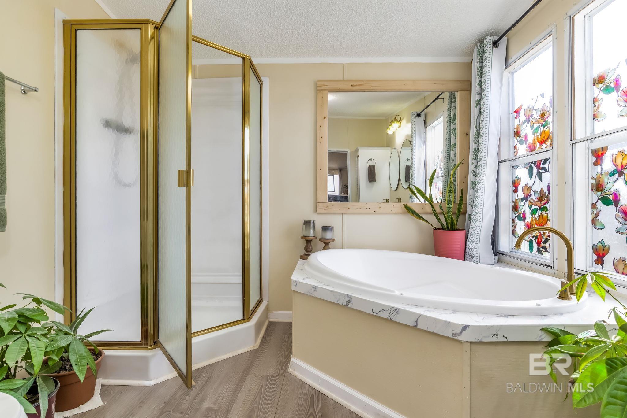 THE ULTIMATE COASTAL TURN-KEY RETREAT! UPGRADED & OWNER-FINANCING AVAILABLE! This impeccably maintained double-wide home on deeded land has been completely transformed into a private coastal oasis. Situated in a quiet Elberta neighborhood, the property features a seasonal creek and a peaceful wooded backdrop for ultimate privacy. Inside, the home boasts a fresh, modern interior with new laminate vinyl plank flooring, new carpet, updated lower cabinetry, and completely remodeled bathrooms. A whole-house water filtration system and freshly serviced HVAC ensure comfort and peace of mind. This property is offered fully furnished (negotiable), providing a true "bring-your-toothbrush" move-in experience. Outdoor living is equally impressive with a massive new covered side deck, a fully fenced and surveyed backyard, an established garden area with fruit trees, and an outdoor fire pit/fireplace. Recent premium improvements include new French doors, new rain gutters, fresh interior/exterior paint, and a visible installation sticker. Located in the Plantation Park community, you are minutes from world-class boating, fishing, and the Gulf beaches of Orange Beach and Gulf Shores. Perfect as a primary residence, second home, or turn-key investment. Buyer to verify all information during due diligence.