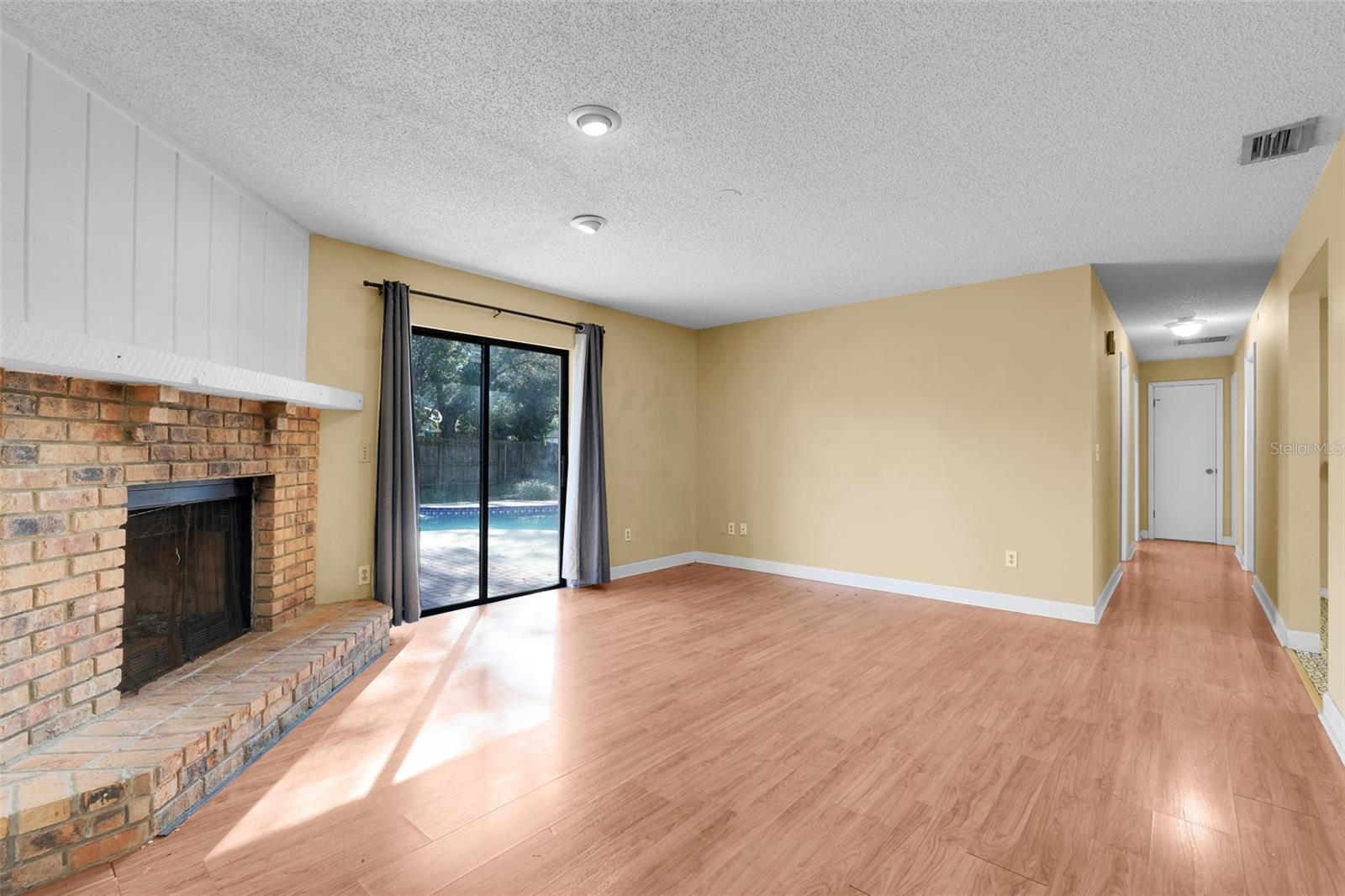 Welcome to this charming 3-bedroom, 2-bath pool home in the desirable Apopka area! This well-maintained property offers over 1,600 sq. ft. of living space, featuring a spacious living room with a wood-burning brick fireplace and large sliding glass doors that open to a screened patio and private backyard with a pool. The roof is 5 years old, and the HVAC system is 2 years old. Tile and laminate flooring throughout make for easy upkeep. The kitchen offers ample potential for updates and flows seamlessly into the dining area. The fenced yard, mature oak trees, and quiet neighborhood make this a perfect place to call home. Conveniently located near shopping, dining, parks, and major highways for an easy commute anywhere in Central Florida. With a little TLC, this home can truly shineschedule your showing today!