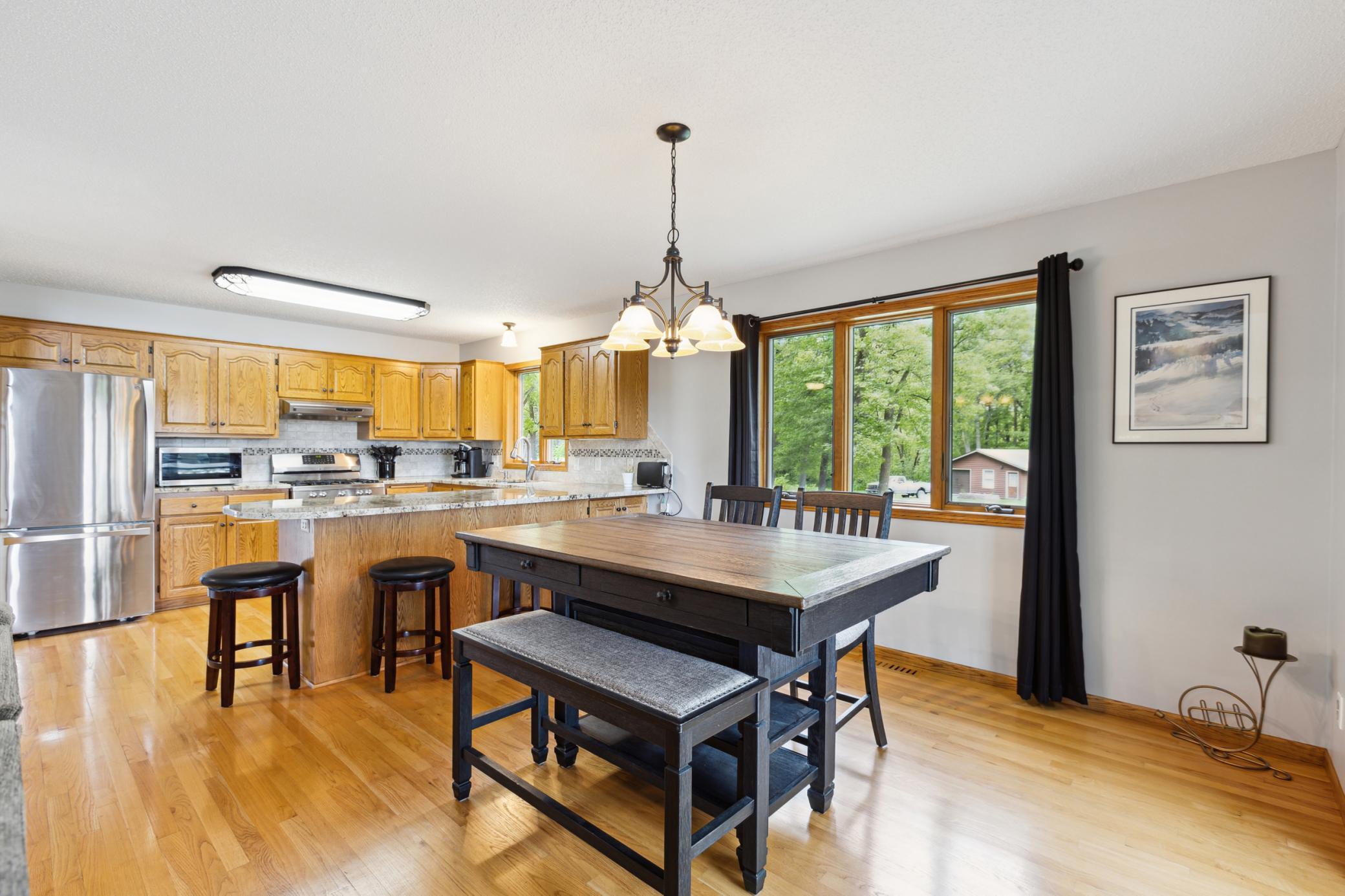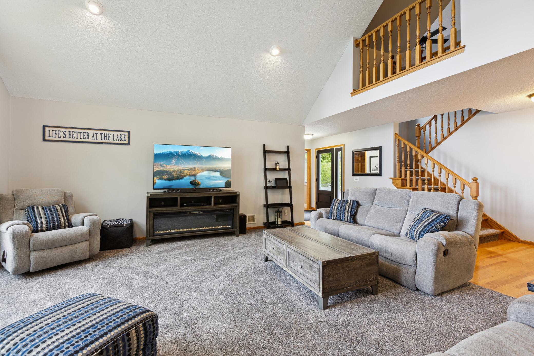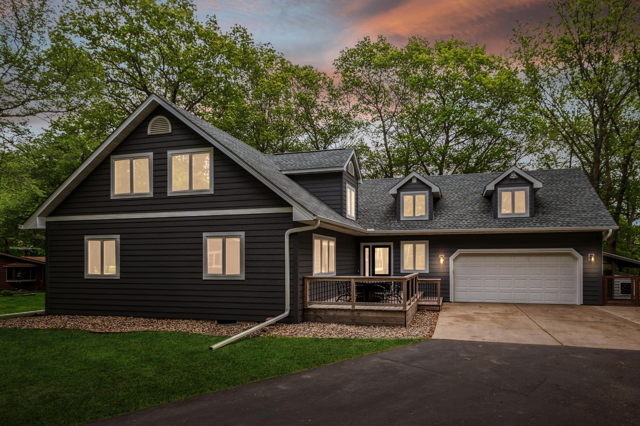 Welcome to your lakeside retreat on beautiful Long Lake! This stunning 5-bedroom, 3-bath home sits on 1.32 acres with picturesque lake views and the peace of knowing there will be no future development across the water. The open floor plan and vaulted ceilings create an ideal space for entertaining, while heated floors in the basement and main floor bathrooms provide cozy comfort year-round.The home offers desirable amenities including main floor laundry, a soundproof movie room, and a spacious bonus room above the garage featuring a gas fireplaceperfect for relaxing or hosting guests. Enjoy the outdoors from the charming front porch, the back deck, or the lakeside fire pit area.New concrete stairs leading down to the lake have recently been installed, with the railing to be completed as soon as weather permits. The yard by the stairs has been protected with seed germination blankets to help establish new grass this spring.Recent updates include new LP SmartSide siding, a new roof, new living room carpet, fresh paint throughout the main and upper levels, an updated upper-level bathroom, a new dishwasher, blackout blinds in the bedrooms, and new gutter guards with a lifetime warranty. The home also features granite countertops and a tankless water heater for added style and efficiency.The property includes a 2-car attached garage plus a heated and insulated oversized 3-car detached garage, along with a fenced area. Conveniently located near Hutchinson, Litchfield, and St. Cloud, with many nearby lakes to explorethis property offers the best of Minnesota lake living.