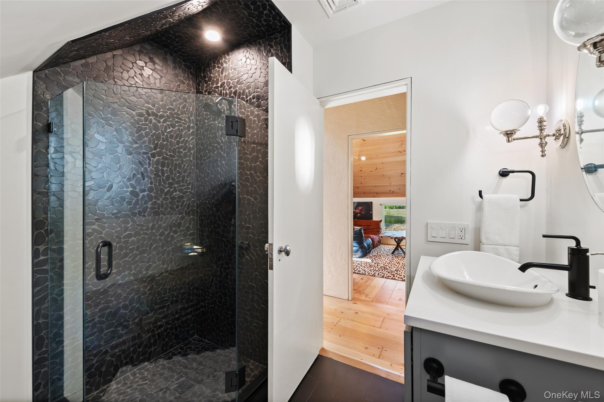 Tamoset. A truly magical setting overlooking a scenic pond. Long drive to peaceful privacy. Six spectacular acres with rolling lawns, old stone walls, ornamental trees and perennial gardens. Sophisticated Country House originally built in the 1930s. Spectacular renovation with airy loft-like spaces. Sun-filled rooms with vaulted ceilings, random-width pine floors and custom lighting. Walls of windows capture natural light and scenic views. Dramatic Great Room with floor-to-ceiling stone fireplace. Dining Area with doors to two decks with a fabulous water view. Gourmet Kitchen with custom backlit cabinetry, granite and stainless countertops and professional appliances. First floor Primary Suite with door to private terraced garden. Two additional Bedrooms, one with loft sleeping area. Guest Room with Bath and doors to Screened Porch and two sun decks. Lower Level with pine-paneled Family Room, Sauna, and Wine Cellar. Covered porch with automatic screens, cold plunge tub, and hot tub. Covered Lap Pool with swim jet and automatic phantom screens. Detached Outbuilding with Gaming/Media Room and Gym. Fabulous location just moments from the apple orchards. Truly remarkable!