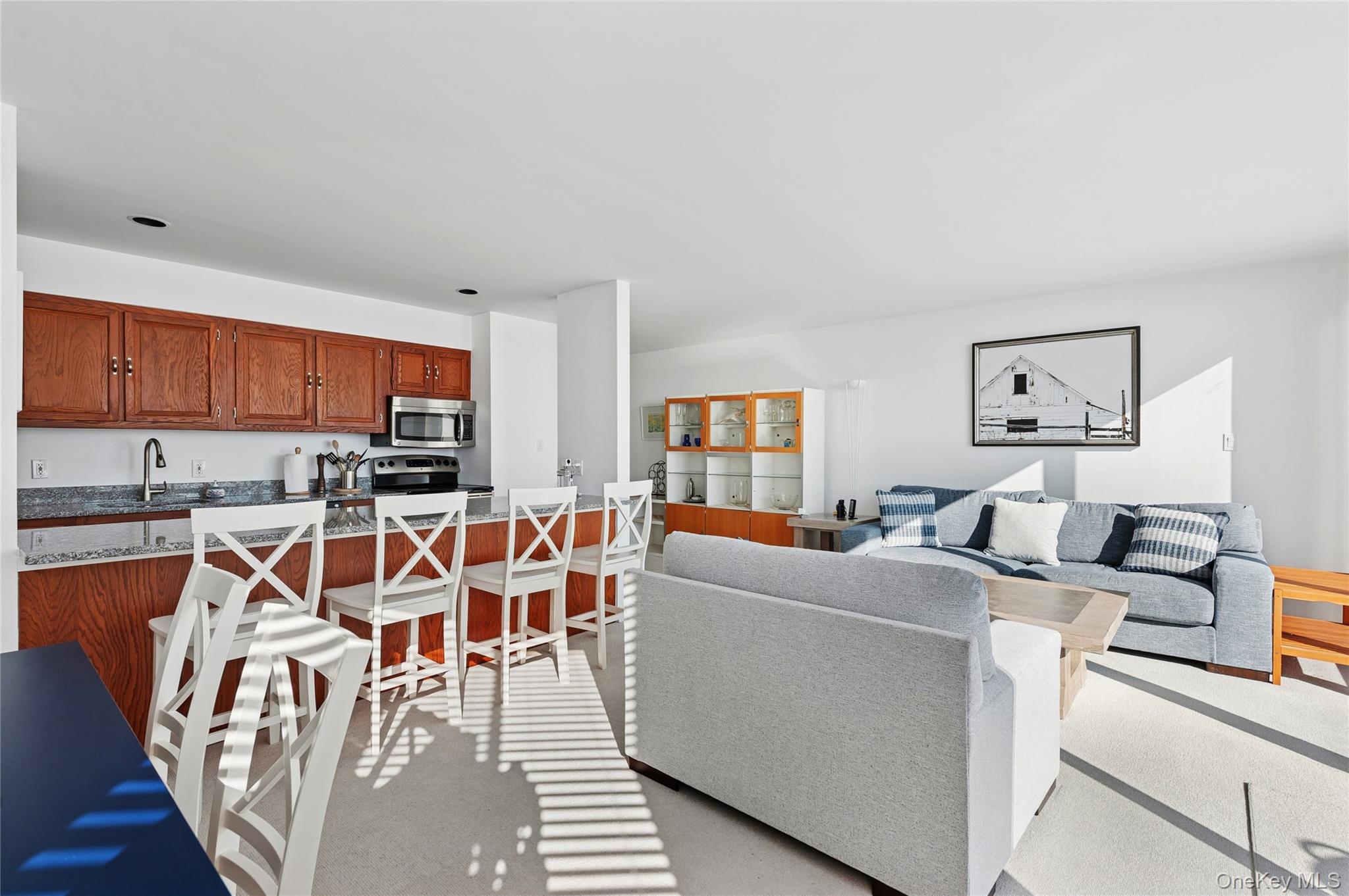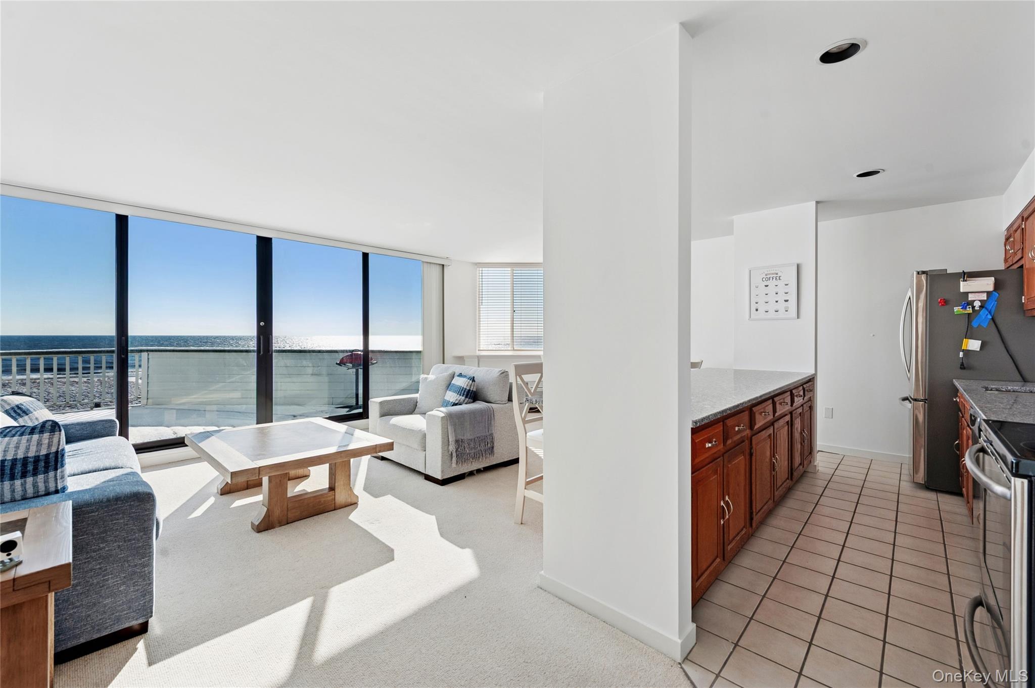 Here comes Summer 2026! Spend all or a portion of the summer in this third floor oceanfront unit. Stepping through the front door you are immediately greeted by expansive ocean views. Floor to ceilings sliding doors allow the living/ dining area to be drenched with sunlight with a spacious deck perfect for al fresco dining or enjoying the view from your own private space. A kitchen with oversized counter for casual meals and gatherings is perfect for low key summer living. 2 bedrooms are thoughtfully tucked away from the common living areas for the ultimate in privacy. The primary bedroom offers an ensuite bathroom and the guest bedroom has a convenient trundle bed. Both bathrooms are being updated for added enjoyment of the unit. Yardarm has countless amenities including tennis, heated bay and oceanfront pools and sought after proximity to Main Street in Westhampton Beach. This immaculate property is the easiest way to experience summer in the Hamptons! Multiple rental periods available; inquire for additional details.