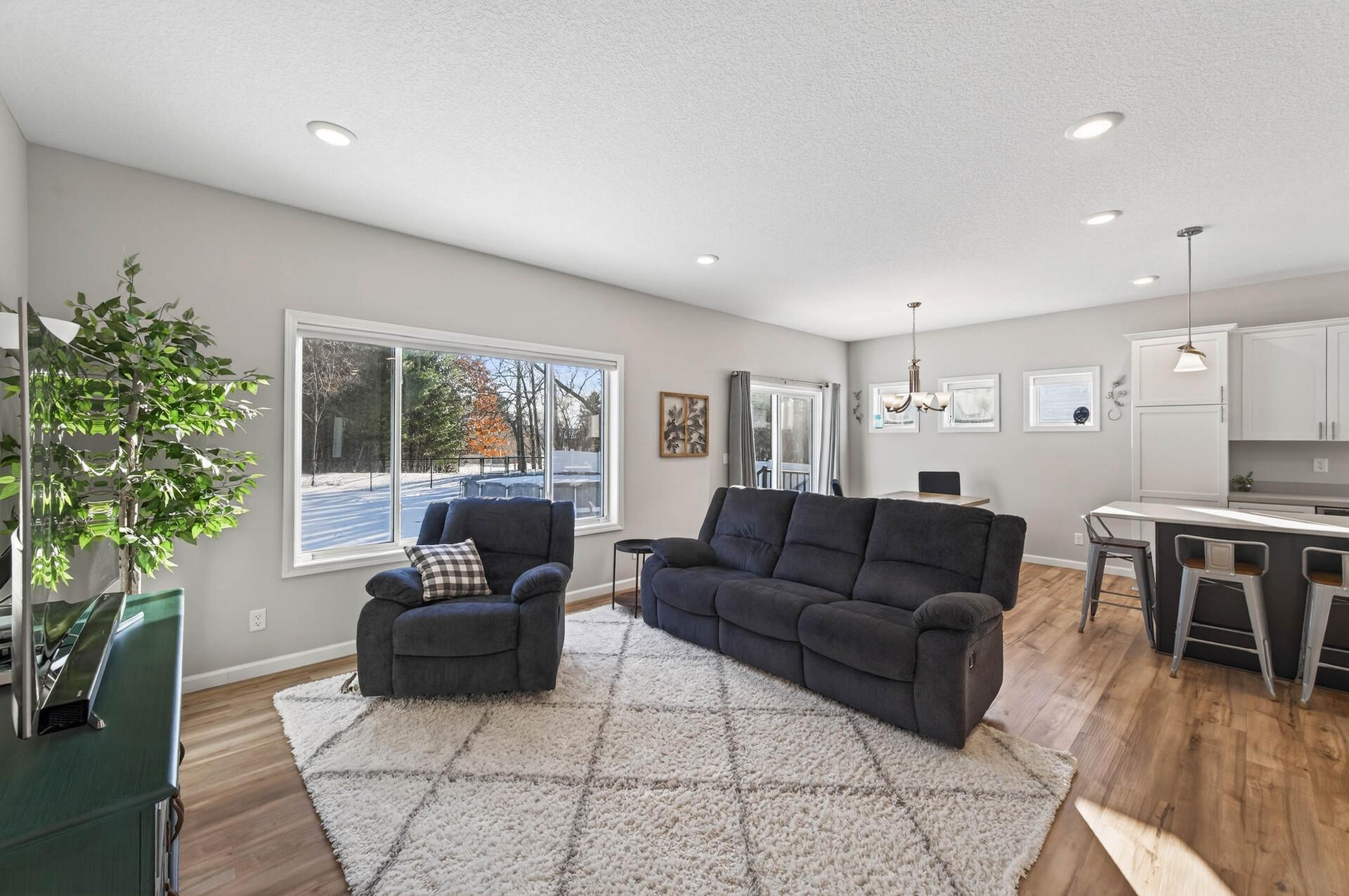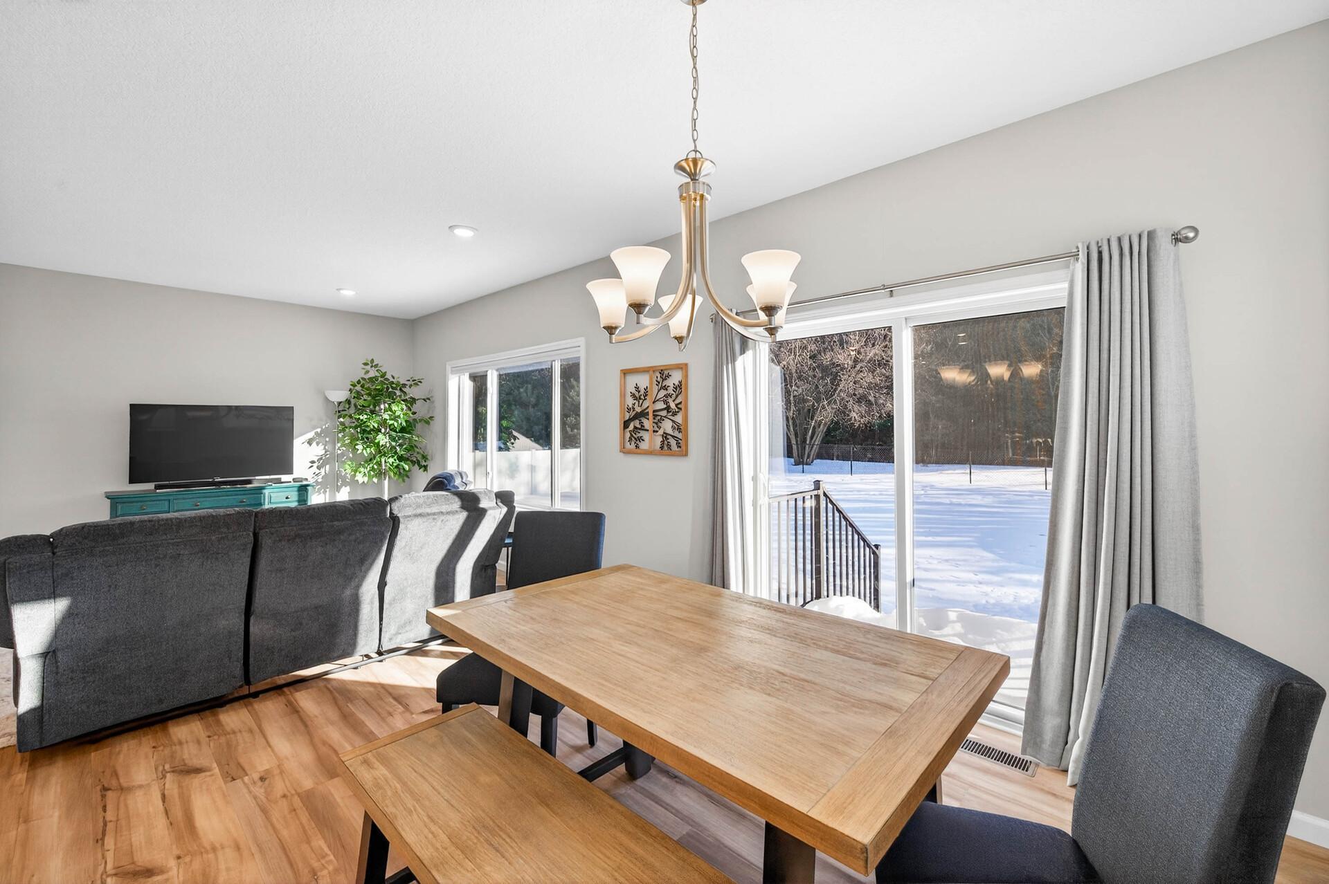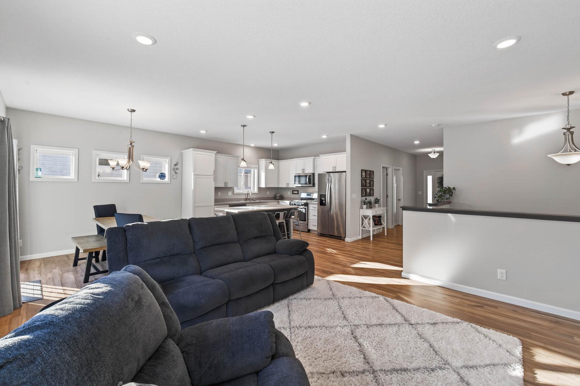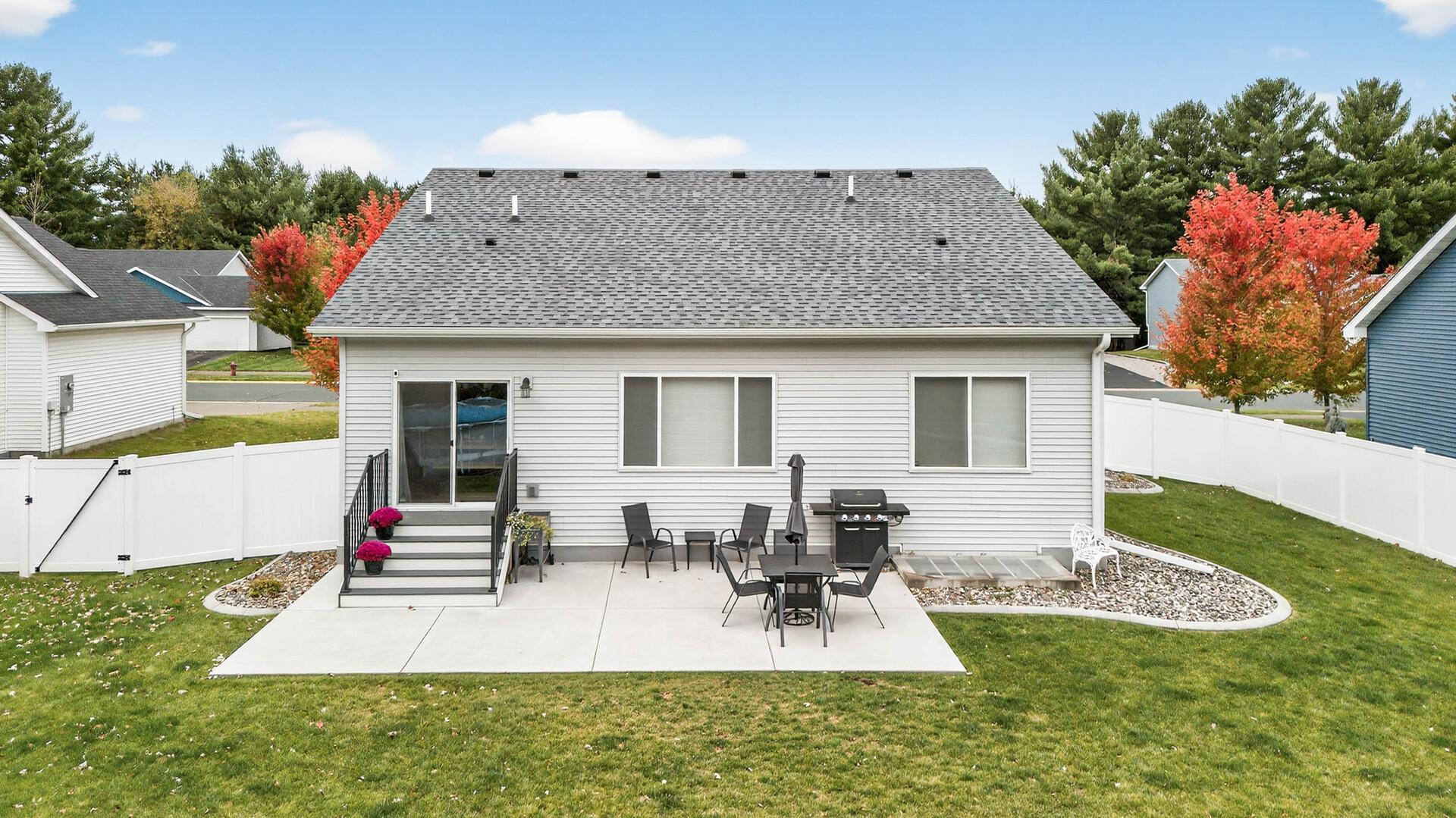 Welcome home to this like-new 2021-built gem tucked into a quiet Zimmerman neighborhood. Designed with an open and inviting layout, the main level features two bedrooms, including a spacious primary suite with vaulted ceilings, a private bath, and walk-in closet. The living room flows seamlessly into the kitchen and dining area, with the dining space offering a walkout to the backyard, perfect for indoor-outdoor living. The kitchen boasts crisp white cabinetry, stainless steel appliances, a center island with hard-surface countertops, and a bright kitchen window. The unfinished lower level provides endless potential for future bedrooms and additional living space. Outside, enjoy a fully fenced backyard with privacy fencing along the sides and mature trees behind, all set on a generous 0.28-acre lot offering both space and serenity.