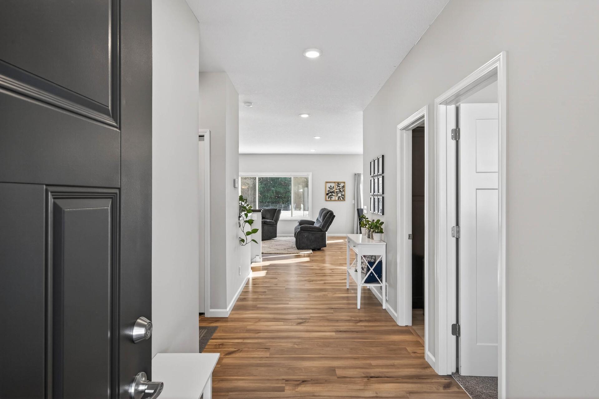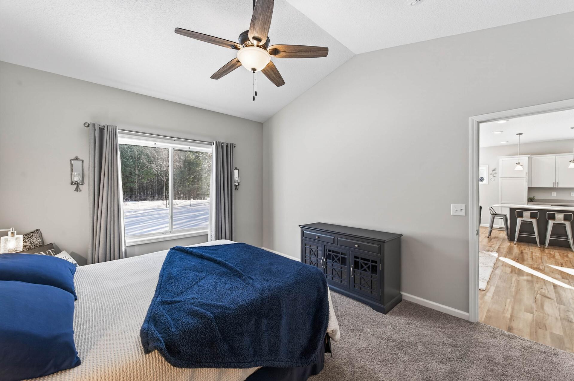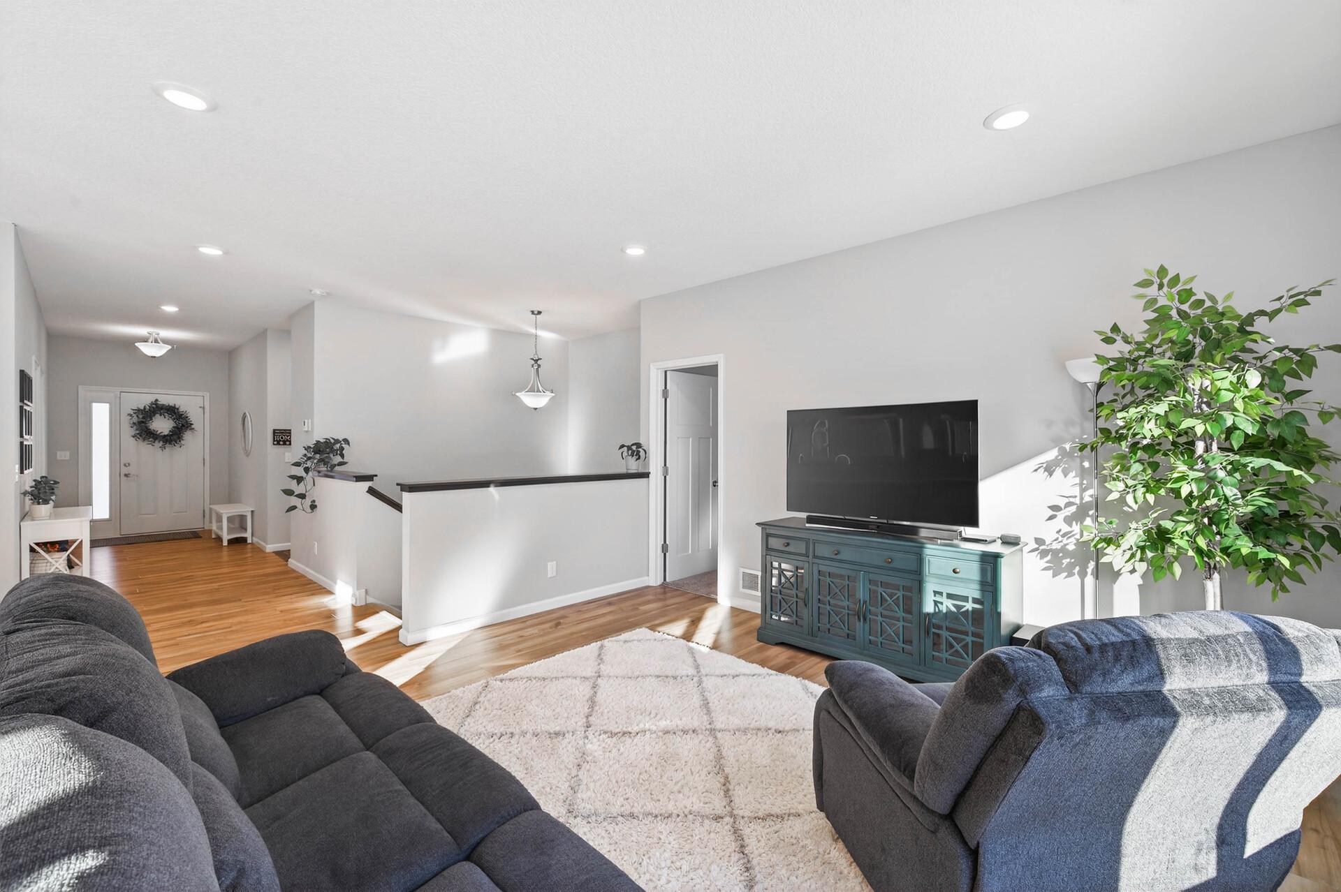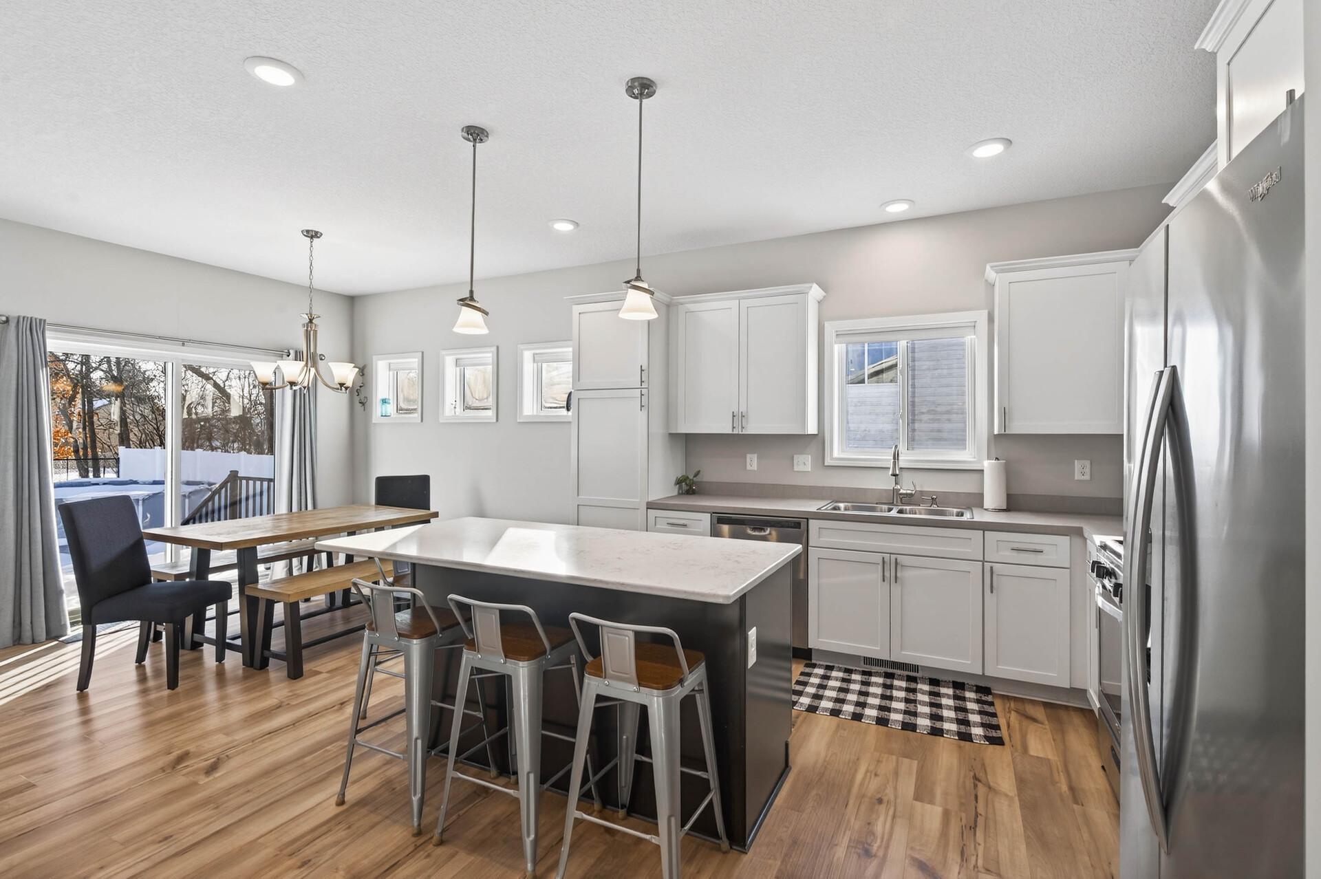 Welcome home to this like-new 2021-built gem tucked into a quiet Zimmerman neighborhood. Designed with an open and inviting layout, the main level features two bedrooms, including a spacious primary suite with vaulted ceilings, a private bath, and walk-in closet. The living room flows seamlessly into the kitchen and dining area, with the dining space offering a walkout to the backyard, perfect for indoor-outdoor living. The kitchen boasts crisp white cabinetry, stainless steel appliances, a center island with hard-surface countertops, and a bright kitchen window. The unfinished lower level provides endless potential for future bedrooms and additional living space. Outside, enjoy a fully fenced backyard with privacy fencing along the sides and mature trees behind, all set on a generous 0.28-acre lot offering both space and serenity.