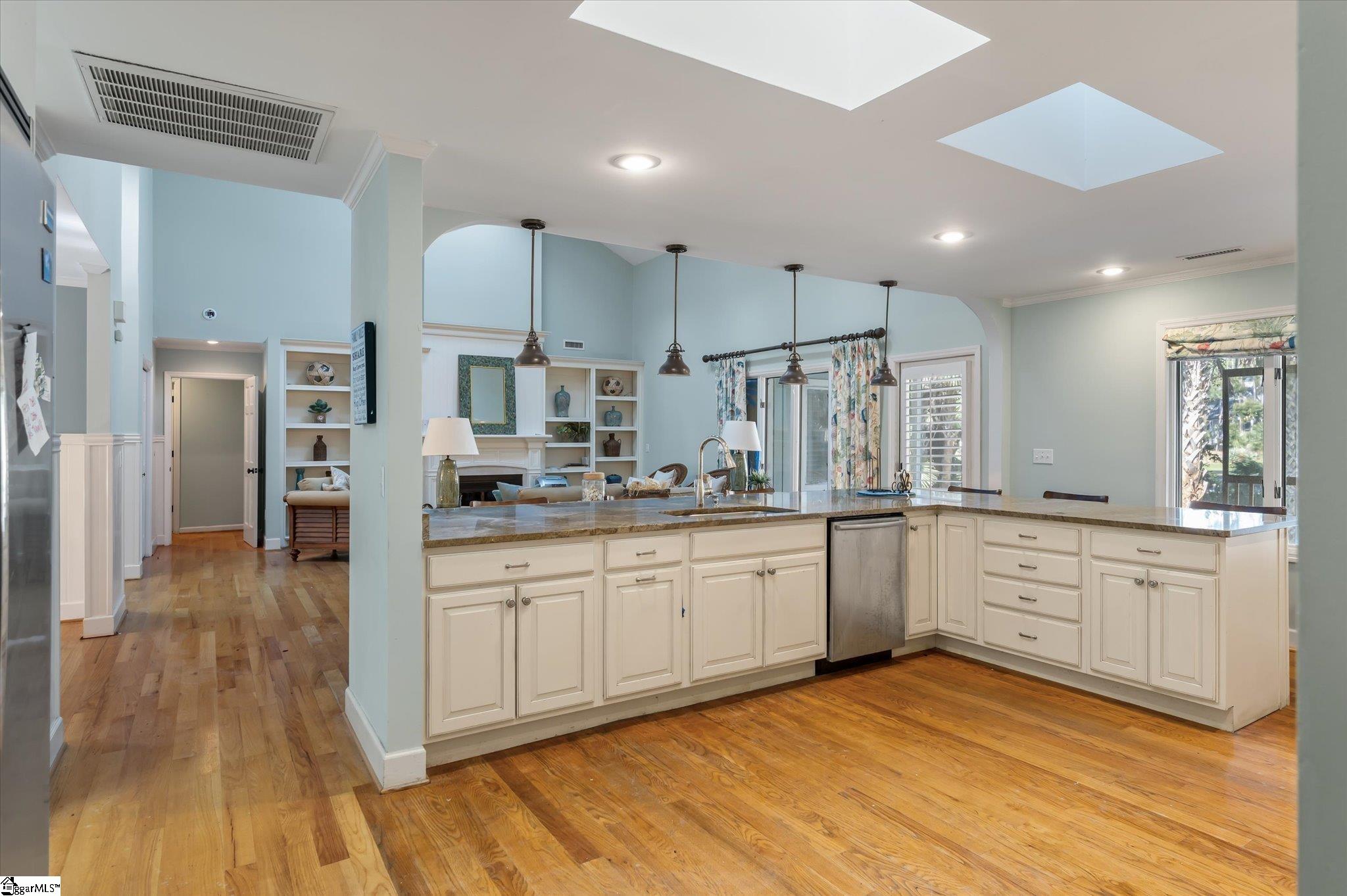Ideally located for all facets of Kiawah life, this golf-view home offers convenient access to the beach via a short bike ride and immediate proximity to the Turtle Point Golf Course. Situated beyond Kiawahs second security gate on a quiet street in the Vanderhorst Plantation neighborhood, the home overlooks the 8th fairway of Turtle Point. The spacious open floor plan seamlessly connects the living and dining areas and features hardwood floors throughout, complemented by tall vaulted ceilings and skylights that flood the home with natural light. The living room is anchored by a gas log fireplace, creating a warm and inviting focal point. At the heart of the home is an expansive L-shaped granite kitchen counter outlining the fully equipped commercial-style kitchen. Casement windows line the rear wall, allowing soft breezes and abundant natural light to frame the picturesque golf course views. Just off the main living area, a large screened porch spanning over 40 feet runs the full width of the home, ideal for outdoor dining, entertaining, or enjoying a quiet afternoon overlooking the fairway. The kitchen is filled with natural light from dual skylights and is equipped with a JennAir 8-burner cooktop with grill, a commercial-size side-by-side stainless steel refrigerator and freezer, generous storage, and ample prep space. An adjacent formal dining room offers a more private setting for entertaining or can function as a game or gathering room. The primary suite is generously sized and features hardwood floors, golf course views, and private access to the rear screened porch. The en suite bath includes dual vanities, a separate soaking tub and shower, a walk-in closet, and built-in shelving, creating a private owners retreat. Three additional bedrooms and bathrooms, including a private room over the garage, provide comfort and privacy for guests. A versatile family room off the kitchen, currently used as a theater room, offers views to both the front and rear of the home. With two floor-to-ceiling built-in bookcases, this space may also serve as a fifth bedroom or home office. The two-car garage offers direct access to the kitchen for ease of daily living and provides flexible space suitable for recreation, fitness, or hobby use. 260 Doral Open is a spacious home with multiple living areas, an open floor plan, and flexible spaces well suited for a variety of lifestyles on Kiawah Island. Schedule your private showing today to experience the setting, space, and views firsthand. Agent Owned. Home is being sold AS-IS. Up to date loan approval and/or proof of funds is required to show the property. Buyer to inspect prior to contract execution.