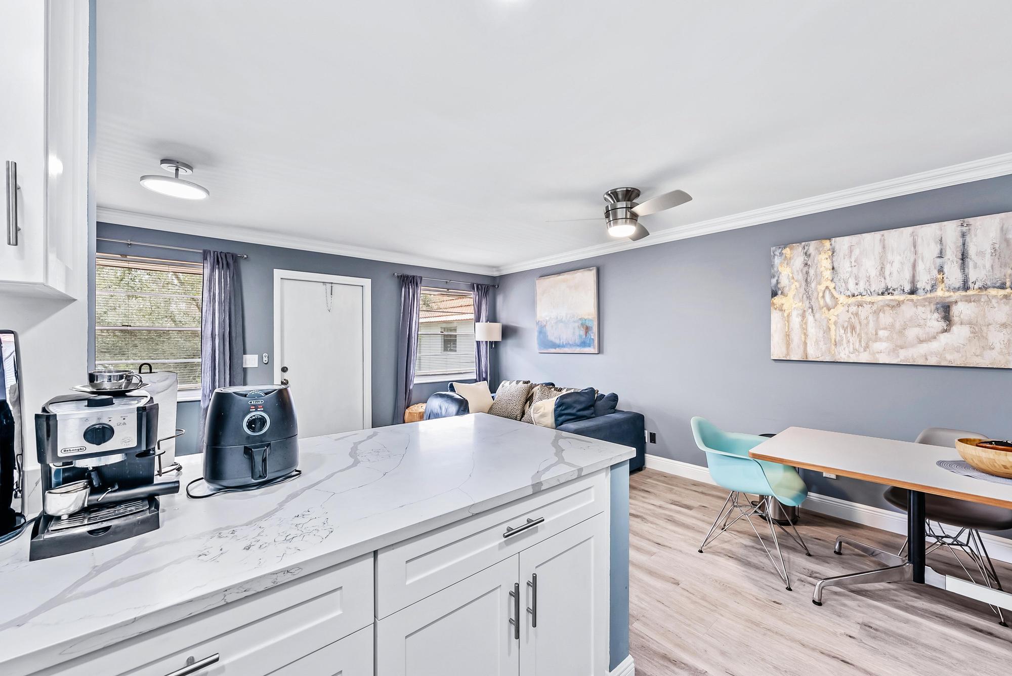 Beautifully updated 1/1 unit on the 2nd floor. Unfurnished (except for a bed). The list of renovations includes gorgeous new laminate flooring, white shaker cabinets, quartz countertops, new s/s appliances, kitchen wall opened up, bathroom is new from top to bottom, barn door from bedroom to bathroom, new impact windows and A/C. Vista Pines is a wonderful 55+ community with lots of activities like, card playing, shuffleboard, bocce ball, swimming, aerobics, dances, cookouts, karaoke, water exercise, a fitness center, library, table tennis, two full size pool tables and a wood working shop. Conveniently located to the beach, shopping, restaurants, bowling, golfing and so much more!