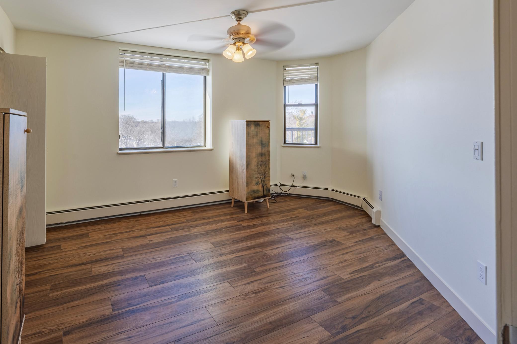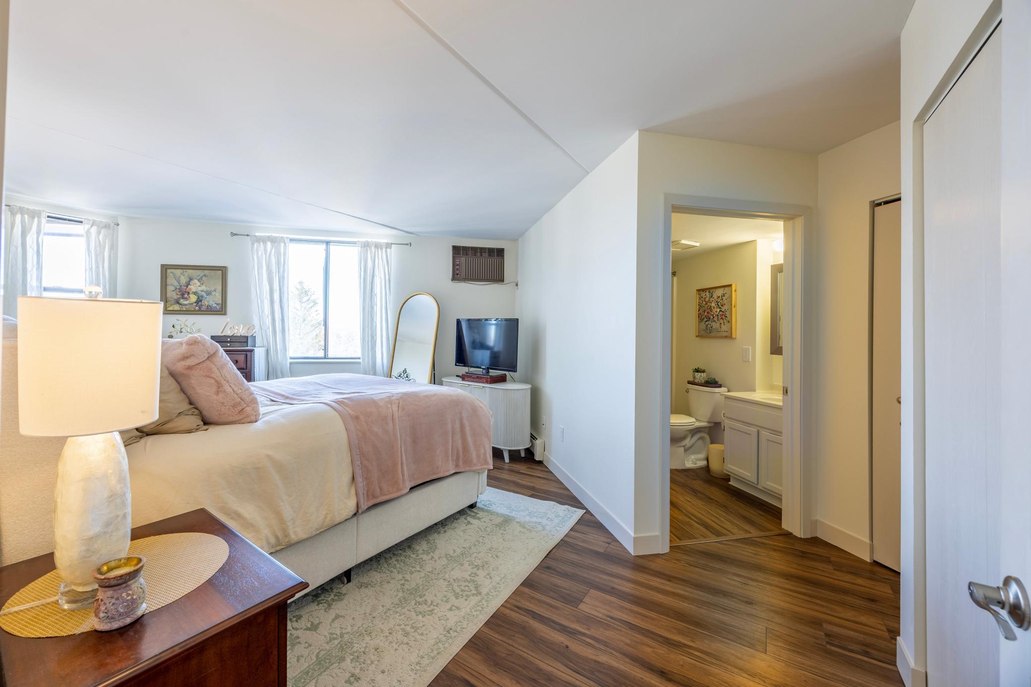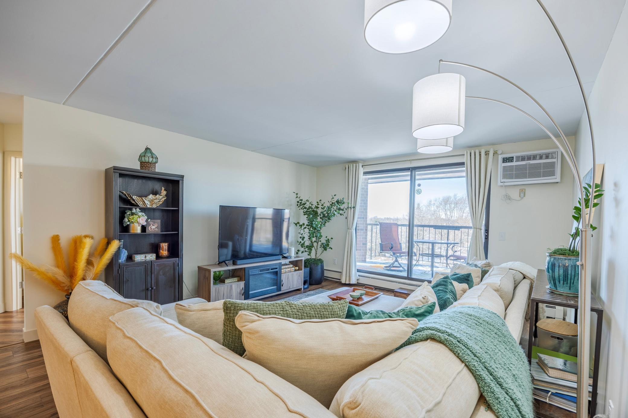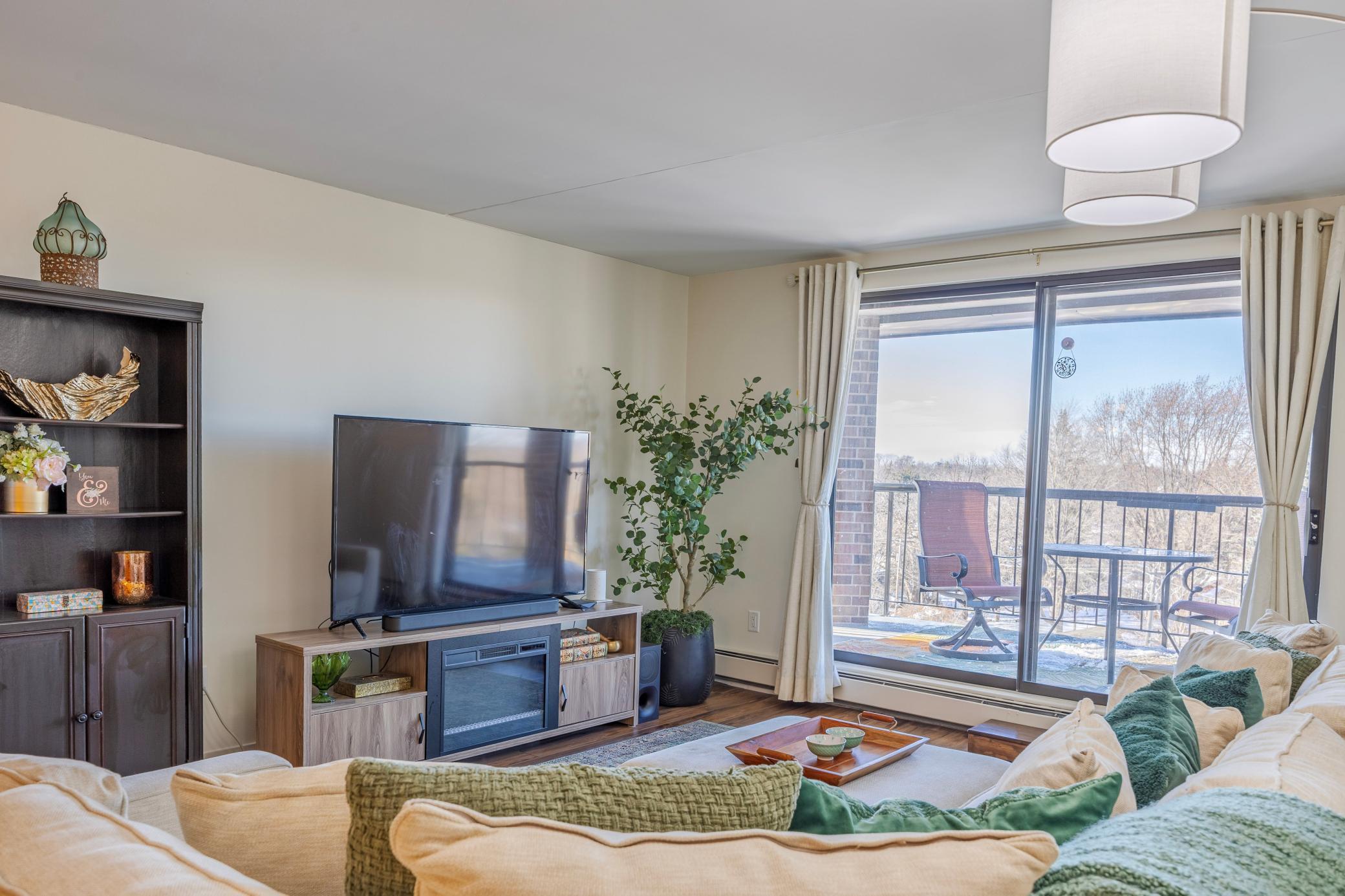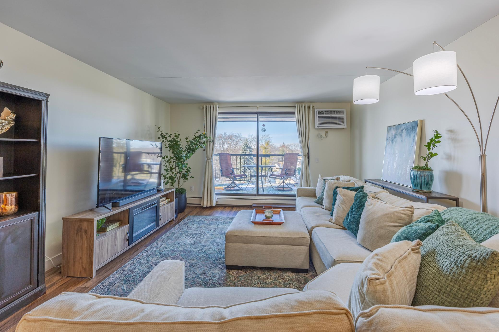 Absolutely stunning top floor 2-bedroom 2 bath, 55+ community condo in Vibrant St Anthony Village. One of the nicest larger units with the largest corner lot balcony offering beautiful views of the neighborhood around. Watch the biggest MPLS Downtown fire work and Northern light right from your large balcony. As you step in, you will love the open bright living room with neutral color tones, and luxury vinly flooring throughout. The living room sliding door leads to the balcony. The two bedrooms are nicely separated a part for privacy. The primary bedroom has a private 3/4 bath as well as a large walk-in closet. Bedroom #2 also has a large walk-in closet. You will notice the bright natural light throughout the unit. Building amenities include underground heated parking, free car wash, gathering areas on each floor by elevators, fitness room on 4th floor, pool table on 3rd floor, garage is on G1 stall# 57 loaded with full wall storage space, community room and library on 2nd floor, arts and craft rooms, and one of the best-equipped woodworking shops in town on G2 which is also lobby and street level. Free laundry across the hall two doors down, right across unit 516. Frequent activities are available for residents if they choose. Walk to the public library right across the street and enjoy all the stores and restaurants at the strip mall. Your safety is secured in this building with rare 24/7 front desk with live security staff.