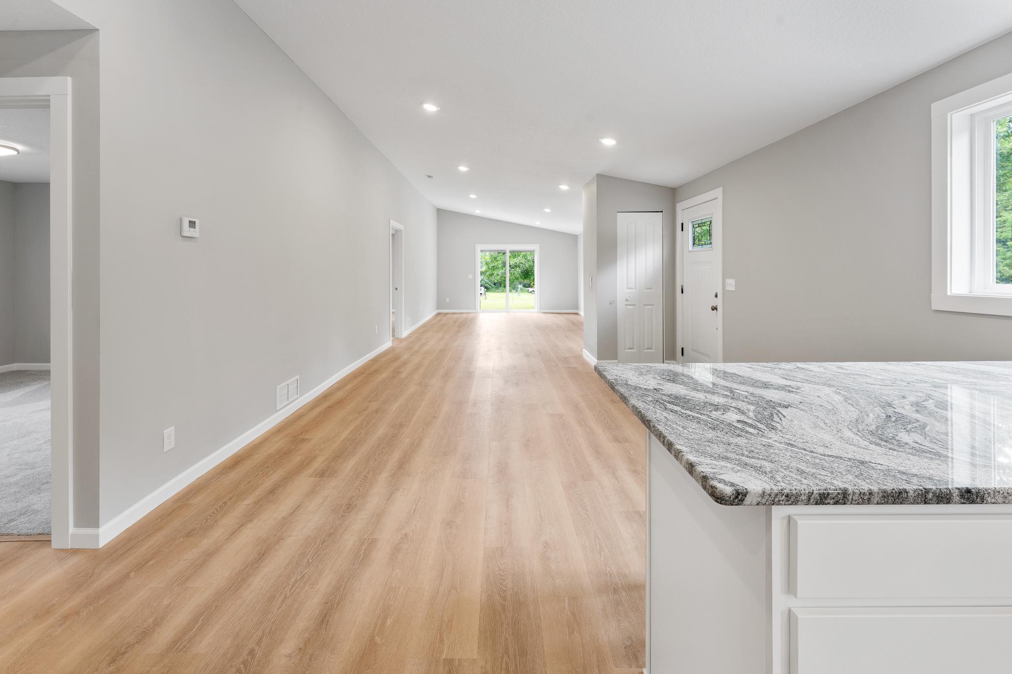 This beautifully renovated rambler, nestled on a spacious 2-acre corner lot, offers the charm of a brand-new home thanks to a comprehensive, down-to-the-studs remodel. Every detail has been thoughtfully updated, including a new roof, siding, windows, drywall, spray foam insulation, electrical, plumbing, and mechanical systems. Step inside to discover a custom-designed kitchen featuring elegant cabinetry, gleaming granite countertops, and stainless steel appliances. The open-concept layout creates a seamless flow between living spaces, perfect for entertaining or relaxing, and a large, unfinished basement provides endless potential. Enjoy warm summer evenings on the inviting outdoor patio, ideal for grilling and unwinding. The expansive lot offers ample room to build your dream outbuilding or simply enjoy the natural surroundings. Located in tranquil Pomroy Township, this lovely home is surrounded by state land and lush woodlands teeming with wildlife. East Central Energy is currently installing fiber internet lines, ensuring access to high-speed connectivity. Conveniently situated just a short drive from Mora, Hinckley, and Pine City, you'll have easy access to shopping, dining, and everyday essentials. All the hard work has been donethis stunning home is ready to be enjoyed. A must-see opportunity you wont want to miss! Seller would consider a contract for deed with enough down.Seller would also build a 30X40 shed for additional $30,000