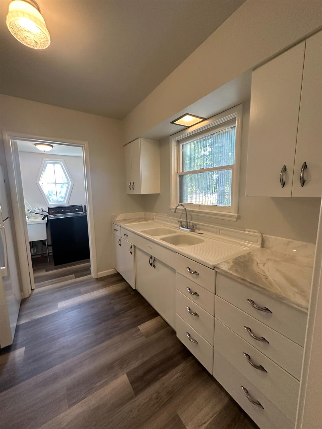 Adorable 1 bedroom unit located off of Fruit and Clinton, close to Fresno High! This home has been recently upgraded with newer paint and a remodeled bathroom, while the original charm of the home remains intact with built-in cabinetry and hardwood floors. Newer stove + hood in the kitchen, and the laundry room (with a washer/dryer*) is located directly off of the kitchen. Oversized closet with built-in shelving in the main living room. Large closet in the bedroom and an upgraded ceiling fan. The bathroom is attached to the bedroom, with updated cabinets and tiled shower. Resident will have one parking space in the driveway. Renter's insurance is required. Property will be ready show in mid-December.