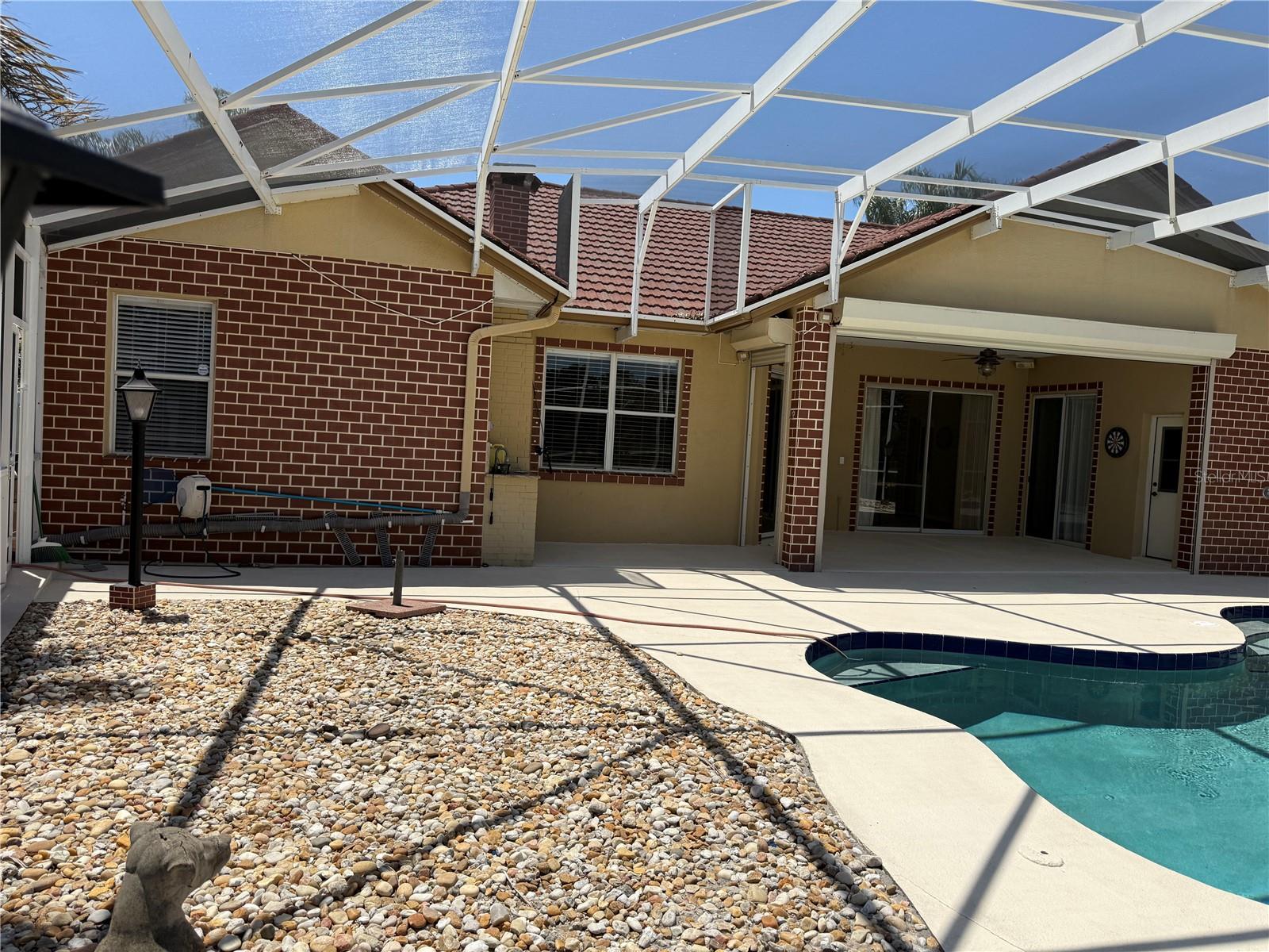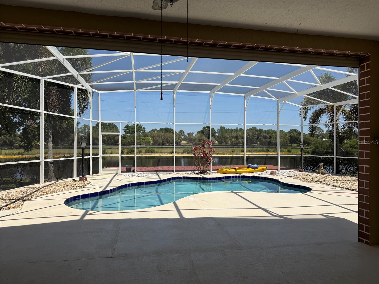 STUNING VIEW and FULL OF UPGRADES! Enjoy the perfect blend of elegance and functionality in this spacious and beautiful home well located in Hunters Creek. This 4 bedroom, 2 and half bathrooms has been freshly painted, it has generously sized rooms, filled with natural light providing comfortable living. Amazing upgraded master bath, huge master bedroom with access to the covered patio and screened in pool by the lake. Granite countertops, kitchen island and nook, glass shower doors in both full bathrooms. A well set up laundry room equipped with front load washer, dryer and laundry sink. Upgraded garage floor with ceramic tile. MAJOR PLUS: this home is already equipped with HURICANE SHUTTERS. Great location, excellent schools, stress free bike and walking trails, throughout the community. Great parks and sports. Near The Loop with shopping, restaurants, and medical offices. Pet friendly. Lawn and Pool services included in the rent.