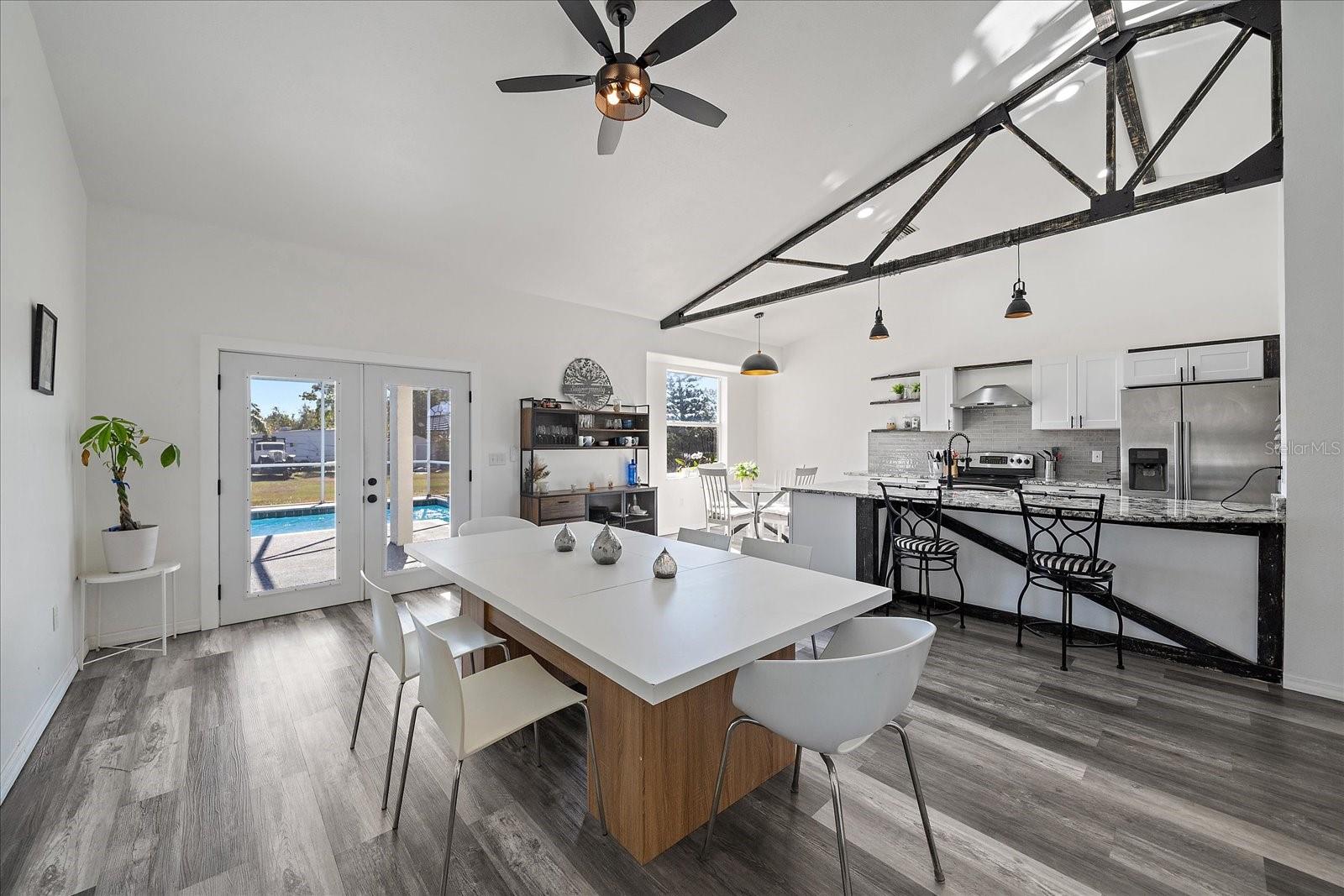 This rare Myakka City opportunity offers space, privacy, and meaningful upgrades on a generous 0.75-acre lot. The 3-bedroom, 2-bathroom home delivers open-concept living designed for both everyday comfort and entertaining. The interior features a fully remodeled kitchen with granite countertops, updated cabinetry, and finishes that flow seamlessly into the main living and dining areas. The primary bathroom has been completely remodeled and showcases a spacious walk-in shower with multiple shower heads and a waterfall feature, creating a spa-like retreat. Natural light fills the living space and extends outdoors to the screened-in lanai, overlooking the in-ground poolideal for relaxing or hosting gatherings. The fully fenced yard provides functionality & peace of mind, while an on-site storage shed offers additional space for tools and outdoor equipment. A brand-new roof installed in August 2024 provides long-term peace of mind & all new interior and exterior paint including the lanai and pool 2025. Brand new luxury vinyl flooring throughout the home 2024, New Microwave 2026, Dishwasher 2025, and Water heater 2024. With no HOA restrictions, the property allows flexibility for parking RVs, boats, or recreational vehicles. Located in the heart of Myakka City, this property offers a rare combination of acreage, freedom, and modern upgrades. Close to I-75 for convenient highway access.