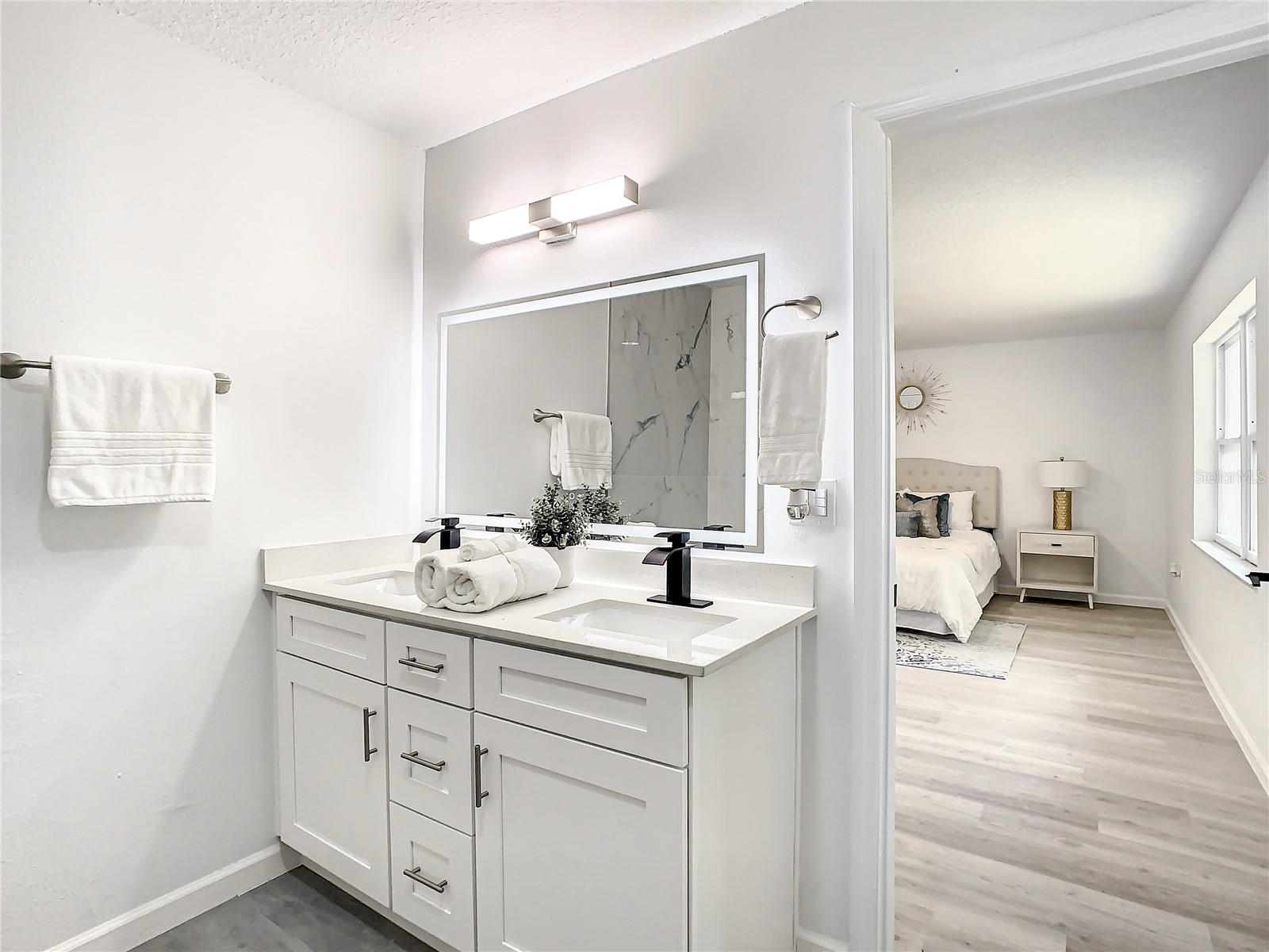 Indulge in the epitome of modern living with this fully renovated masterpiece! Boasting a thoughtfully designed split floor plan, 4 bedrooms, and2 bathrooms, this home offers the perfect blend of space, style, and versatility. The heart of the home, the sleek kitchen, is a culinary haven equipped with stainless steel appliances, and ample counter space with upscale quartz countertops and storage. It's a canvas for your culinary creations. Whether you're a passionate collector or a lover of occasional indulgence, the built-in wine cooler transforms ordinary moments into extraordinary ones. Beyond elegant glass doors, unveil an expansive living room that is sure to captivate. Bathed in natural light, this grand space invites relaxation, entertainment, and cherished family moments. With 4 well-appointed bedrooms, there's ample space for everyone. The split floor plan ensures privacy and convenience for all members of the household. The master bedroom is a sanctuary of sophistication and comfort. With its spacious design and thoughtful layout, it provides an inviting escape from the world outside. The en-suite bathroom complements the master suite with its lavish features, double vanities, and a spa-like shower - experience the touch of rainfall from above and immerse yourself in the lap of luxury with the ceiling-mounted shower head. A dedicated bonus room adds an extra layer of versatility, it's ideal for a home office, playroom, or creative studio, the space adapts to your unique needs. Don't miss the chance to call this fully renovated gem your own. With its spacious layout, bonus room, and modern finishes