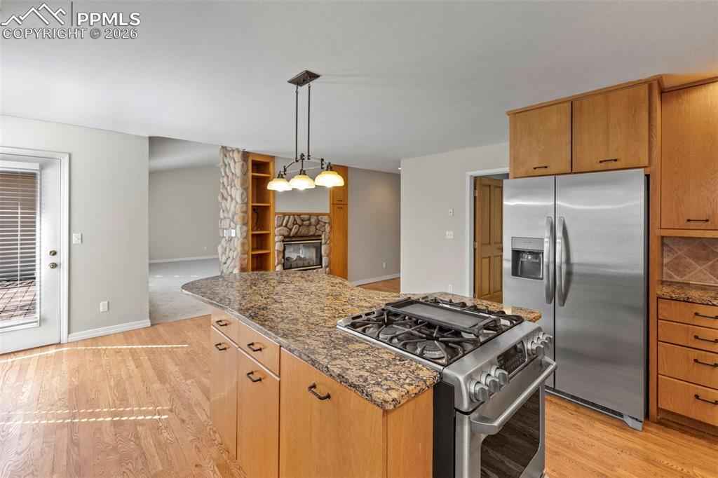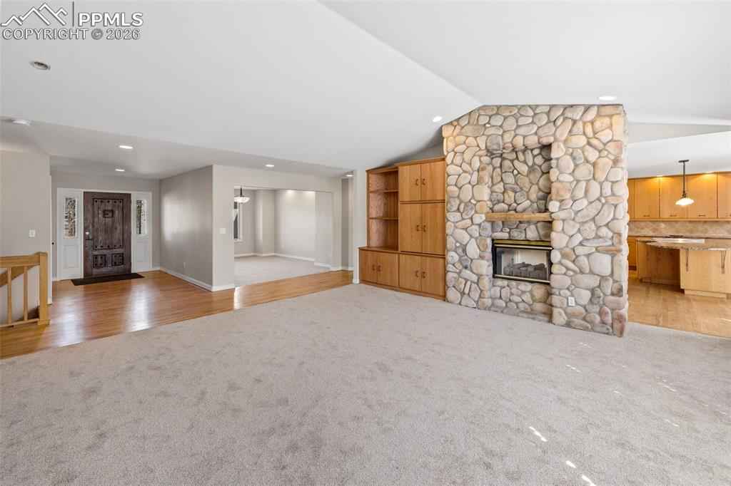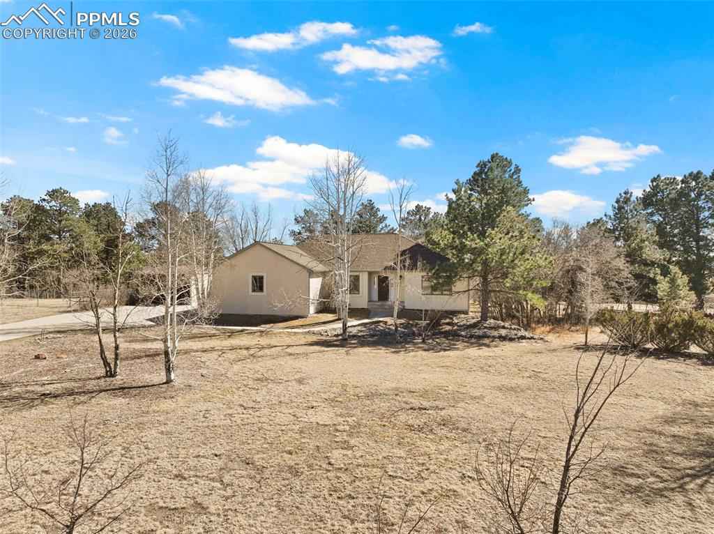 **"Auction Property*** This property has been placed in an upcoming Reserve auction. Property is subject to a buyer's premium pursuant to the Auction Participation Agreement. The list price is the opening bid only and does not indicate the reserve or sale price. Nestled within the tranquil community of Monument, this well-maintained, ranch-style residence commands nearly a full acre of wooded privacy, enveloped by mature trees and framed by breathtaking mountain vistas. This exceptional home offers an unparalleled blend of seclusion and sophistication, providing a serene sanctuary while remaining effortlessly connected to everyday conveniences and the vibrant pulse of the Front Range. Upon entry, an abundance of natural light illuminates an expansive, open-concept living space, elevated by recent updates: pristine new carpeting and fresh designer paint throughout. Luxurious hardwood flooring graces the main living areas. The heart of the home is a chef-inspired kitchen, thoughtfully designed for both culinary excellence and effortless entertaining, with seamless flow into a gracious dining area and voluminous great room. A striking floor-to-ceiling custom river rock double-sided fireplace, accented by built-ins, anchors the space and infuses it with timeless warmth and elegance. The main level hosts a luxurious primary suite, complete with an oversized walk-in closet and spa-like private bath, complemented by a versatile secondary bedroom perfectly suited for guests, a home office, or quiet relaxation. Downstairs, the fully finished lower level delivers remarkable versatility: a sprawling recreation room, three generously proportioned additional bedrooms, and two full baths, ideal for multi-generational living, extended family visits, or creating personalized lifestyle spaces. Positioned with swift access to I-25.