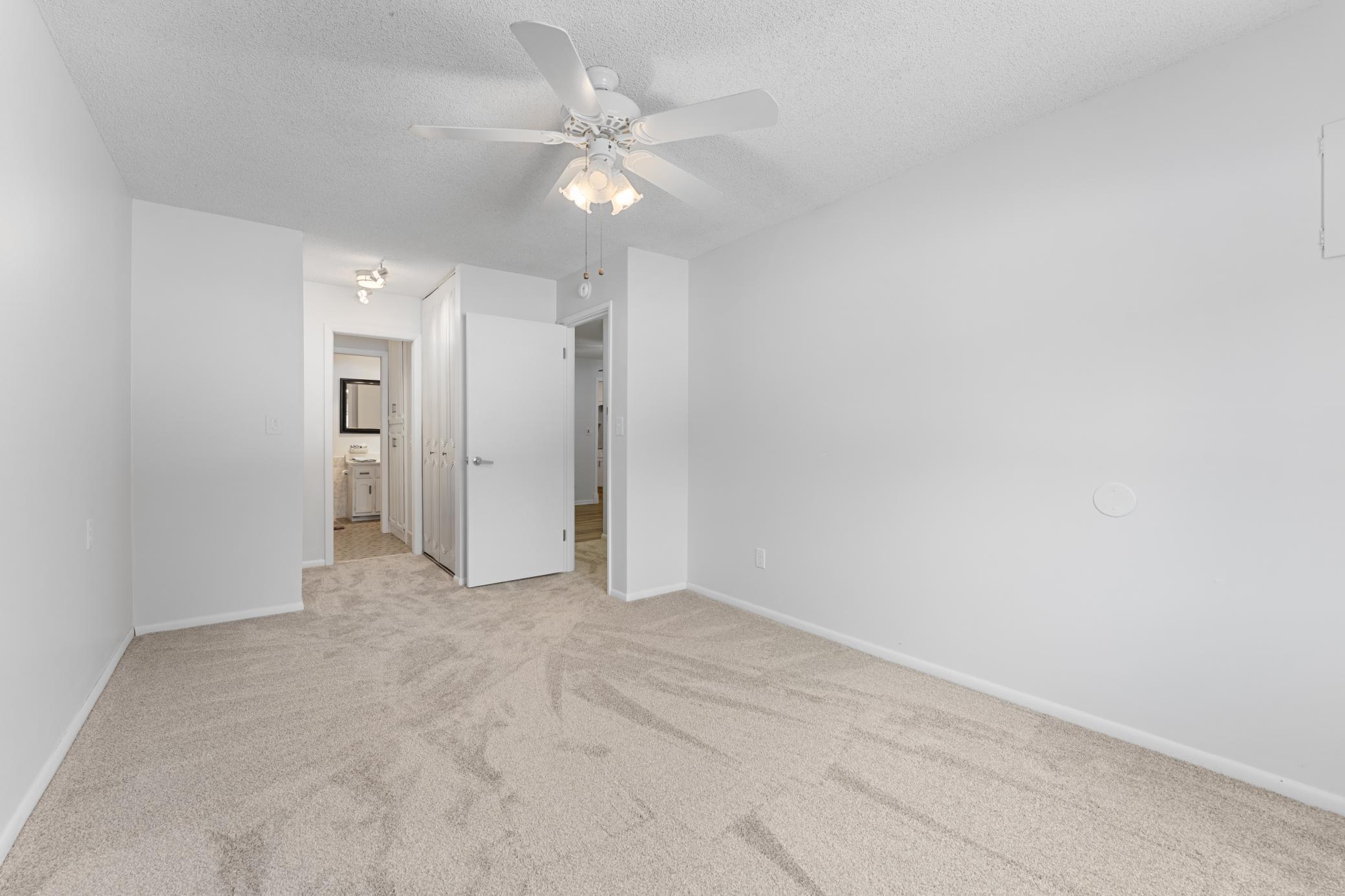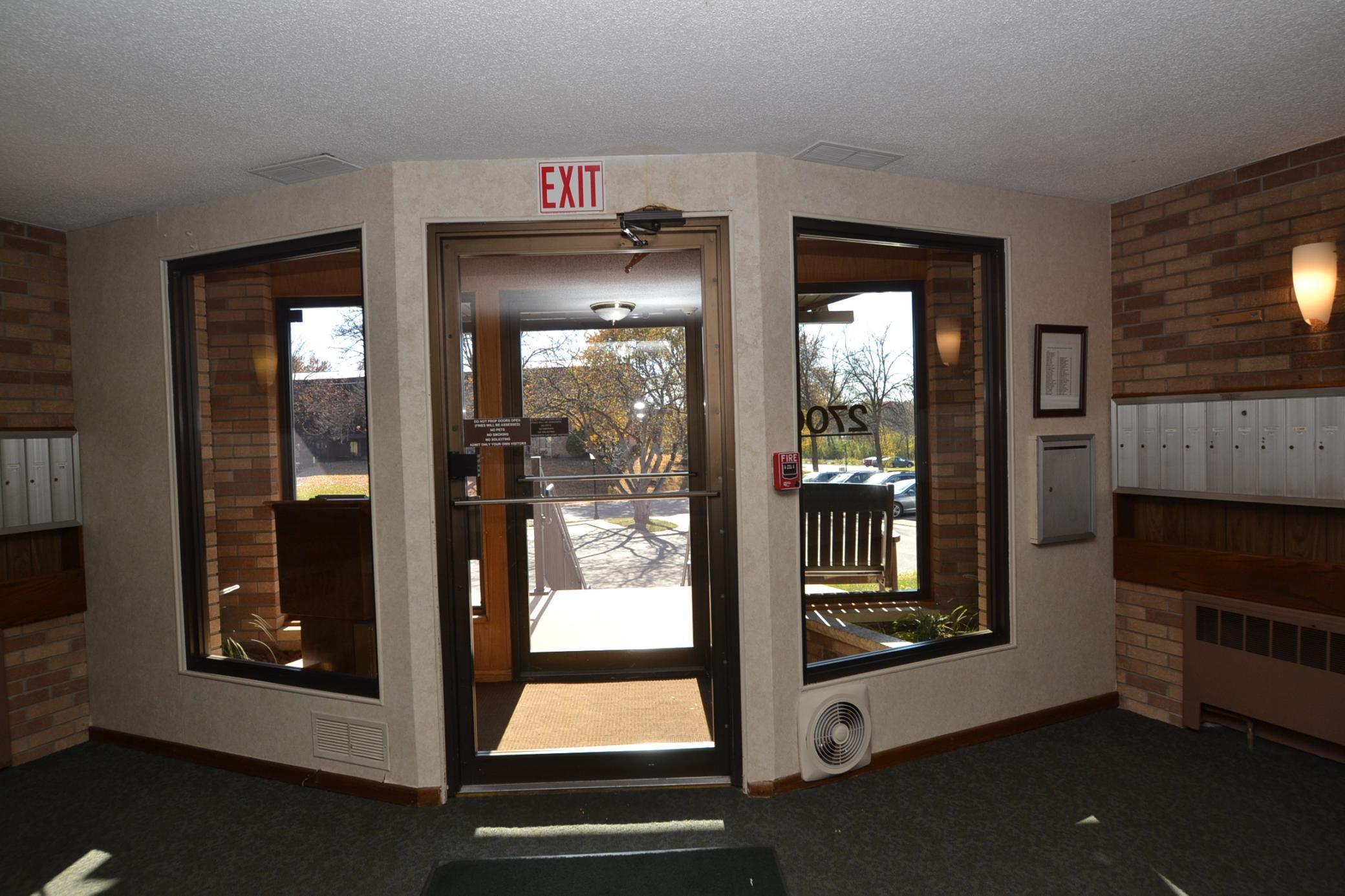 Welcome home to easy living in this quiet - convenient 2 bed 2 bath plus heated garage on the main floor. All new carpet in both bedrooms and living room, plus laminate flooring in the dining & kitchen. Ceramic baths, kitchen has a huge pantry with custom cabinetry and countertops. All new paint throughout. Beautiful almost new kitchen cabinets and all appliances. L/R has an upscale barn door - can be used for office space or second bedroom. LR with brick working fireplace. Washer/dryer hookup in unit. Added screened in porch for quiet mornings or evenings overlooking spacious grounds & sometimes wildlife. Building has private, secure entrance & sitting area. Indoor heated pool, exercise, basketball court, entertainment area, sauna and so much more for a relaxing condo in Roseville across from Central Park with walking paths, this building is so close to entertainment, restaurants, theaters & so much more. Come live where you deserve and leave the snow behind.