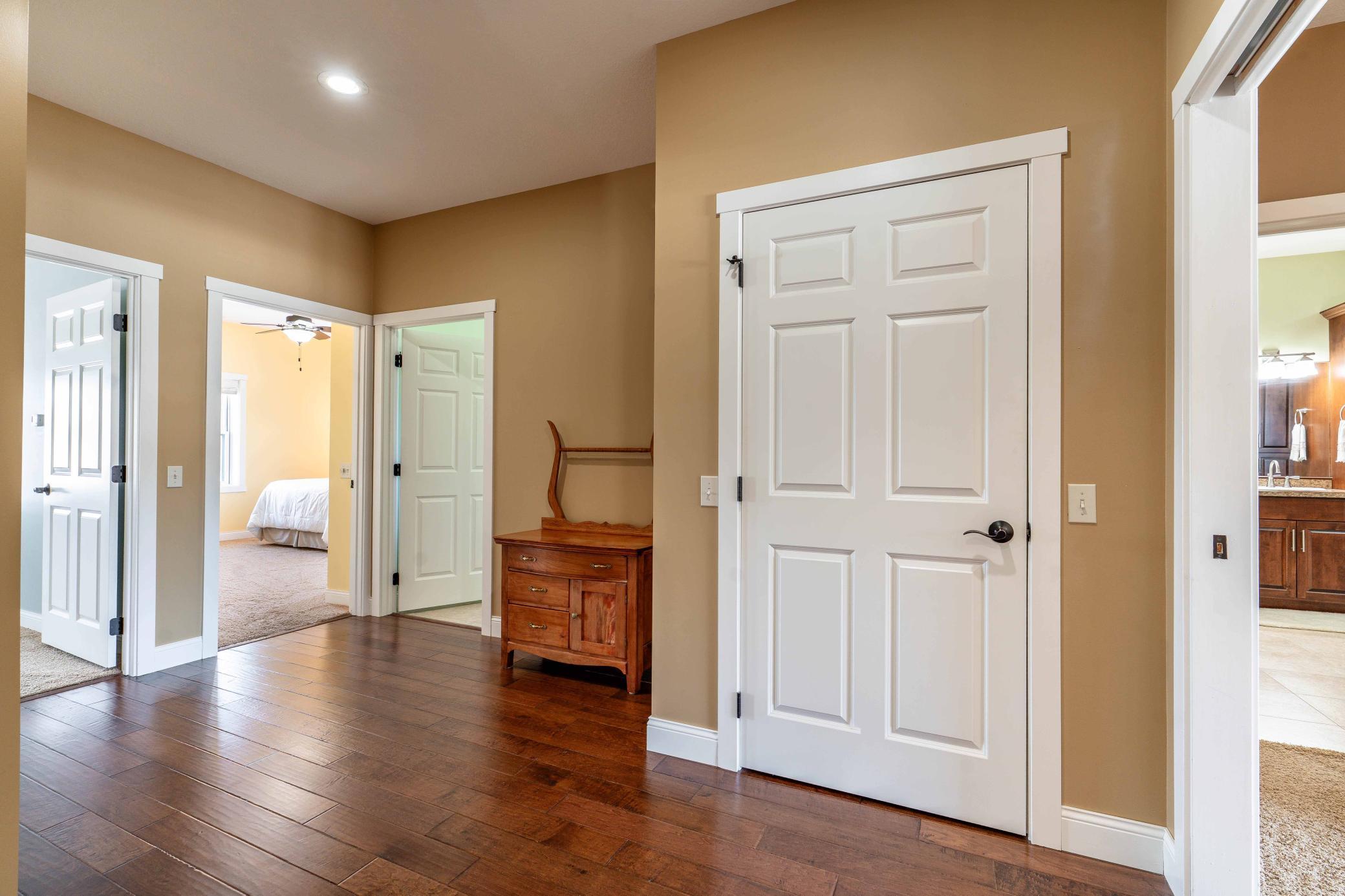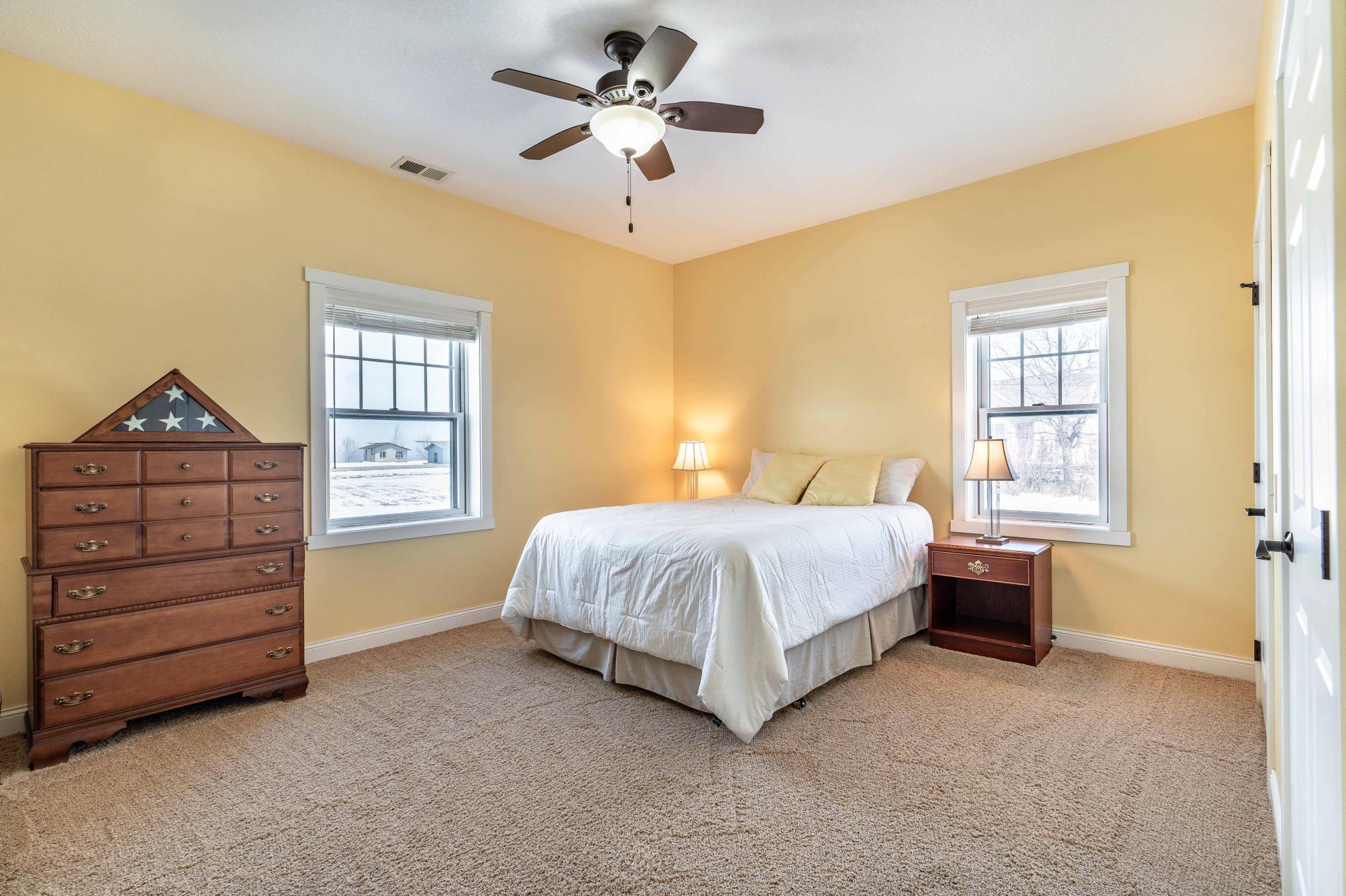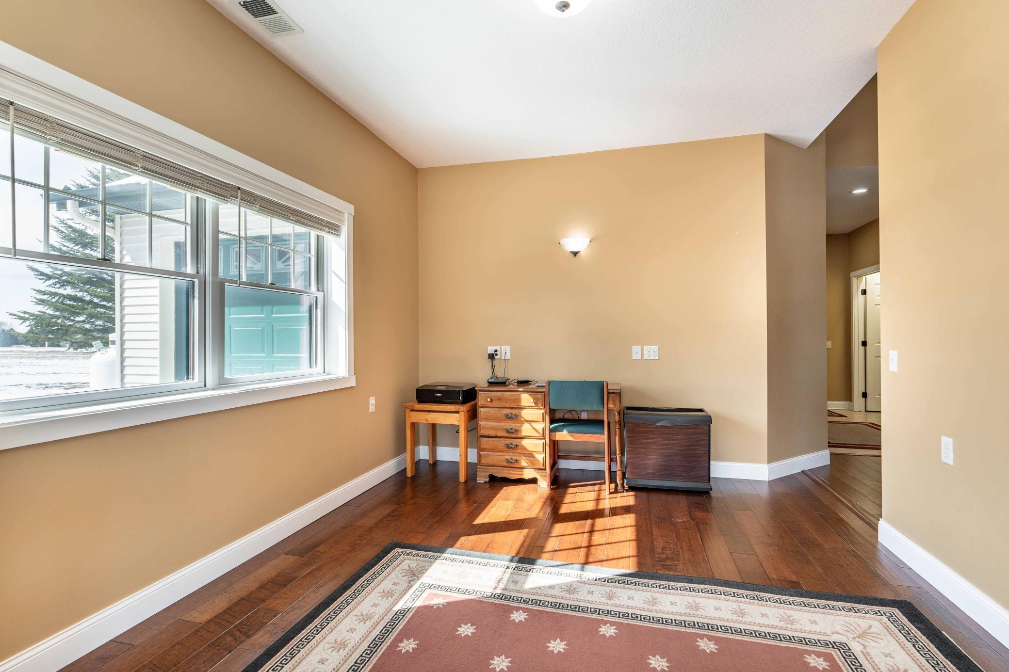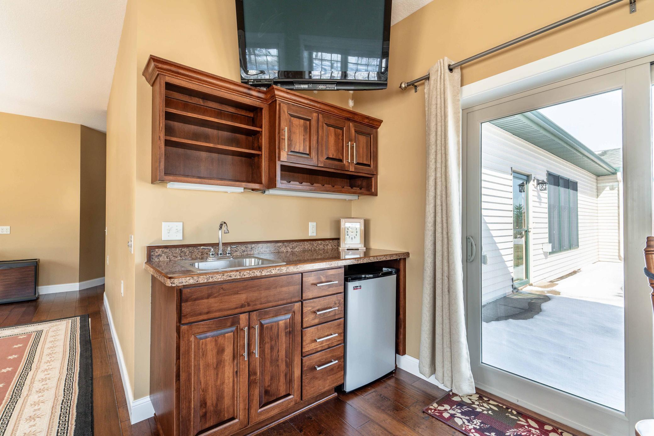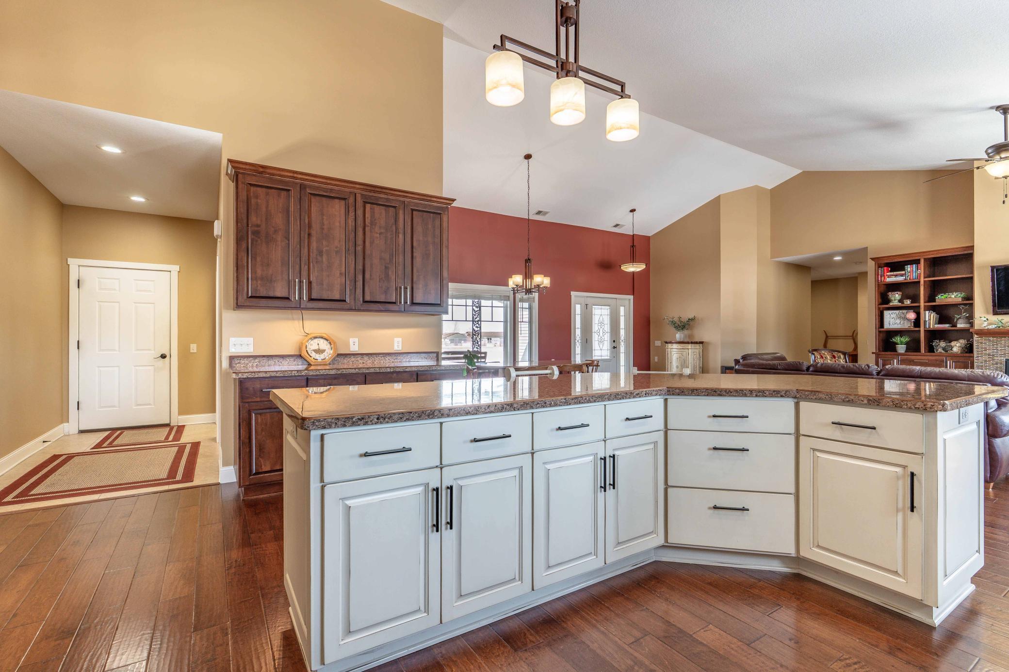 Welcome to easy, elegant living in this beautiful one-level home finished in 2012, ideally located just off Tipsinah Mounds Golf Course. Designed with both comfort and style in mind, this 3-bedroom, 3-bath residence offers the convenience of single-level living paired with beautiful finishes and inviting spaces throughout. The heart of the home features an open-concept with a stunning vaulted ceiling, creating a bright and airy atmosphere perfect for both everyday living and entertaining. The spacious kitchen is a true centerpiece, offering abundant counter space, quality cabinetry, and an oversized center island with ample seating, ideal for gatherings with family and friends. A standout feature is the expansive sunroom, filled with warm southern exposure light and complete with a wet bar and direct access to the patio. Whether you're relaxing with a book, enjoying movie nights, playing piano, or utilizing it as a home office or flex space, this room pulls you in. The primary suite is a private retreat, featuring a generous en suite bath with a soaking tub, walk-in shower, and convenient access to a large laundry room, thoughtfully designed for ease and efficiency.Additional highlights include a spacious 3+ stall garage equipped with in-floor heat, floor drains, and a dedicated golf cart garage at the rear, perfect for golf enthusiasts and hobbyists alike. Set in a peaceful rural setting with room to garden, play, and unwind, this property offers the best of both worlds - quiet country living just moments from the golf course and close proximity to Pomme de Terre Lake. Experience a lifestyle that blends recreation, relaxation, and refined comfort.