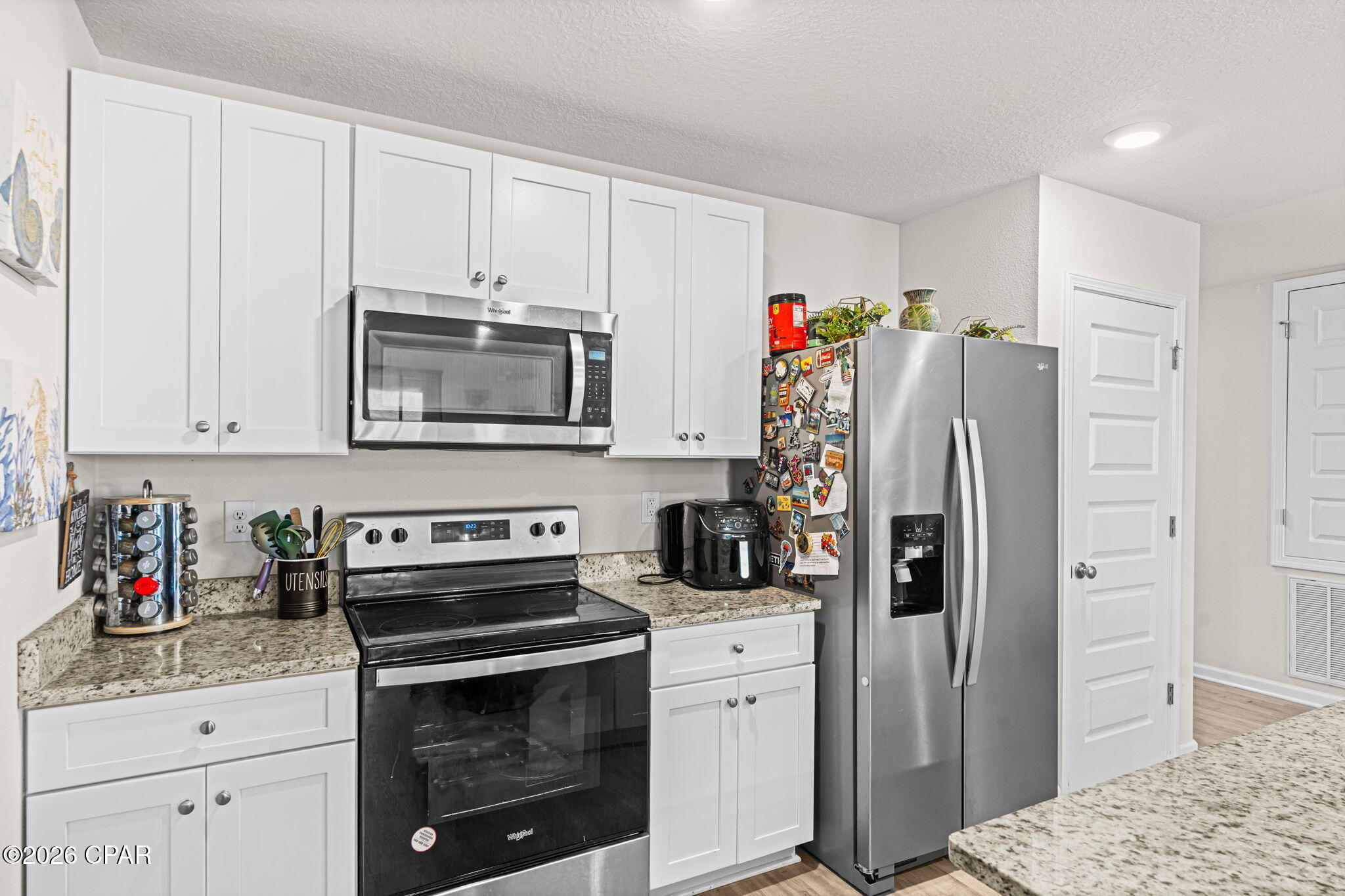 Located in Park Place in Callaway FL, this 4-bedroom, 2-bath Freeport floorplan offers 1,387 square feet of well-designed living space in one of the closest new construction communities to Tyndall Air Force Base. The welcoming entry opens into a bright, open-concept layout ideal for everyday living and entertaining.The kitchen features a large center island and granite countertops throughout the home, with clear sightlines to the dining and living areas. A split-bedroom design provides privacy, with two bedrooms and a full bathroom at the front of the home and an additional bedroom off the entry hallway.Main living areas, bathrooms, and laundry room are finished with luxury vinyl plank flooring, while the bedrooms feature carpeting. The primary suite includes a spacious bedroom and an en-suite bathroom with a double vanity, oversized shower, and large walk-in closet.Exterior features include a brand-new privacy fence with integrated LED lighting and a backyard with ample space. Residents enjoy access to a beautiful community pool maintained by the low cost HOA. Conveniently located near shopping, parks, and schools, with easy access to Tyndall Air Force Base. Low HOA fees, billed quarterly, add to the home's overall value.Schedule your private showing today and see why this home is the perfect place to make your next move.