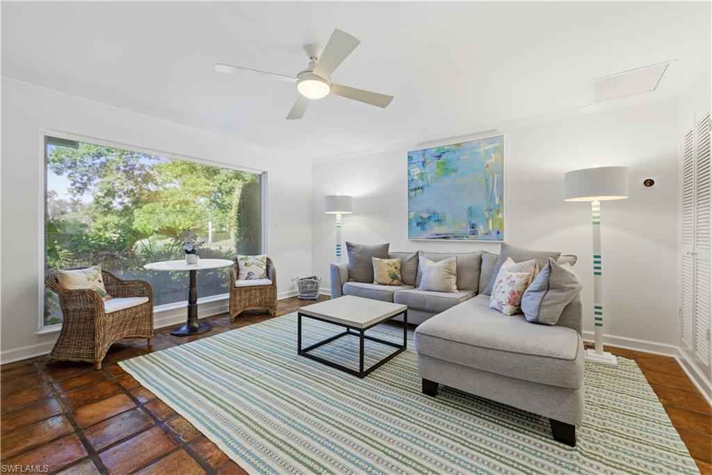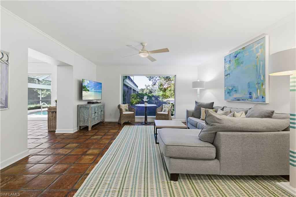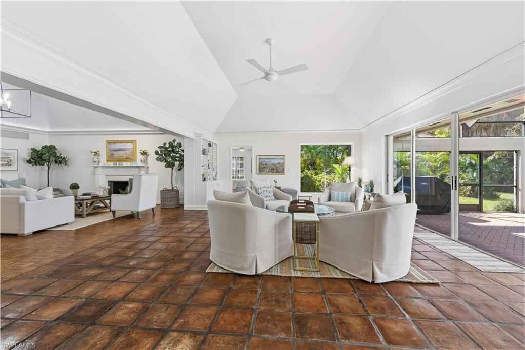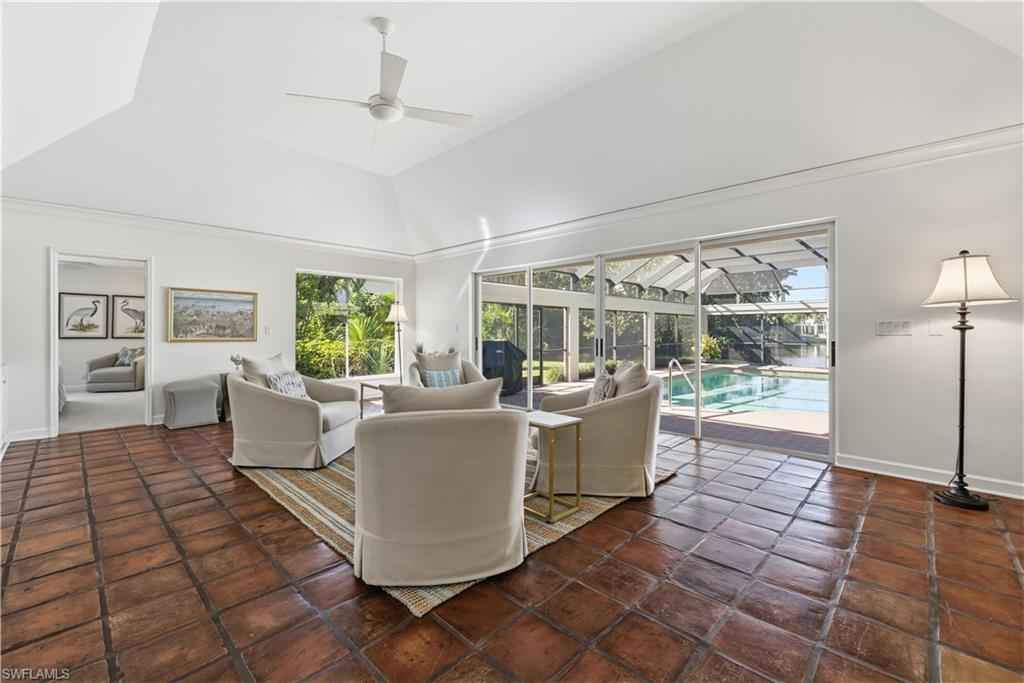 PORT ROYAL LAKEFRONT available MARCH/APRIL 2026 or ANNUALLY at $ 15,000/mo. This updated home with vintage charm offers 3,000+ sf of living space on nearly a half-acre of land. Tastefully decorated in neutral tones and colorful accents/artwork, high tray ceilings, the living room/dining room combination has parquet wood floors, a flat screen TV and a fireplace. There is a separate family room with club chair seating and sliding glass doors that open to the screened, brick paved pool deck. The large kitchen has updated appliances, wine storage, counter bar seating, and an informal breakfast/TV room with spectacular lake views. The Primary Suite offers a King-size bed, set in a rich bedframe, matching end tables, spacious closet, with an updated bath with a spa shower. The guest bedroom has a queen-size bed, light bedframe, colorful comforters. The 3rd bedroom offers two twins. There is also a small, "bunk" room to sleep two additional guests as well as two additional bathrooms. The screened lanai is a wonderful area to entertain family and guests, with a heated pool, gas grill, and a spacious yard with beautiful landscaping around the lake. One will enjoy beautiful western sunsets from this residence. An easy walk/bike ride to Naplesx2019; white, sandy beaches and the Gulf of America. An ideal location, with an easy bike-ride to the beach and to the shops and restaurants on Third Street, as well as a quick drive to the Fifth Avenue shops, restaurants, and galleries.