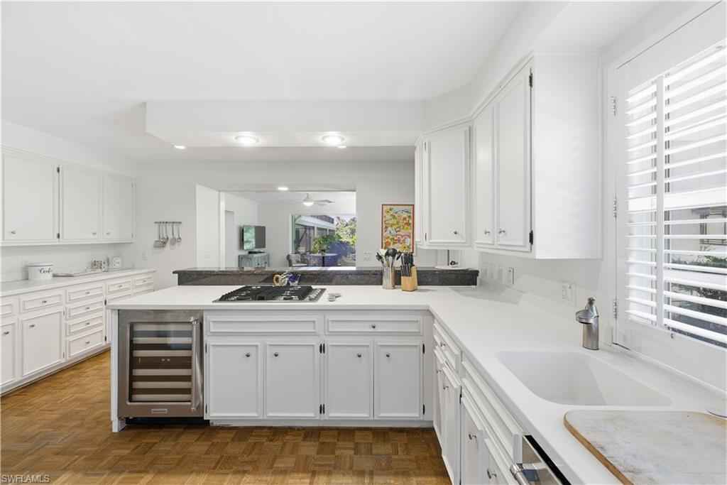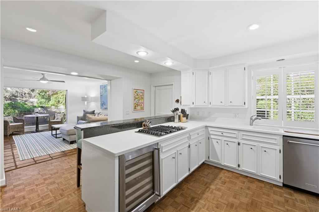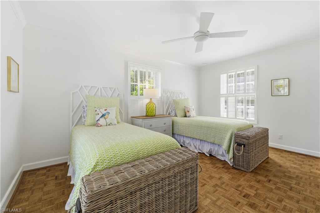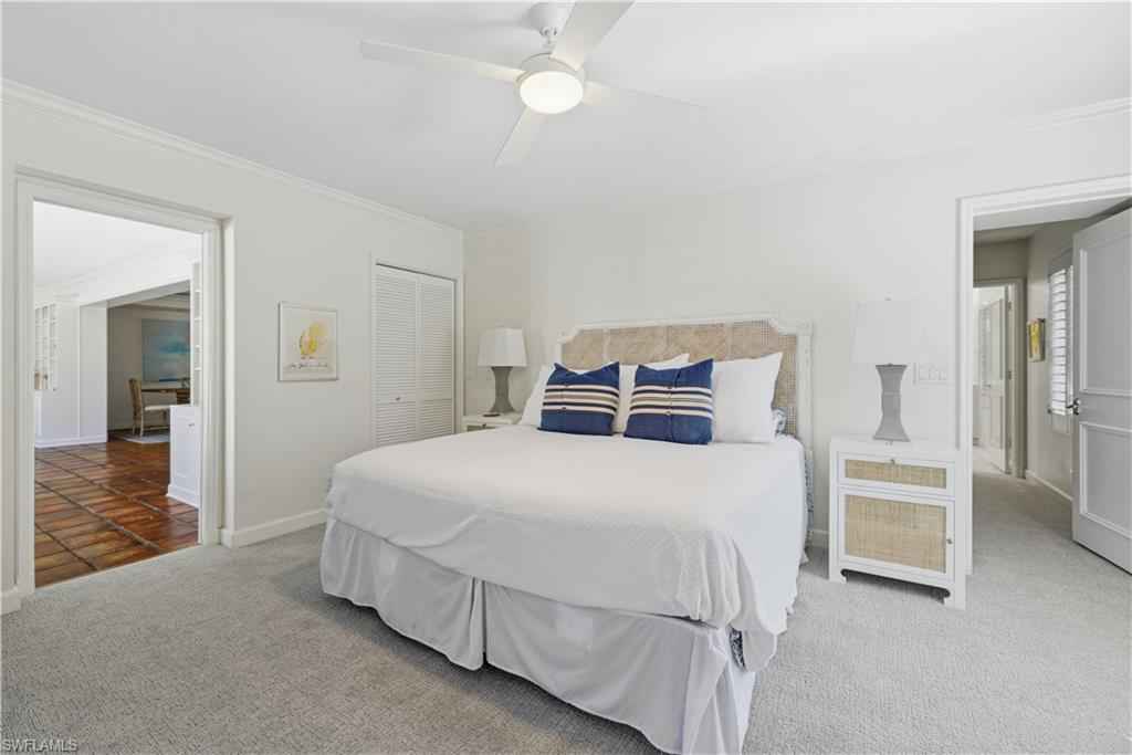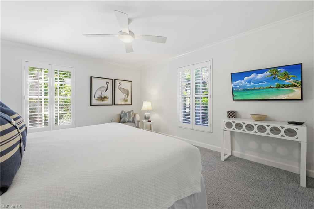 PORT ROYAL LAKEFRONT available MARCH/APRIL 2026 or ANNUALLY at $ 15,000/mo. This updated home with vintage charm offers 3,000+ sf of living space on nearly a half-acre of land. Tastefully decorated in neutral tones and colorful accents/artwork, high tray ceilings, the living room/dining room combination has parquet wood floors, a flat screen TV and a fireplace. There is a separate family room with club chair seating and sliding glass doors that open to the screened, brick paved pool deck. The large kitchen has updated appliances, wine storage, counter bar seating, and an informal breakfast/TV room with spectacular lake views. The Primary Suite offers a King-size bed, set in a rich bedframe, matching end tables, spacious closet, with an updated bath with a spa shower. The guest bedroom has a queen-size bed, light bedframe, colorful comforters. The 3rd bedroom offers two twins. There is also a small, "bunk" room to sleep two additional guests as well as two additional bathrooms. The screened lanai is a wonderful area to entertain family and guests, with a heated pool, gas grill, and a spacious yard with beautiful landscaping around the lake. One will enjoy beautiful western sunsets from this residence. An easy walk/bike ride to Naplesx2019; white, sandy beaches and the Gulf of America. An ideal location, with an easy bike-ride to the beach and to the shops and restaurants on Third Street, as well as a quick drive to the Fifth Avenue shops, restaurants, and galleries.