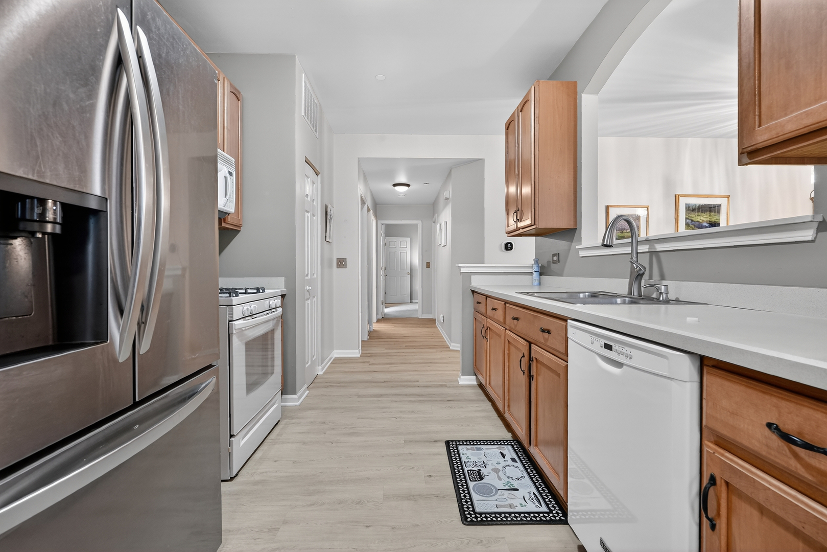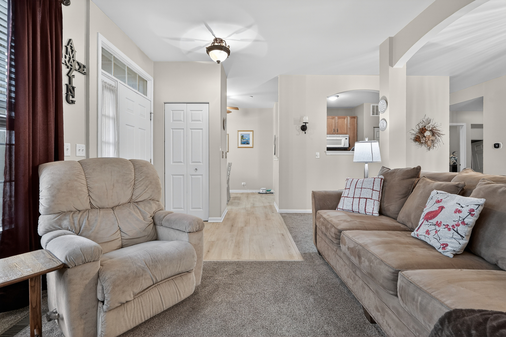 Beautiful ranch-style home offering convenient first-floor living and maintenance-free lifestyle! This 2-bedroom, 2-bath home features a spacious and open layout with a screened-in porch perfect for relaxing or entertaining. The bright kitchen includes 42" maple cabinets and plenty of storage. The spacious primary suite offers a large walk-in closet and private bath. Additional highlights include a dedicated laundry room and a 2-car garage. Major updates provide peace of mind:New furnace & water heater (2021) A/C unit replaced (2025) Roof complete tear off soffit & gutters also replaced (2025) Luxury vinyl plank flooring installed (2025) Ideally located close to shopping, dining, and beautiful Schweitzer Woods, this home combines comfort, style, and convenience.