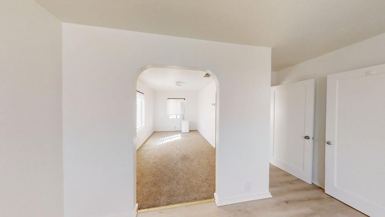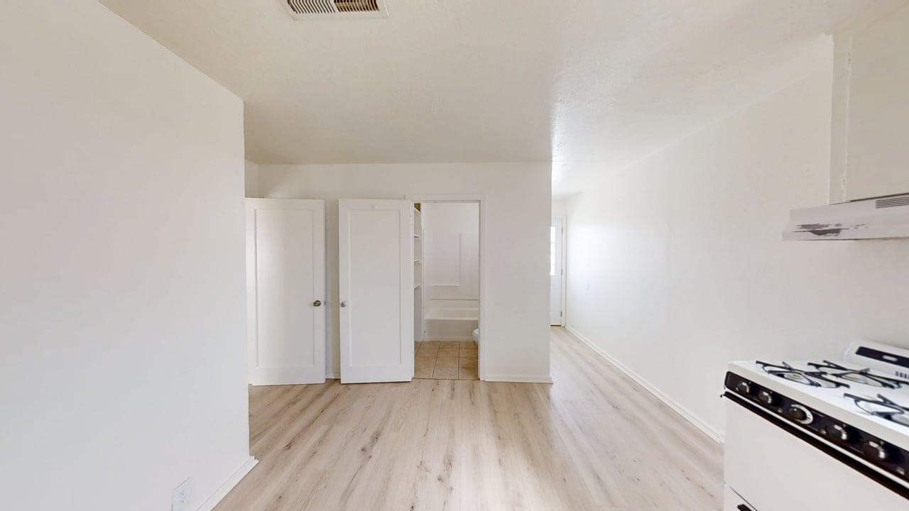 ADU for rent. One bedrooms, One bathroom, ADU upstairs above garage a two car garage and shared driveway with front house tenant. ADU has alley access.