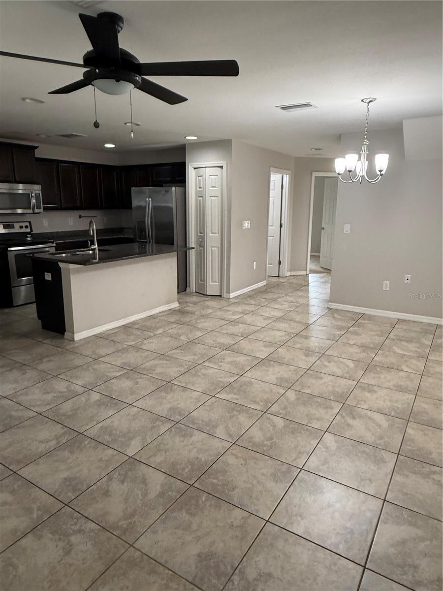Large 4-bedroom townhouse located in a highly desirable and prime location featuring an open floor plan designed for entertaining, a beautiful kitchen with granite countertops, stainless-steel appliances, abundant dark coffee cabinets for storage, and a breakfast bar perfect for casual meals and conversation. Ceramic tile flooring runs throughout the first floor for easy maintenance and convenience. Enjoy a nicely sized screened-in patio off the living room, offering an inviting outdoor space under a full screen enclosure. One bedroom is conveniently located on the first floor, while the primary suite and two additional bedrooms are upstairs, along with a laundry room and spacious hallway that provide privacy and separation between bedrooms. This home includes two assigned parking spaces and access to a community pool, with lawn care and maintenance, water, sewer, and garbage collection included. Ideally located near I-75 and SR 54, and just minutes from The Grove shopping area, dining, and entertainment. Excellent locationdont miss the opportunity to view this home and make it yours. Call today to schedule your private showing!