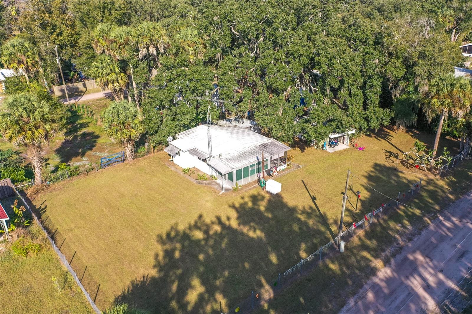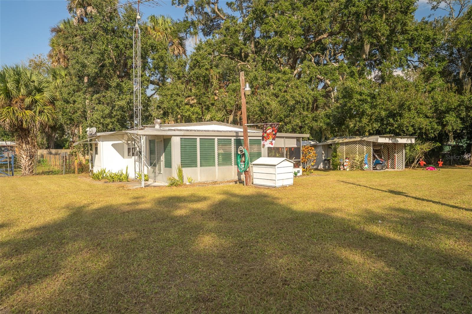This incredibly rare opportunity presents the perfect fisherman's haven or weekend getaway in the sought-after Kissimmee River Shores area of Lorida, FL. This charming 1-bedroom, 1-bath manufactured home is beautifully situated on a paved road, and features a cozy interior ideal for relaxation after a day on the water. Inside, you'll find a living area with a classic coastal feel, showcasing light-colored grooved wood paneling and functional flooring, plus a bright bonus room/sunroom for extra living space. The efficient galley-style kitchen offers ample light-colored cabinetry, laminate countertops, and essential appliances. The bedroom is ready for rest with storage. The home also includes a dedicated laundry room.Designed for the outdoor enthusiast, the property offers two boat slips providing immediate access to the Kissimmee River and close proximity to prime fishing spots. The spacious, fully-fenced yard with lush, mature trees is exceptionally equipped with all the necessary storage: a large carport with an attached utility shed, an additional separate storage shed, and a dedicated large metal boat cover to protect your toys. With two wide gates for easy car or boat trailer entry, plus recent essential upgrades including a new well casing and new well pump, this home is completely dialed in. Whether seeking a permanent winter home or an effortless escape, this boater's dream property offers the quintessential Florida sporting lifestyle! The property consists of two lots and the additional acreage is 0.10 acres equaling a total of 0.30 acres.
