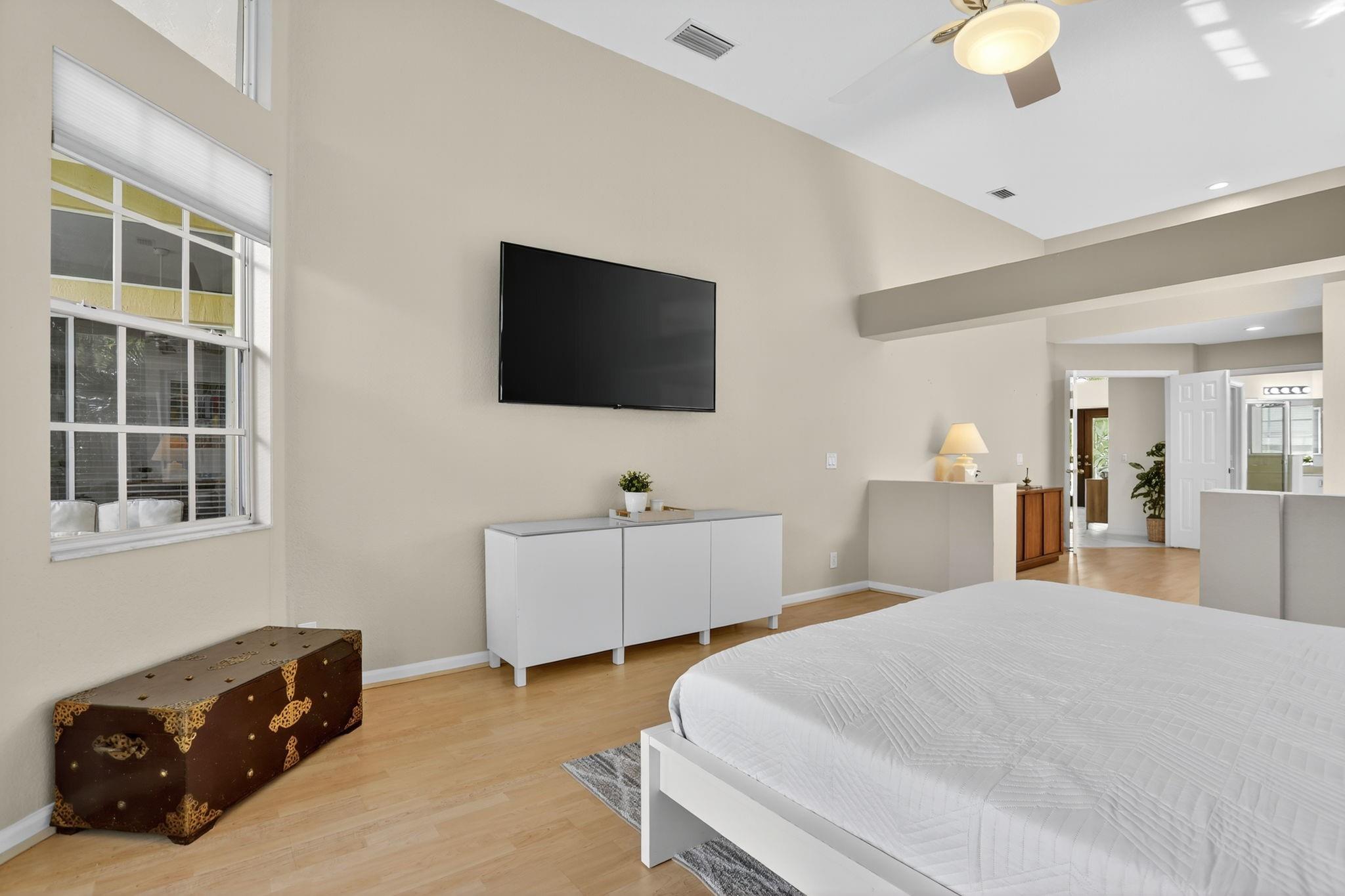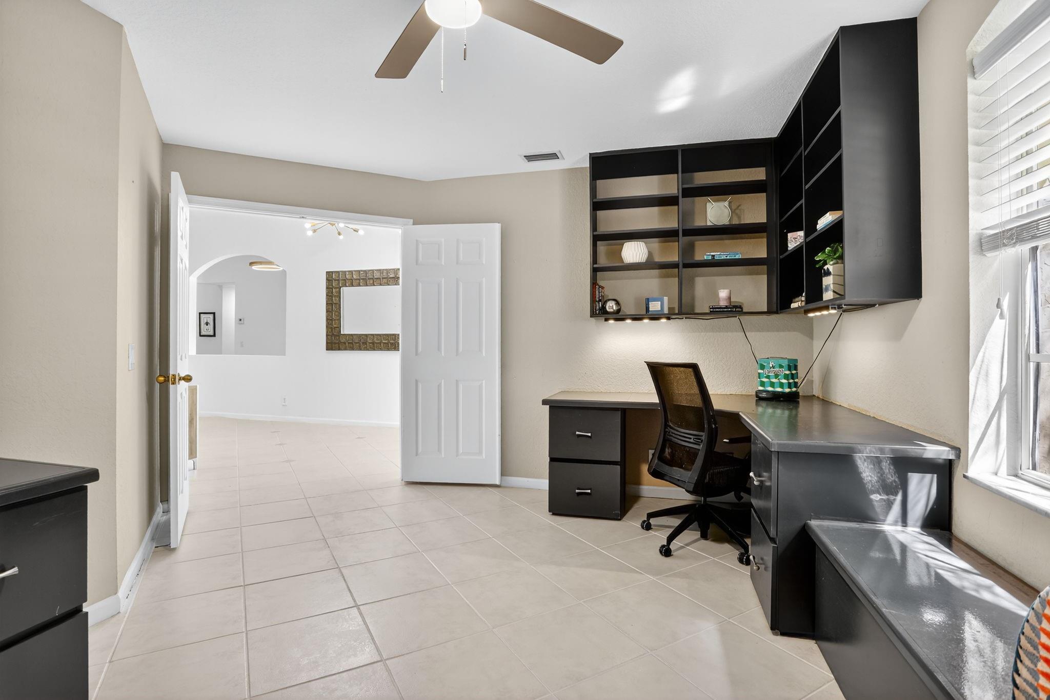WOW! Lowest price 5BD home in Weston Hills! Shows like a model! Light, bright & airy, beautiful single-story, almost 3000sf/ac, situated on a picturesque tree-lined street. French doors with impact glass open to a crisp, freshly painted interior bathed in warm natural light, with high ceilings, brand-new LED lights & new modern chandeliers (Oct 2025). The expansive 3-split floor plan features a primary suite w/generous sitting room, great as exercise area. The large den with custom built-ins is perfect as home office. White/granite kitchen w/stainless appliances, stone backsplash, new modern hardware. Tile in all liv areas, newer luxury vinyl in bedrooms. Generous covered patio & charming private garden provides a peaceful backyard oasis. Around the corner from the comm park & golf course.