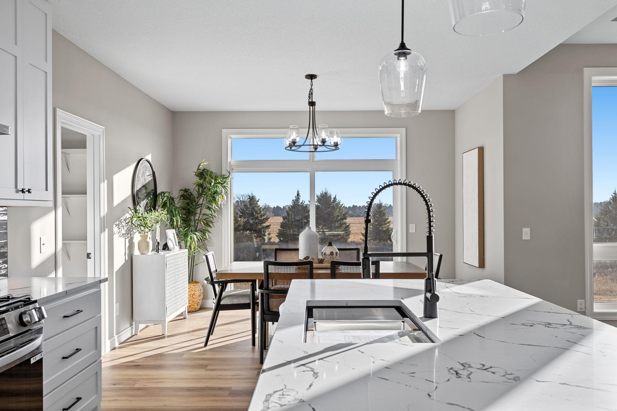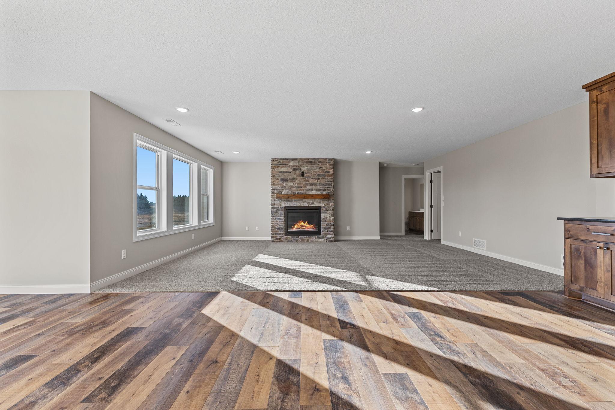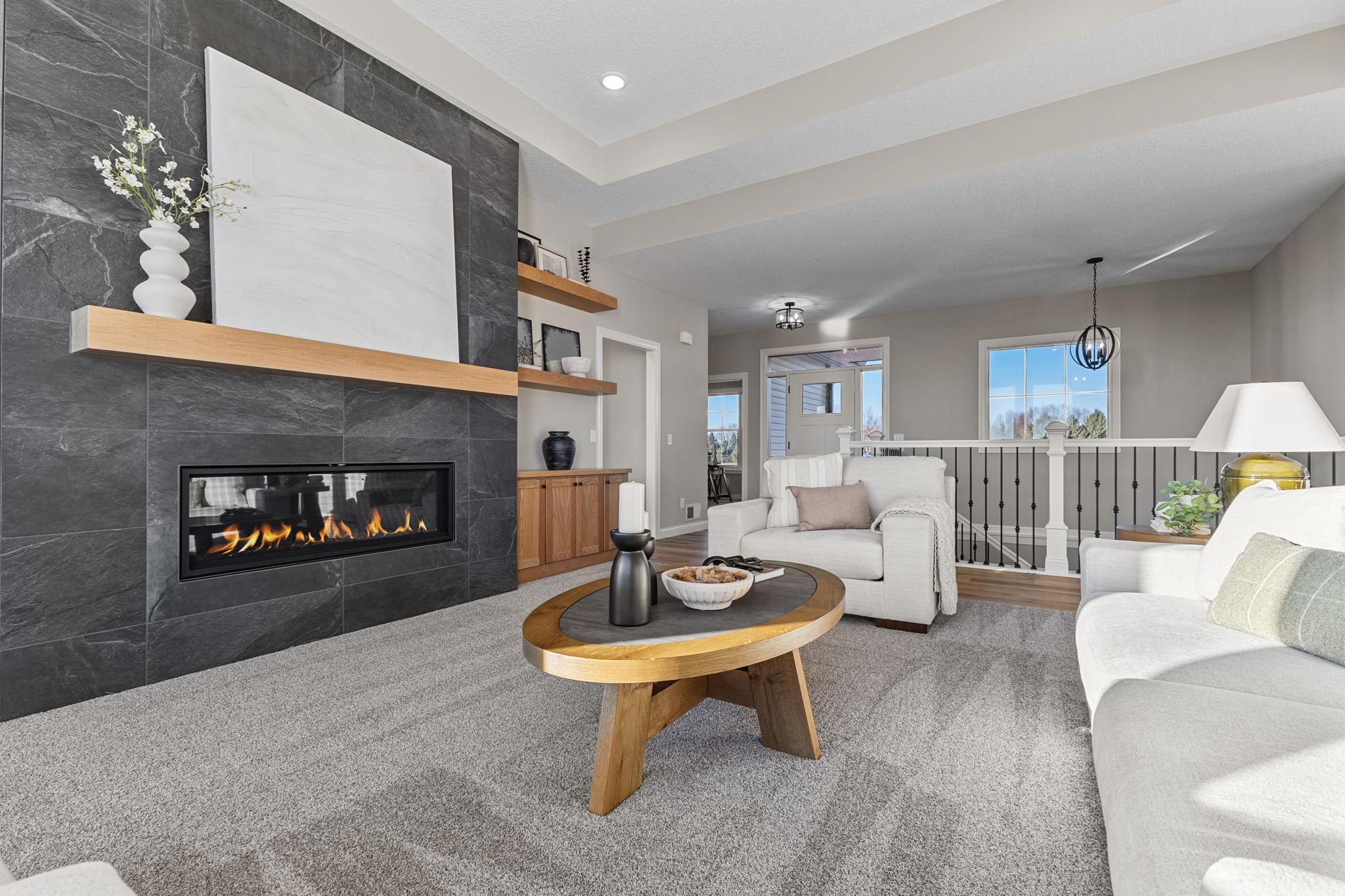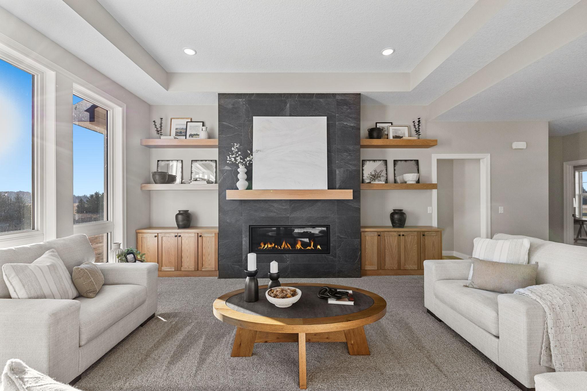 Welcome Home to the Tuscany rambler built by TH Construction of Anoka, to be greeted by a large open concept kitchen with custom built cabinets, large center island all finished with beautiful quartz tops. Offering plenty of space this kitchen also includes a walk in pantry and large dining room. The living room is one to remember with a double box vaulted ceiling to really open up the area alongside the large windows. Living room is finished with a gas fireplace, stone surround along with built in cabinets along each side of the fireplace. The primary bedroom is a homeowners dream offering vaulted ceilings, private bath with a dual bowl vanity, walk in tile shower, and walk in closet. The main floor also offers another bedroom, full bath, a large den/office, and a laundry room. Don't let me forget about the large 42x26-4 stall garage! The basement is also finished, adding a 3rd and 4th bedroom, and 3rd bathroom. The large family room also finished, with large windows, a second gas fireplace with stone surround, and an extra large patio door to walk right out to your yard! The family room also consists of a large wet bar,finished with granite tops! Yard and sprinklers included in the price! Interior pictures are of similar home.