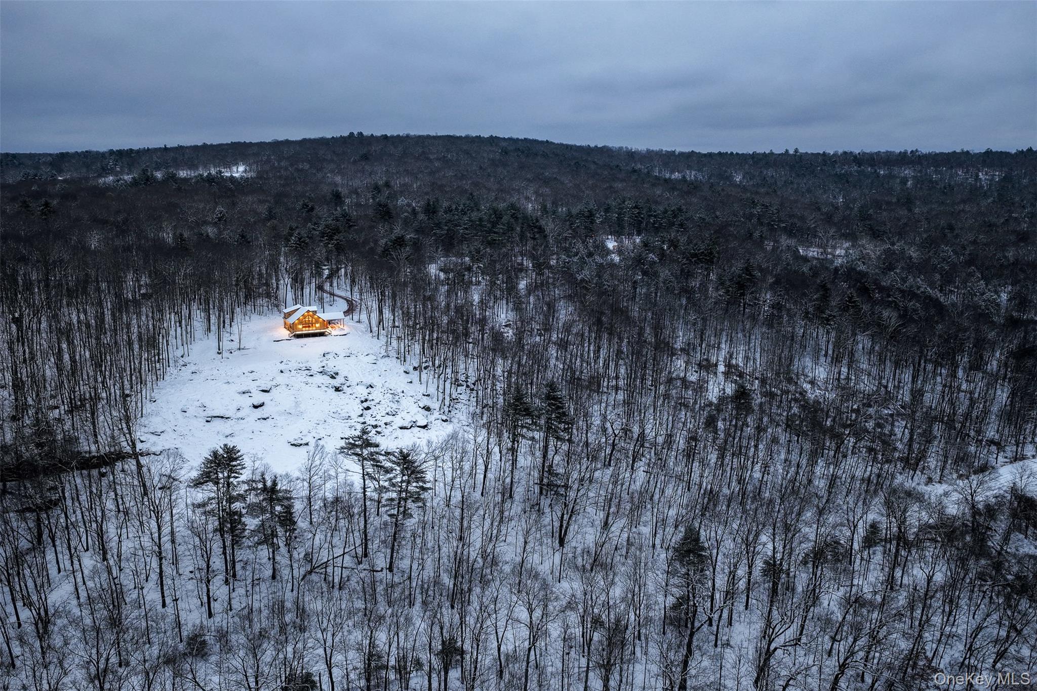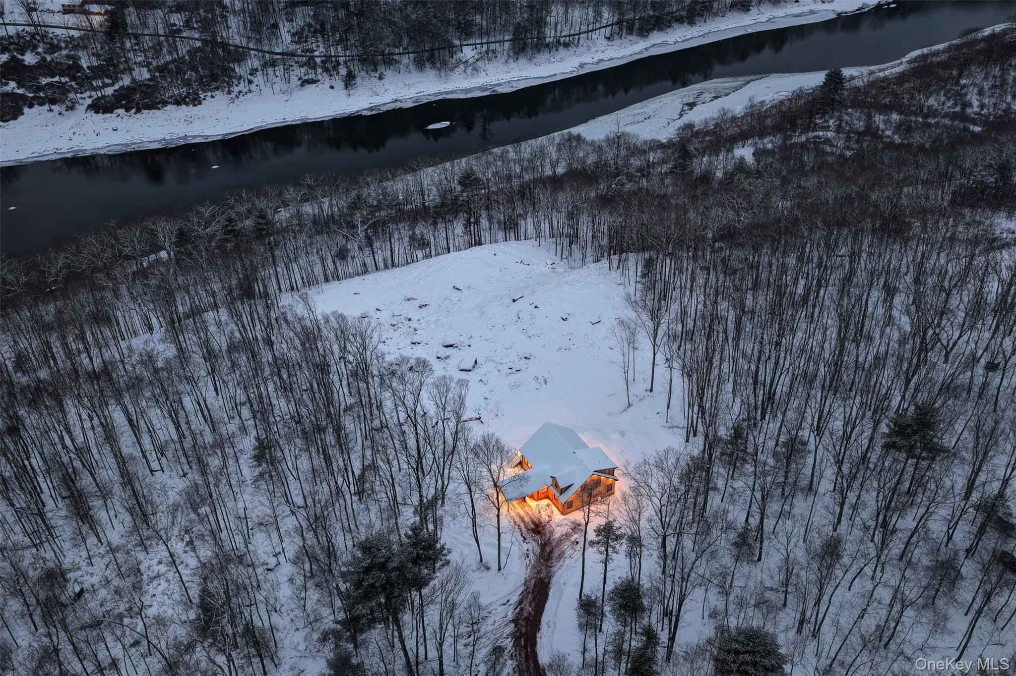 Set quietly back from the road, a gently curving driveway builds anticipation before the house, and the view finally reveals itself. Newly constructed and thoughtfully sited, this three-bedroom, two-bath home captures long, westward views across the Delaware River valleyan ever-changing landscape of light, weather, and nightly sunsets. From this elevated vantage point, its not uncommon to find yourself eye-to-eye with bald eagles gliding above the river below. A covered carport connects directly to the house, offering practical, all-weather access. Inside, a generous mudroom with dual coat closets provides a graceful transition into the home. Beyond it, the great room opens up in scale and volume, with ceilings soaring to 24 feet and expansive west-facing windows drawing in warm natural light throughout the day. The open layout is both inviting and flexible: a dining area easily accommodates a table for eight or more, while the living space opposite offers ample seating and media space without feeling overdesigned or undersized. The open kitchen anchors the main floor, which is well suited for both everyday living and entertaining. A large island invites conversation and casual meals, complemented by quartz countertops, new appliances, and abundant cabinetry. The whole picture is clean, modern, and highly functional. Two bedrooms are located on the main level, tucked down a private hallway behind the kitchen. Each offers good closet space and windows on two sides, creating bright, comfortable rooms. A well-appointed bath sits between them, featuring a soaking tub, a large glass-enclosed walk-in shower, a double vanity, and tasteful tilework throughout. Laundry and additional storage are thoughtfully integrated nearby. There is access to the cement crawl space in one of the closets. Upstairs, a landing leads through barn doors into the primary suite. Measuring approximately 19 by 21 feet, the space easily accommodates a king-size bed along with a sitting or work area. A walk-in closet and a spacious ensuite bath complete the suite, with a double vanity and a tiled, oversized walk-in shower. The 4.36 acres are just five minutes from the heart of Narrowsburg, where a lively Main Street offers excellent dining, wine shops, and thoughtfully curated home goods. Fourteen minutes upriver brings you to Callicoon, another beloved river town with its own distinct charm. A modern, light-filled home with sweeping views, well-balanced between privacy and connection, Pine Ridge offers a refined take on Catskills living.