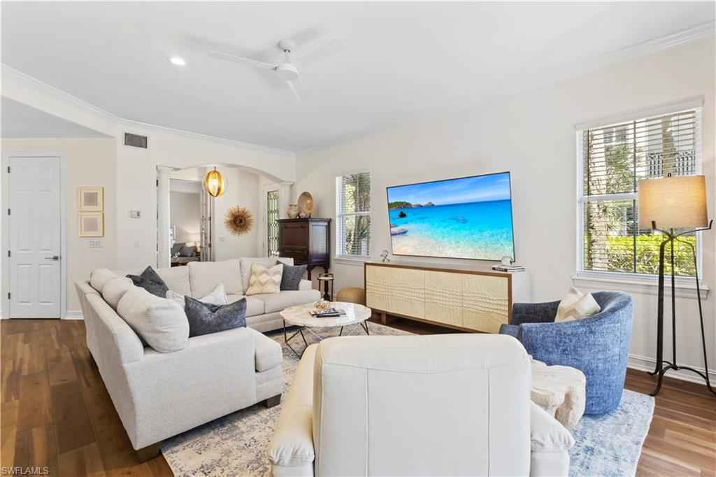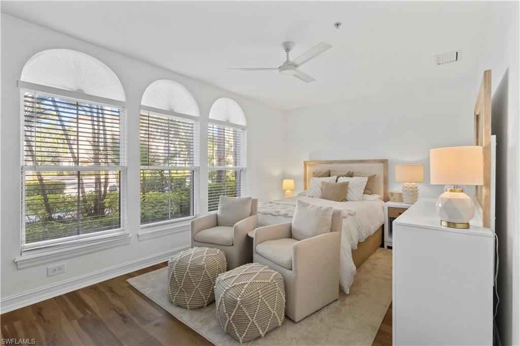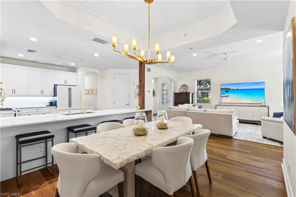 Beautifully renovated first-floor residence in Castillo at TiburxF3;n offering the comfort and feel of a private villa with the ease of condominium living. Remodeled in 2022, this 3-bedroom, 2-bath unit features an open-concept layout created by opening interior walls, Taj Mahal quartzite countertops, CafxE9; Series appliances, and an extended walk-in closet in the primary suite. Additional updates include a tankless water heater installed in 2023 and thoughtful interior enhancements that make this one of the most functional floor plans among the 101 units. The home enjoys golf course views of the 2nd hole of TiburxF3;nx2019;s Gold Course, host of the Grant Thornton Invitational and the LPGA Tour Championship. A two-car attached garage with built-in cabinetry and shelving provides excellent storage. Ideally located directly across from the community pool and grilling area, offering convenient access to one of Castillox2019;s most desirable amenities. Residents enjoy proximity to the Ritz-Carlton Golf Resort at TiburxF3;n, and multiple membership options are available at TiburxF3;n Golf Club, including immediate eligibility for Full Golf Membership with no waiting period. This prime North Naples location also offers convenient access to world-class dining, shopping, and the Gulf beaches.