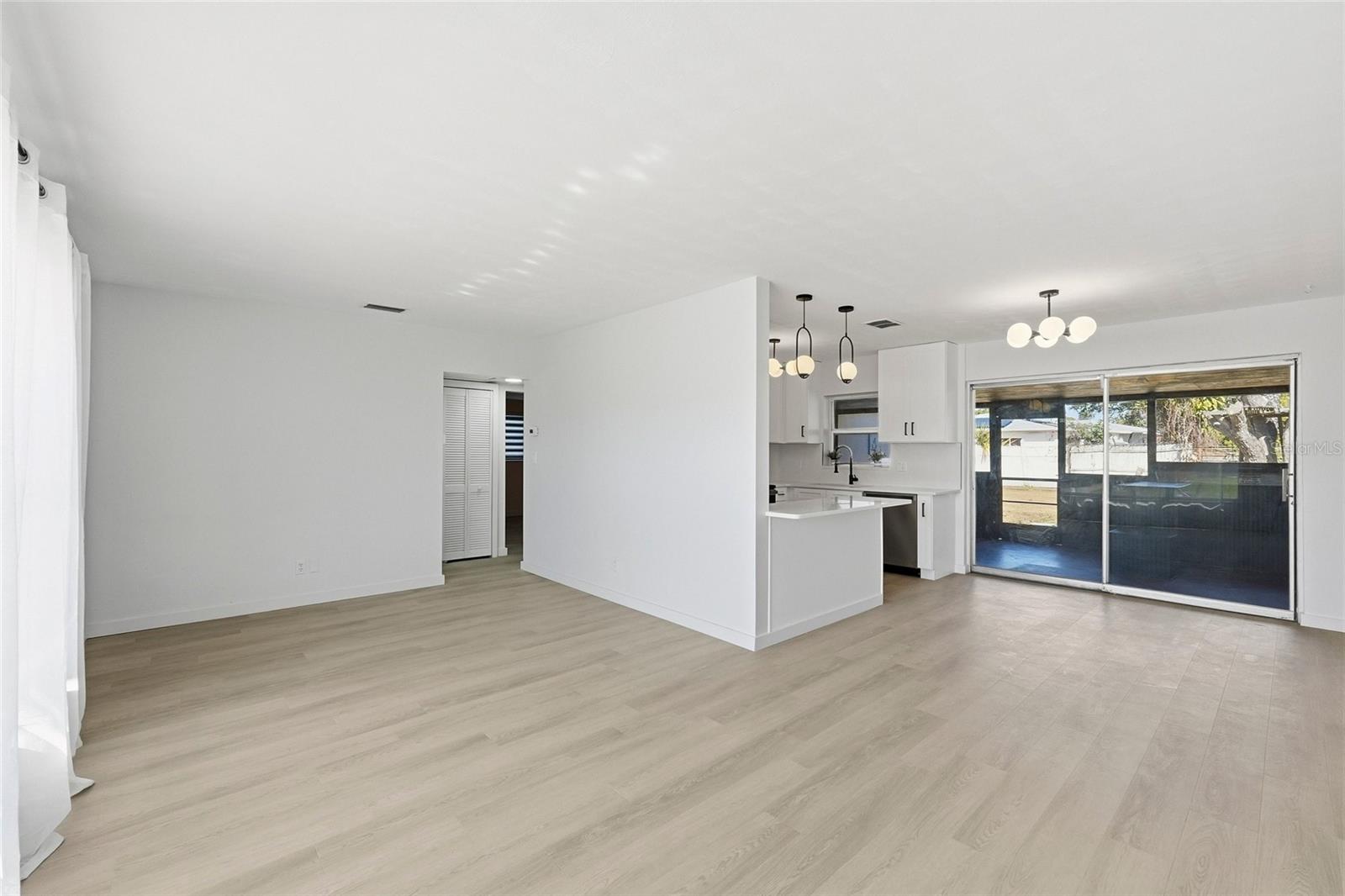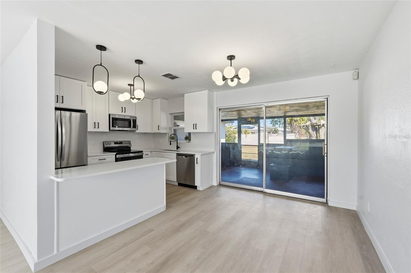 Discover this beautifully renovated 4-bedroom, 2-bathroom SANCTUARY, perfectly situated on a spacious, fully fenced lot in a NO FLOOD ZONE. Offering 1294 sq. ft. of thoughtfully designed living space, this move-in-ready home blends modern style with everyday comfortjust minutes from award-winning Gulf Beaches and vibrant Downtown St. Petersburg. The heart of the home is a stunning designer kitchen featuring sleek modern cabinetry, luxurious quartz countertops, premium stainless-steel appliances, and a breakfast bar ideal for casual dining. Brand-new luxury vinyl flooring flows throughout the living spaces, creating a seamless and inviting atmosphere. The serene primary suite offers a beautifully updated bathroom with a walk-in shower, modern vanity, and built in closet. Three additional bedrooms and a second fully renovated bathroom provide flexibility for family, guests, or a home office. Step outside to enjoy year-round Florida living in your private backyard oasis. A screened-in lanai with a built-in bar, fully fenced yard, and storage shed create the perfect setting for entertaining or unwinding. The oversized one-car garage and generous driveway offer ample parking and storage options. With its prime location near beaches, dining, shopping, and cultural attractions, this home delivers the ideal balance of tranquility and convenience. Dont miss your chance to experience coastal living at its finest. Your dream home awaitsschedule your private showing today.