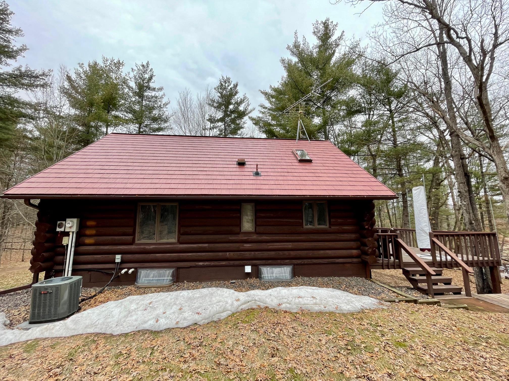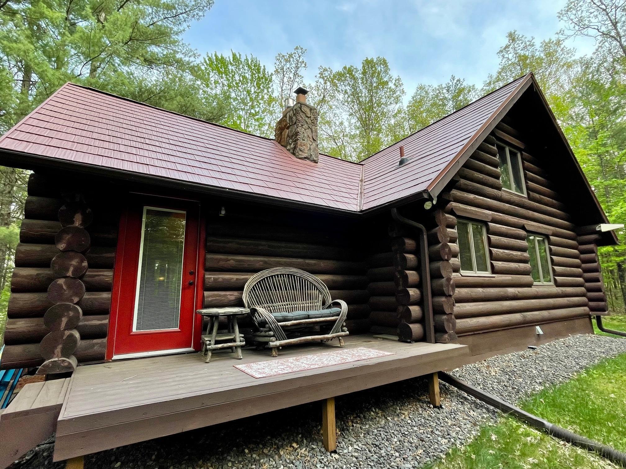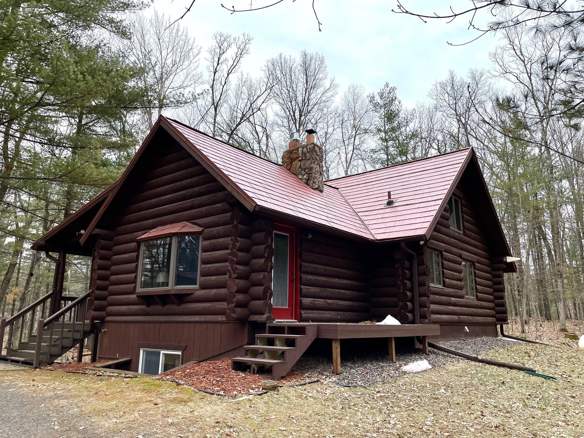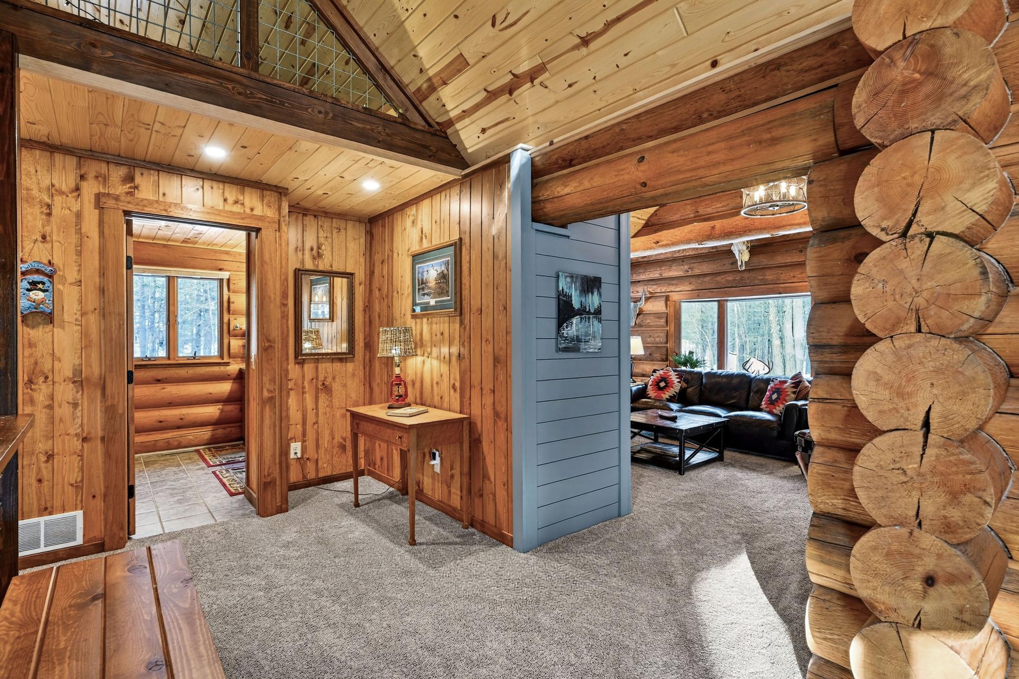 Discover your serene escape at this Unique Log Chalet Cabin, perfectly situated in the heart of Voyager Village, Danbury, WI. This newly renovated gem boasts trendy and stylish furnishings across its two bedrooms with full loft and two bathrooms, ensuring a cozy and chic retreat. Nestled among the trees, it offers tranquility just a short stroll from the picturesque FOXX Loop trail. Adventure awaits with direct access to UTV/ATV and snowmobile trails right from your doorstep. The detached three-car garage presents endless potential with a possible bunkhouse or game room. Embrace nature's beauty and refined living in this enchanting woodland getaway.