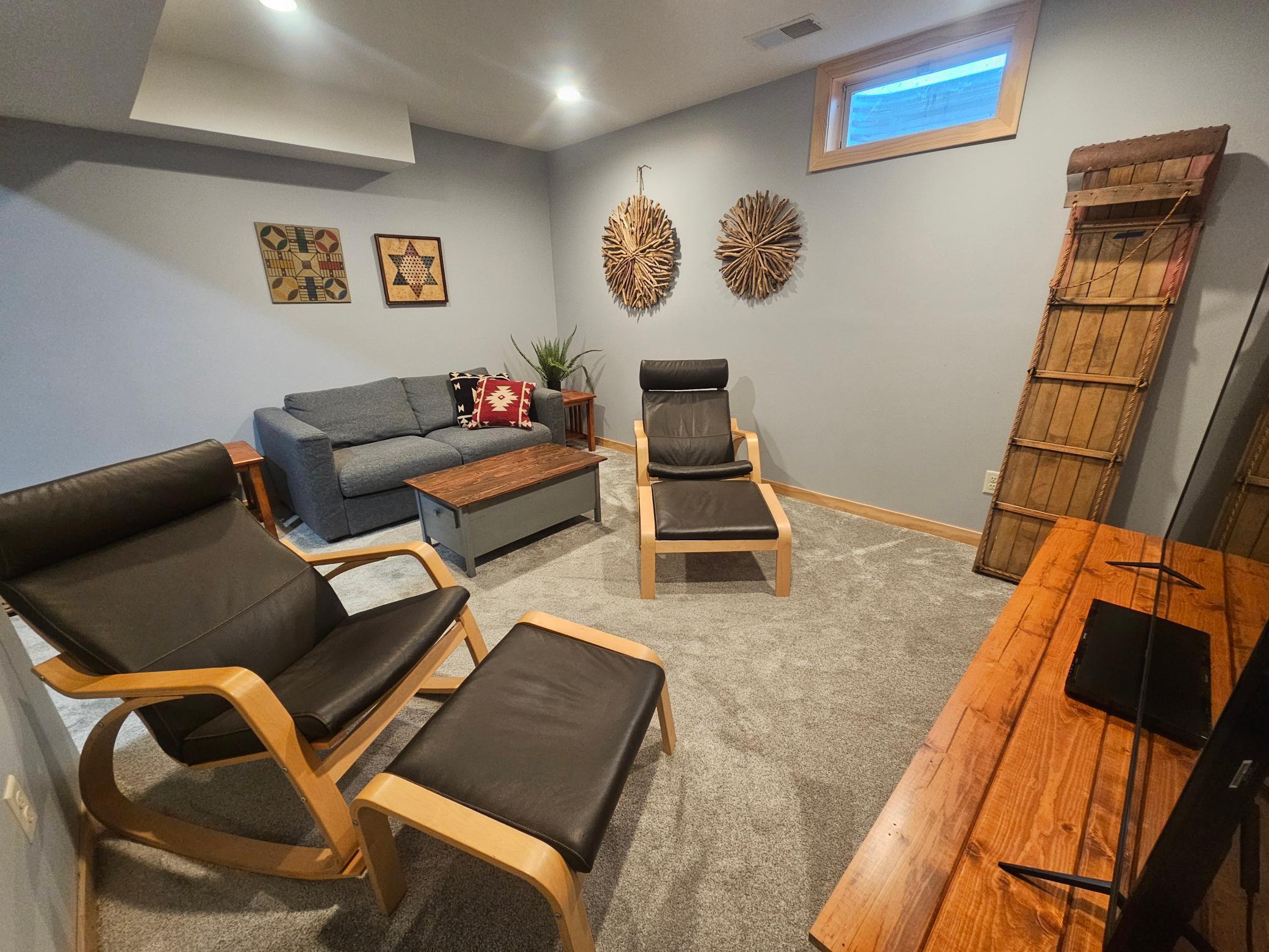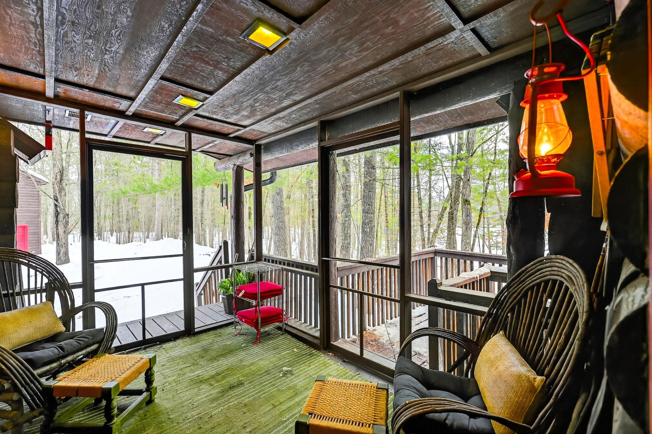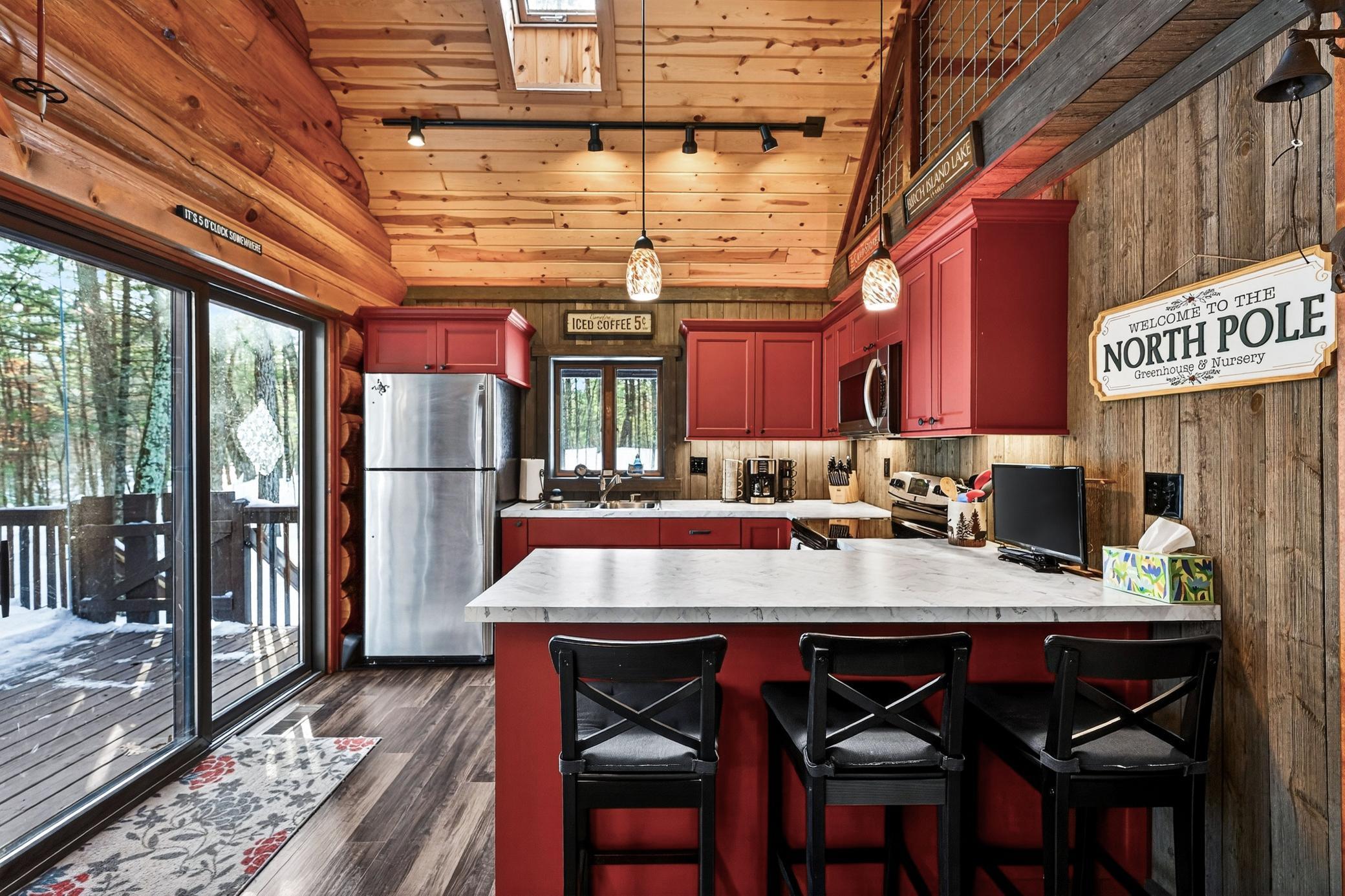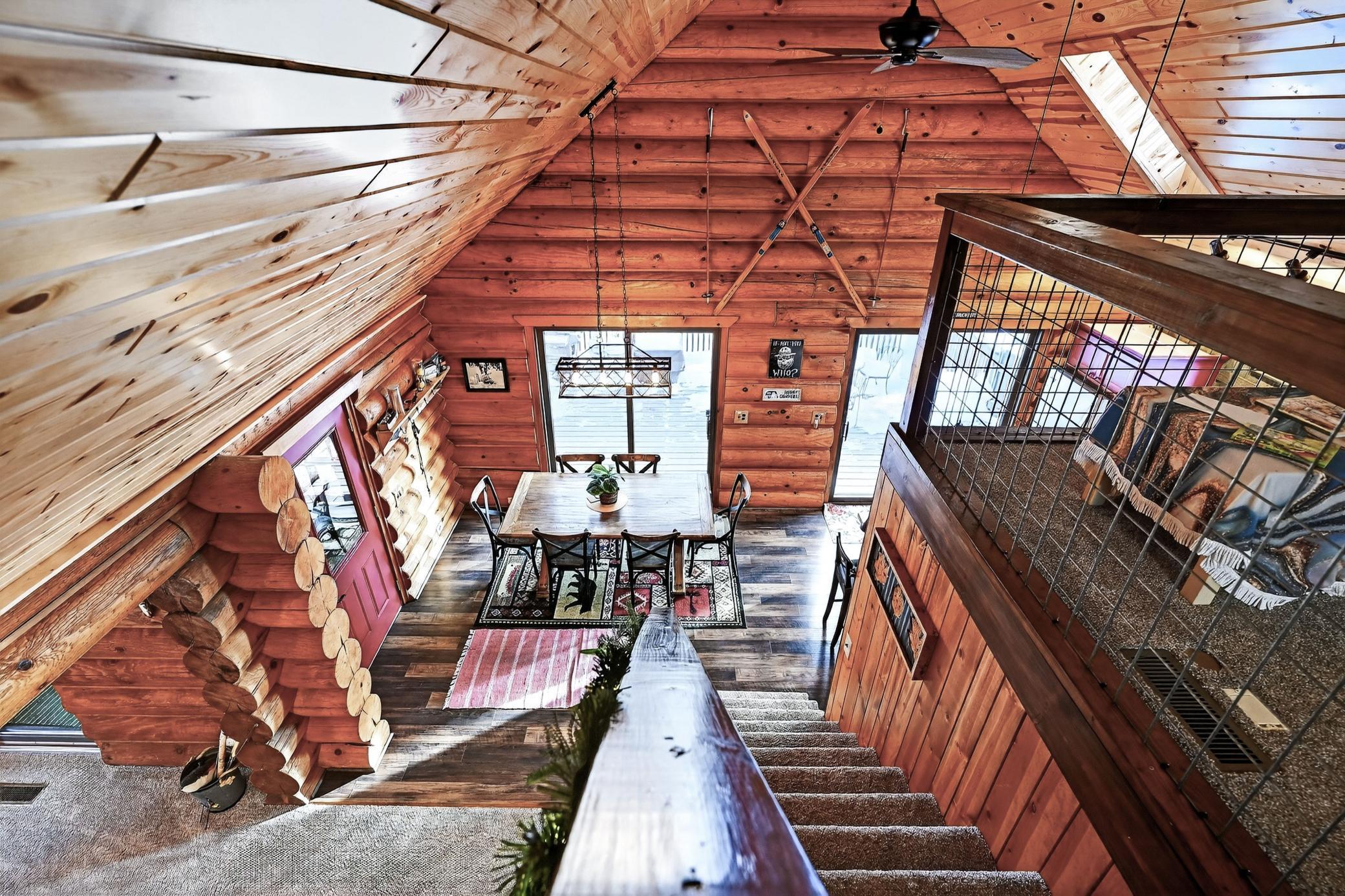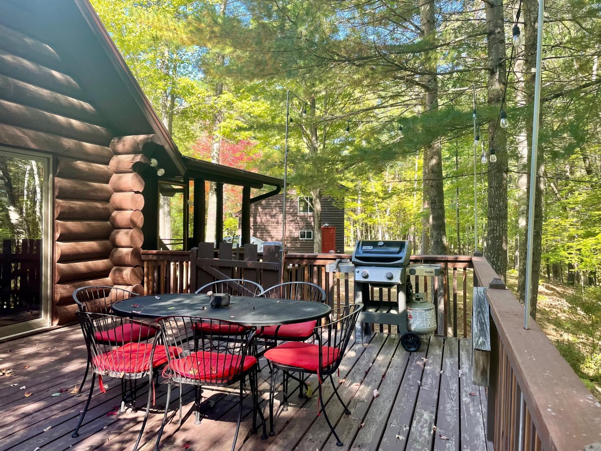 Discover your serene escape at this Unique Log Chalet Cabin, perfectly situated in the heart of Voyager Village, Danbury, WI. This newly renovated gem boasts trendy and stylish furnishings across its two bedrooms with full loft and two bathrooms, ensuring a cozy and chic retreat. Nestled among the trees, it offers tranquility just a short stroll from the picturesque FOXX Loop trail. Adventure awaits with direct access to UTV/ATV and snowmobile trails right from your doorstep. The detached three-car garage presents endless potential with a possible bunkhouse or game room. Embrace nature's beauty and refined living in this enchanting woodland getaway.