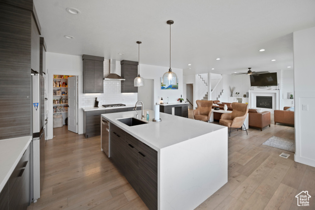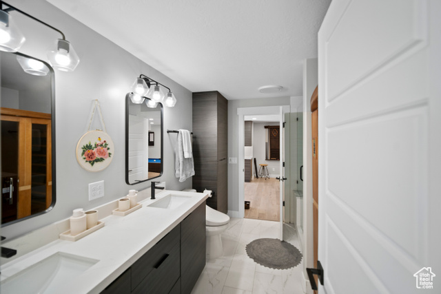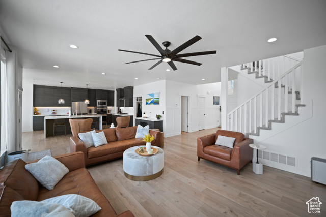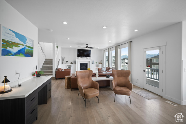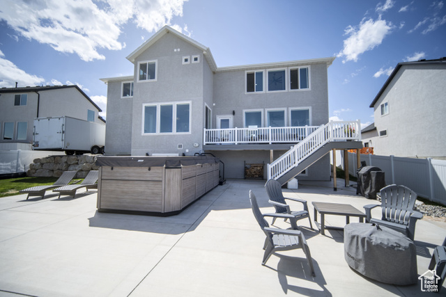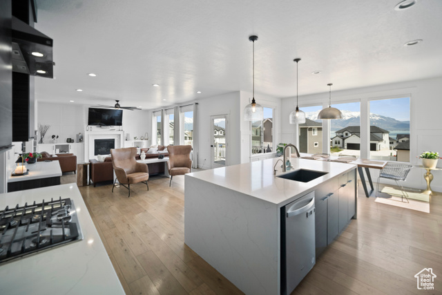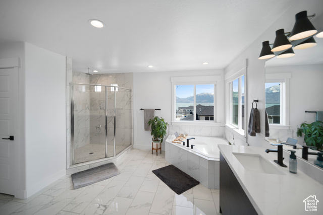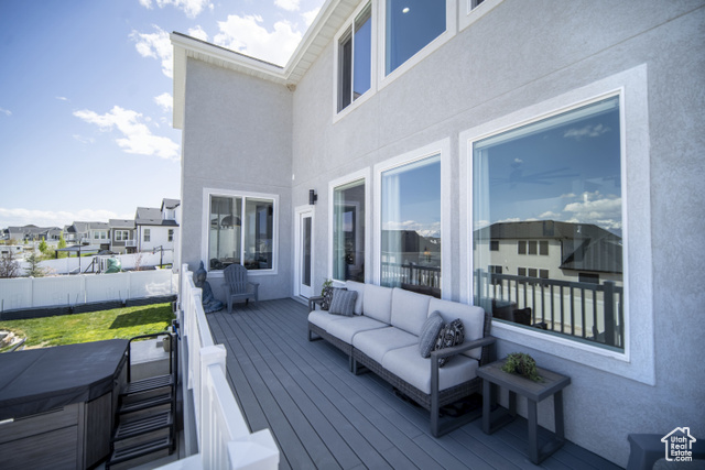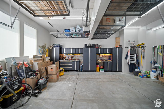 Welcome HOME to this beautiful home where modern design meets top-tier upgrades. The main floor features custom built-in shelving, upgraded lighting, and an open-concept layout perfect for entertaining and enjoying the amazing views of Utah Lake and the Wasatch Mountains. Enjoy the counter depth refrigerator, elegant hardware (no more builder grade stuff..) and designer light fixtures. A dedicated office with built-in bookshelves offers a quiet retreat for work or study. Throughout the whole home, you have motorized blinds that are rechargeable! Upstairs you have spacious bedrooms and tons of space. The primary suite boasts enhanced lighting and fixtures for a spa-like experience, all bedrooms have plenty of light, and include ceiling fans. The walkout basement is where this home really shines! It is a true showstopper, featuring a complete in-law suite with a full second kitchen, large bedroom, private laundry, and a high-end bathroom with a three-head shower and infrared sauna. Beyond that you have an amazing home FULLY CUSTOM home theater with built-in Dolby Atmos 11.2 surround sound and reclining seats, and just wait until you see the fully finished safe room - fire rated and can be used as a safe room too. The heated and cooled garage is fully finished (painted and new lights) and equipped with commercial-grade gym flooring and equipment, built-in steel storage solutions, overhead racks, and a stainless utility sink. Out back, you have amazing views from the professionally landscaped yard with a multi-tier rock wall and custom cement patio. The crown jewel is a Bullfrog S200 Swim Spa, set on 6" thick reinforced concrete-offering hydrotherapy, resistance swimming, and fun for the whole family. See attached document for full list of upgrades and specs for theater room, gun safe, sauna, swim spa, and more.