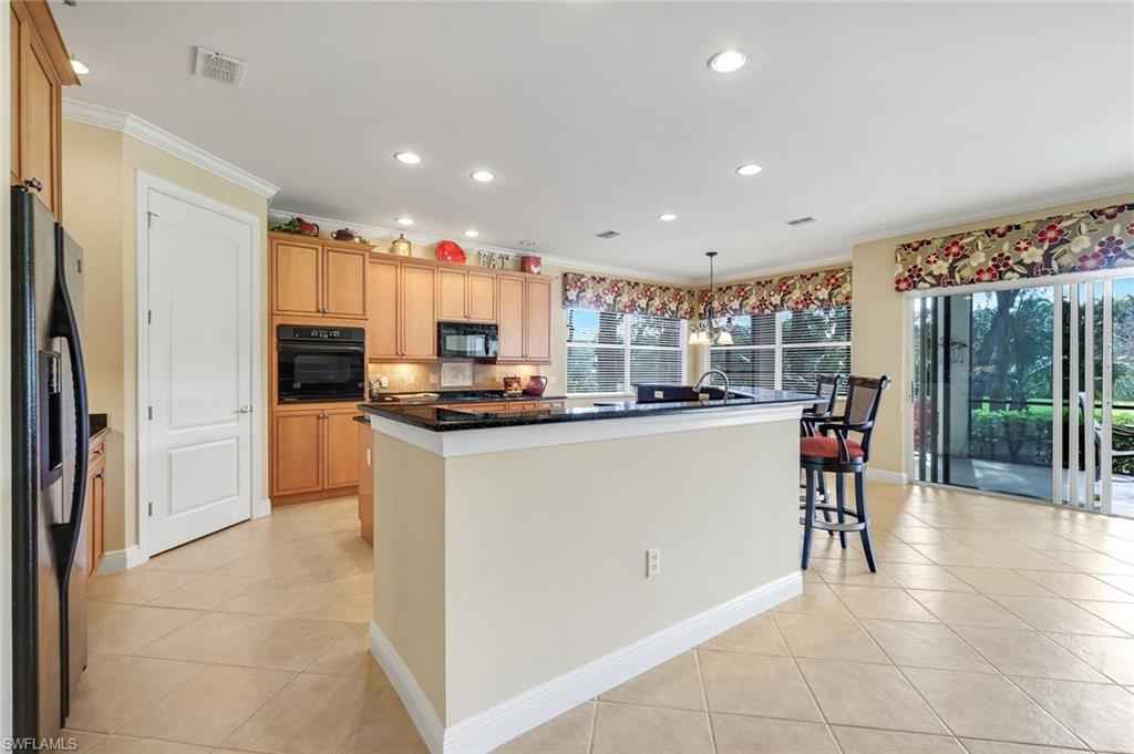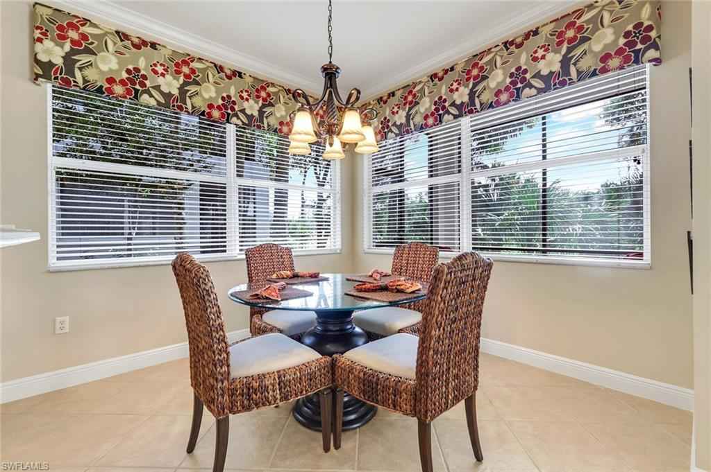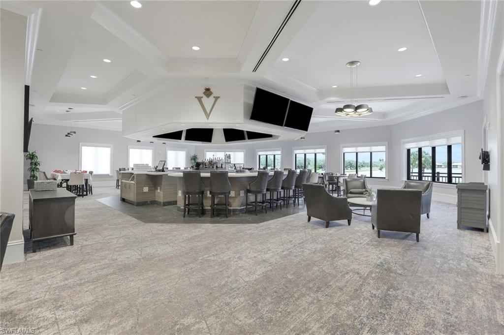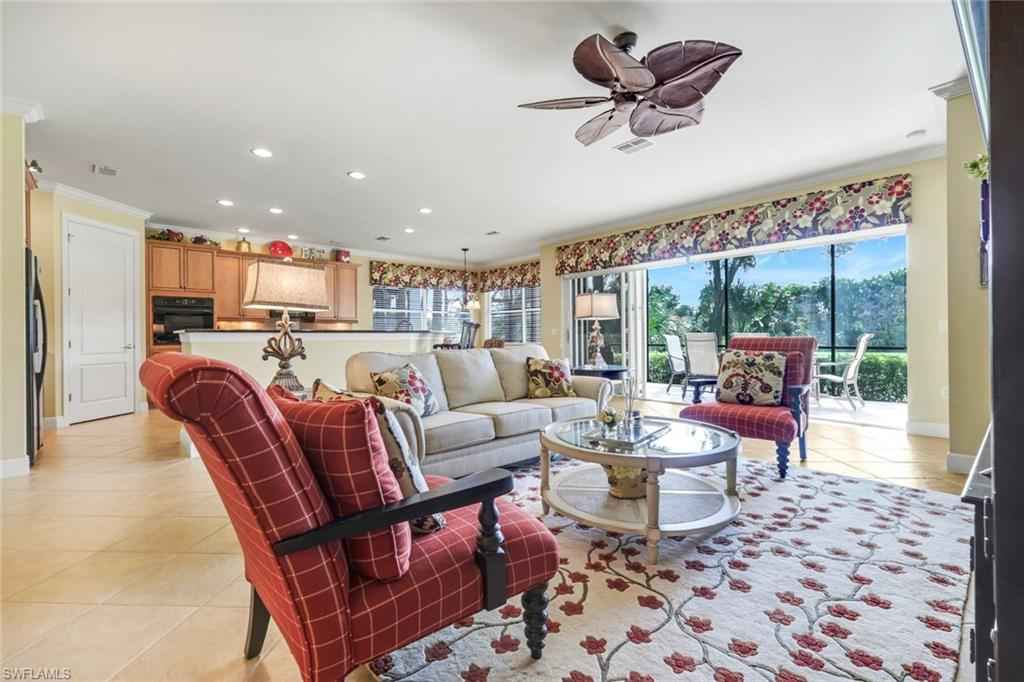 Nestled in the picturesque development of Vasari, this exquisite lakefront property offers an unparalleled blend of luxury and convenience within a prestigious bundled golf community. Boasting panoramic views of the golf course, this home is a haven for those seeking a resort-style lifestyle. Upon entering, you'll be captivated by the professionally decorated interiors featuring custom cornice boards and upholstered finishes as well as tile and engineered wood flooring throughout. Enjoy volume ceilings, fresh neutral paint palette, a large kitchen that as great for entertaining family & friends and sold fully furnished for immediate enjoyment. The spacious open-concept floor plan seamlessly integrates indoor and outdoor living, perfect for both relaxation and entertaining. Residents can indulge in a wealth of community amenities including an 18-hole golf course, a state-of-the-art golf practice facility, lighted Har-Tru tennis courts, a pro shop, bocce, pickleball (coming soon), a resort-style pool and spa, and a clubhouse offering dining and social spaces with a full calendar of events. The property also includes a convenient 2-car attached garage and offers immediate golf membership upon purchase. Situated in a prime location, it is within easy reach of North Naples' vibrant shopping and dining, as well as the charming downtown of Bonita Springs, providing the perfect blend of tranquility and accessibility.