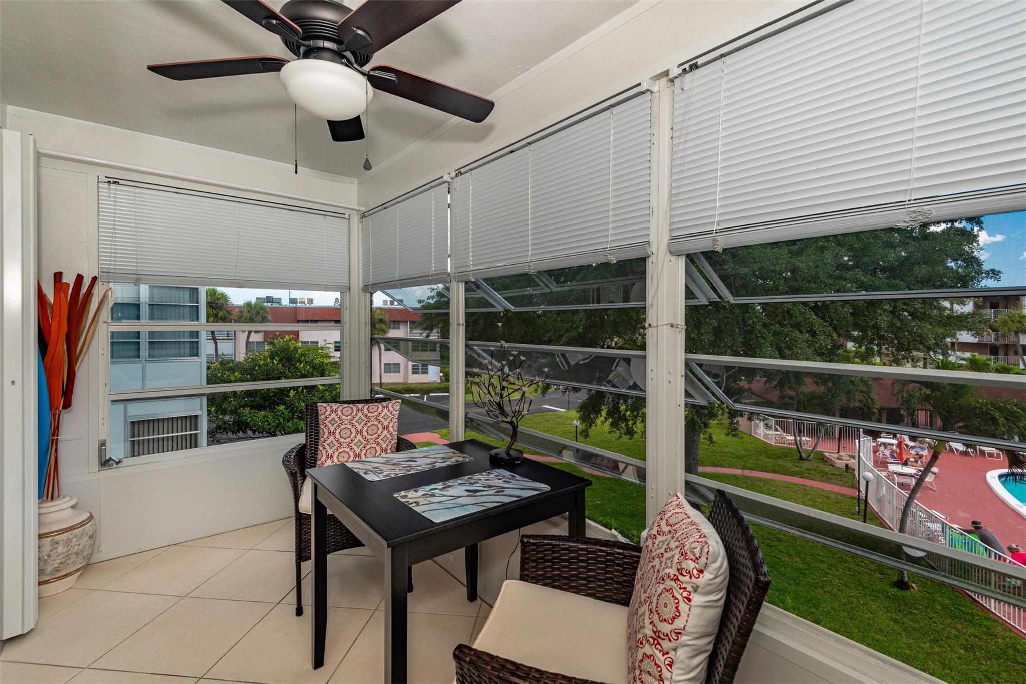 Very nice 1 bedroom, 1 bath condo, a adult community in Lauderdale Oaks. Come all furnish and turnkey. Update kitchen and bathroom, tiles through out, beautiful view of the pool, hurricane windows, hurricane shutter in the patio door, 2 cameras view inside unit and parking area. Amenities are: Heated pool, shuffleboard, Petanque, pickle ball, exercise and billiard room. Good location, close to main road, shops, airport, hospital, beach.