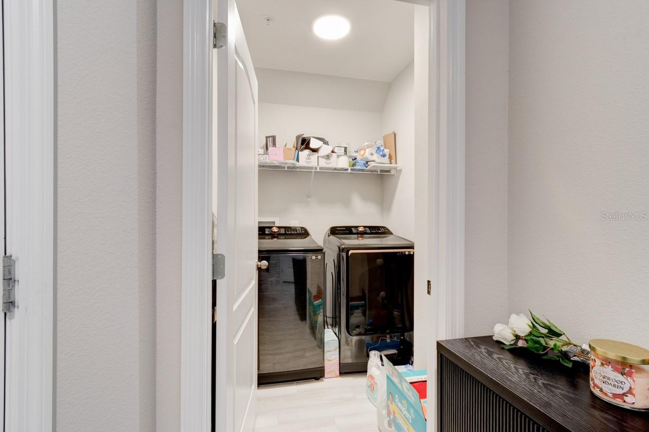 Welcome Home! This beautifully upgraded 3-bedroom, 2.5-bath townhome with a 1-car garage is move-in ready and packed with features youll love.Step into an open-concept floor plan with neutral tones and no carpet on the first floor. The modern kitchen boasts quartz countertops, stainless steel appliances, and overlooks the spacious living area, which opens to a screened-in back porch with a privacy screen on one sideperfect for relaxing or entertaining.Upstairs, youll find all three bedrooms, including a generously sized primary suite with a large walk-in closet and en-suite bathroom featuring dual sinks. The split floor plan adds privacy, and a loft area provides a flexible space ideal for a family room or home office. The two additional bedrooms share a full bathroom.Additional highlights include: One-car garage with a Tesla charger already installed Brick paver driveway with extra length for additional parking Gated community with a pool just steps from your front door Zoned for highly rated A-rated schools, including gifted and charter programs Easy access to major routes including I-4This home offers comfort, convenience, and style in a sought-after location. Dont miss it!