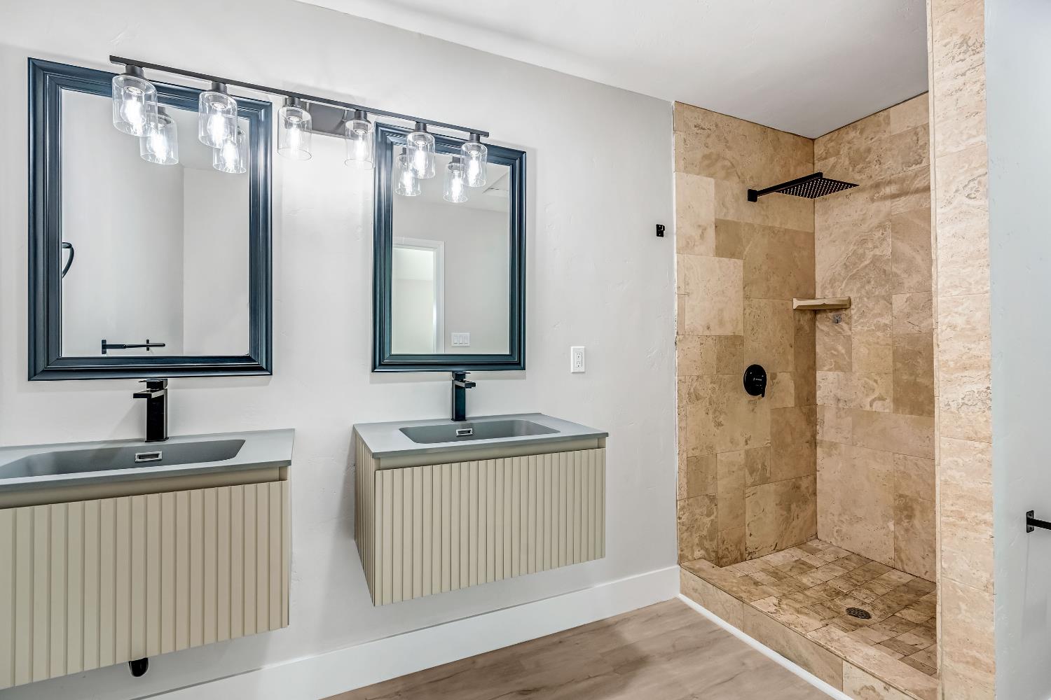 Fully remodeled and move-in ready, this 4 bedroom, 3 bathroom home offers 2,719 sqft of living space on 2 acres with incredible views of the surrounding mountains and table tops. The property makes a strong first impression with a block wall entrance with two iron gated access points and a huge wrap-around driveway with an automatic gate. Inside, the home features a bright open floorplan with a massive great room that flows right into the kitchen. The kitchen has been completely updated with new soft-close cabinets, quartz countertops, subway tile backsplash, a large farm sink, upgraded stainless appliances, and plenty of storage. Everything has been updated throughout the home including new flooring, new windows, and a variety of custom touches like accent walls and floating vanities that give the home a clean, modern feel. The layout works well for a variety of living situations with two primary suites located upstairs and two guest bedrooms downstairs. Outside, the 2-acre lot gives you space and flexibility. The detached 2-car garage and large open areas make this property a great setup for a future shop, ADU, or additional improvements. Located just outside the city, you get the peace and privacy of country living while still being close to town. Call today to schedule a private showing.