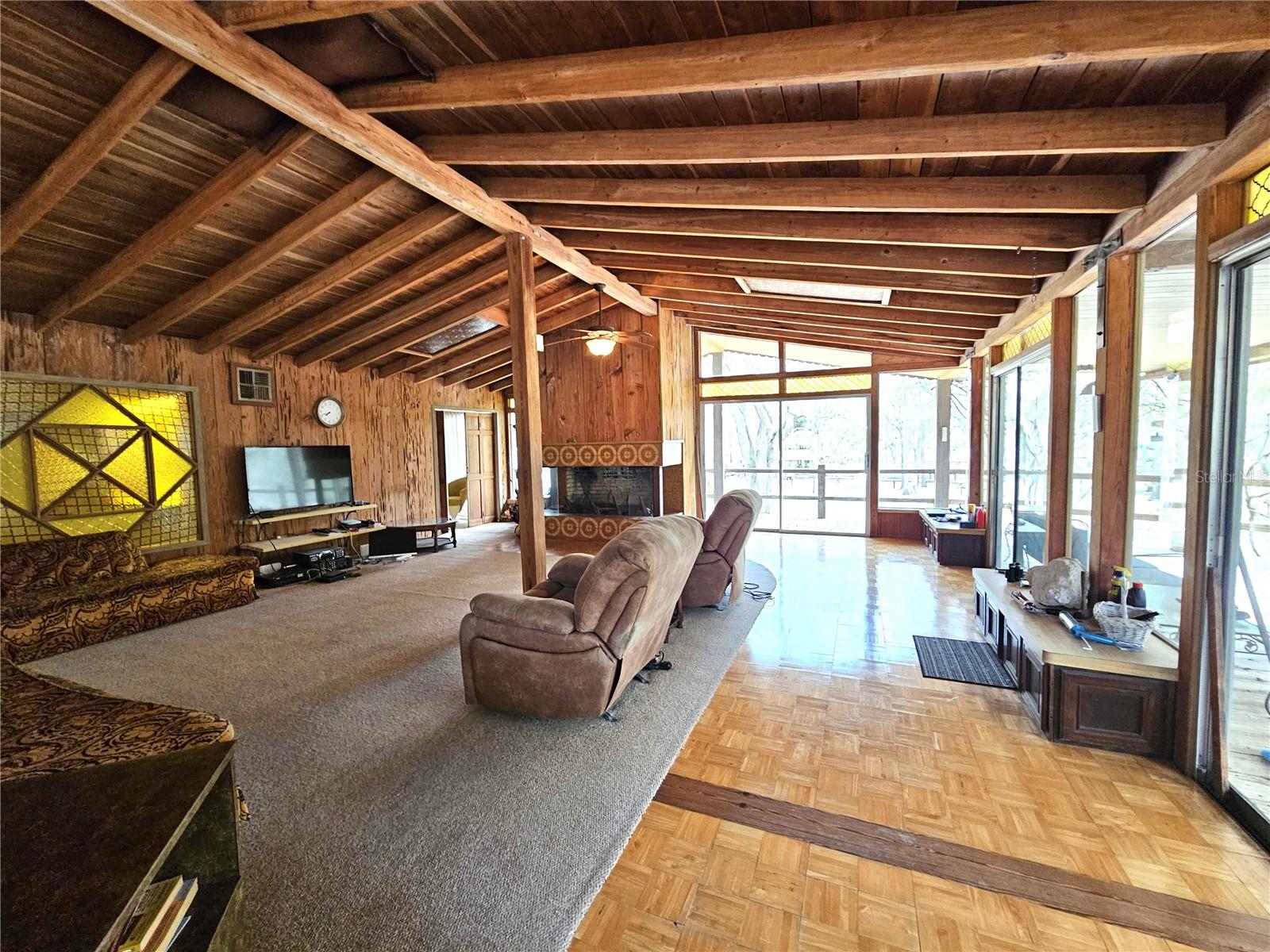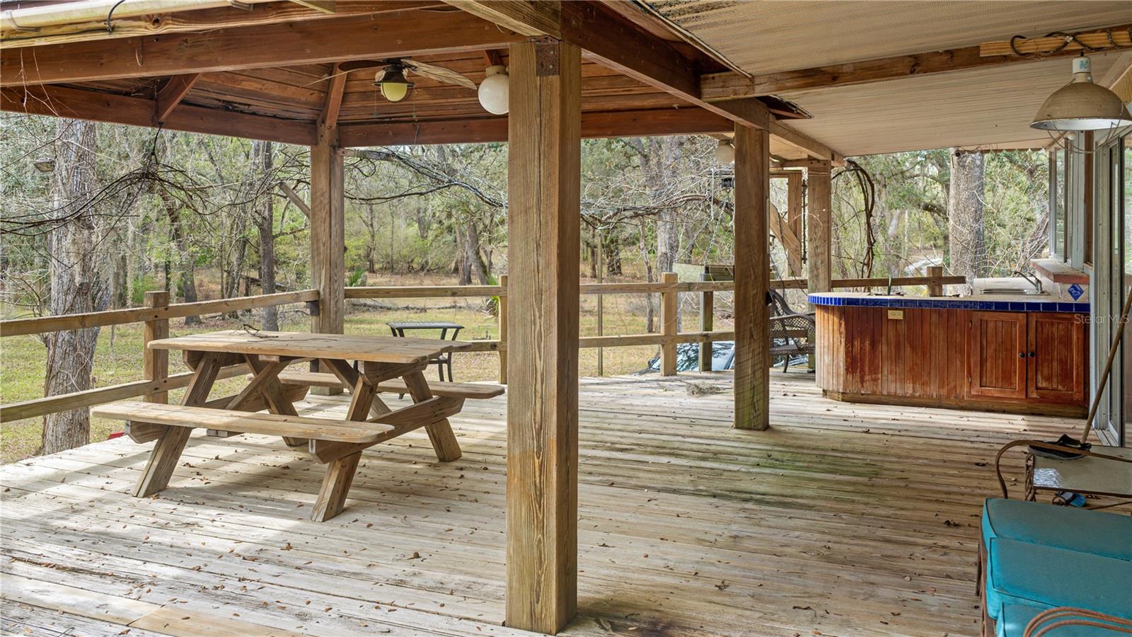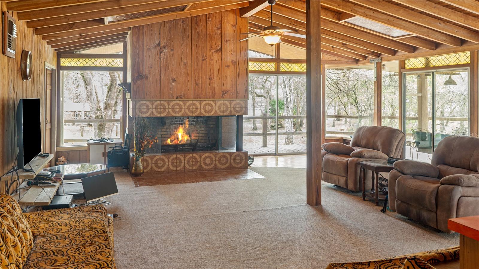 An extraordinary opportunity to own nearly half a mile of pristine Suwannee River frontage across approximately 36.9 acres in North Florida. This remarkable riverfront property offers approximately 2,017 feet of frontage, nearly 1/2 mile, along one of the most beautiful and unspoiled stretches of the Suwannee River, complete with a natural sandy beach and breathtaking views of the surrounding landscape.Set high above the river, the property features a 2,610-square-foot elevated lodge-style, 3 bedroom 4 bath home designed to capture the beauty of its natural surroundings. The residence showcases soaring vaulted wood ceilings, expansive windows framing panoramic river views, and a dramatic stone fireplace that serves as the centerpiece of the main living area. Inspired by mid-century modern design elements and natural materials, the home blends seamlessly into the landscape and offers a peaceful treehouse-like setting overlooking the river. A spacious wraparound porch provides the perfect place to relax and take in the tranquil scenery.The property also includes a Florida Department of Environmental Protection Sovereign Submerged Land Lease covering approximately 22,609 square feet of the Suwannee River designated for a commercial swimming area, historically used for river recreation associated with the property.Additional structures and improvements remain throughout the property including pavilions, gathering areas, and recreational spaces. These areas previously supported outdoor gatherings and events while preserving the natural character of the land.Utilities include electric service, well water, septic systems, underground plumbing throughout portions of the property, and fiber optic internet availability. The landscape offers a beautiful mix of mature trees, open spaces, and scenic river views with both sun and shade throughout the property.Located in the heart of Floridas renowned spring region, the property is within close proximity to Ginnie Springs, Gilchrist Blue Springs, Poe Springs, and Rock Bluff Springs. Everyday conveniences including grocery stores, medical offices, restaurants, and banks are approximately ten minutes away, while Gainesville and Lake City are both within about forty-five minutes.This unique riverfront property offers exceptional privacy, natural beauty, and a rare opportunity to own a significant stretch of Suwannee River frontage.