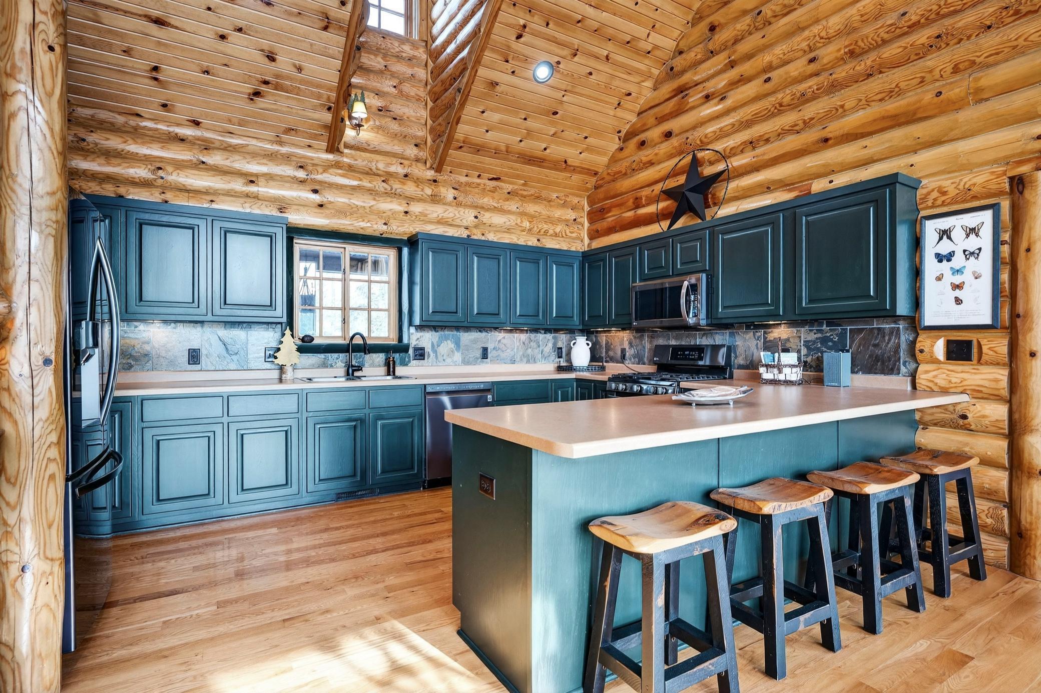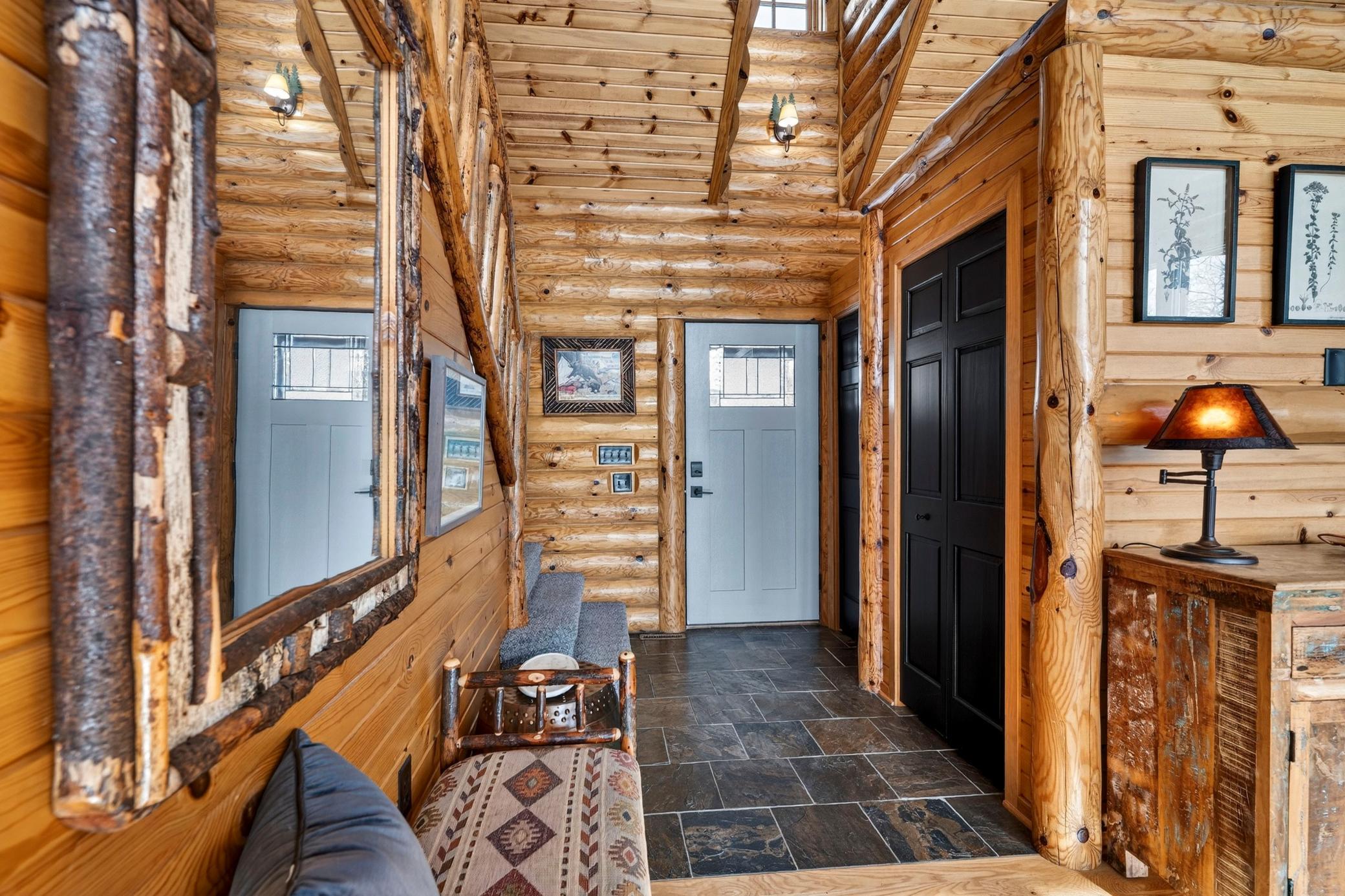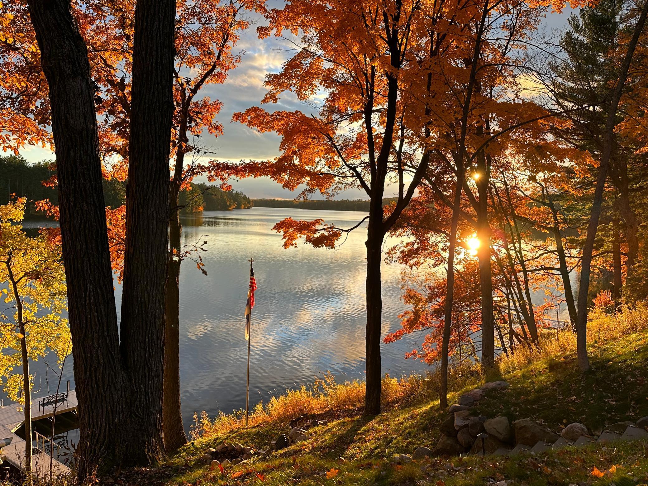 Stunning property on Long Lake! This immaculately cared-for 4-BR, 3-BA chalet-style home offers 3,200 sq ft of open-concept living space with breathtaking lake views on a private lot. Inside, soaring wood ceilings, half-log interior details, hardwood floors, heated tile bathrooms, and a stone fireplace create a cozy yet elegant retreat. The walk-out lower level features a spacious family room with a wet bar, perfect for entertaining. Wake up to lake views from the luxurious owners suite with fireplace. Enjoy outdoor living with a screened porch, decks, a lakeside patio, and a professionally landscaped lot with stone steps to the shoreline and a sandy swimming area. Recent updates include a new 50-year roof, heated garage, stamped concrete sidewalks, circular driveway, new laundry room, new furnace, Generac generator, and more. Long Lake offers 19 miles of exceptional fishing and boating, scenic shoreline, sandbars, a marina, and a boat-up golf course. ATV trails nearby. Sold with some furnishings.