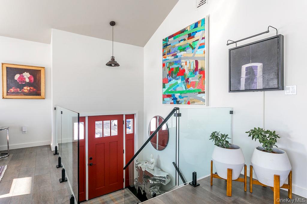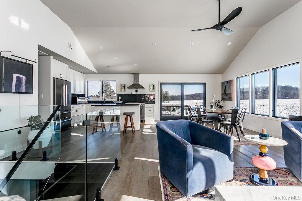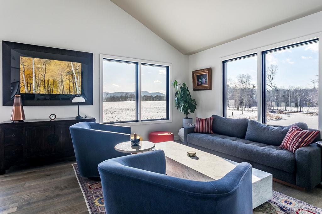 Surrounded by conserved land and elevated to maximize beautiful Shawangunk, Mohonk Mountain House/Skytop and meadow views, this recently reimagined home offers privacy and tranquility with gorgeous sunrises and sunsets providing an everchanging viewshed. Upon entering the home, you are greeted by modern sophistication and inviting open concept. The kitchen is outfitted for the true cook, with stainless steel Bertazzoni appliances, convenient over-the-stove pot filler, marble backsplash, island and honed granite countertops. The bright dining area opens to a spacious deck with glass surrounds, providing unobstructed views of the picturesque surroundings and perfect for al fresco dining. The living room is enhanced with high ceilings and an abundance of windows, serving as a perfect retreat to unwind while soaking in the natural beauty. The main level hosts three well-sized bedrooms and two full bathrooms, including one en-suite in the primary bedroom with large walk in shower. The primary bedroom offers direct access to the rear deck, enhancing the indoor-outdoor living experience. Descending one level discover the fourth bedroom, flexible space (think gym/studio/office) and third full bath. This level includes a laundry room with convenient exterior door and seamlessly connects to the two-car garage, providing direct and practical access. The hardie-plank siding, new roof, generator and paved driveway ensures many years of low level maintainence. A true country setting, this residence offers the allure of rural living while being conveniently located just a few minutes from local stores and restaurants. Five minute walk to the O&W Rail Trail to walk, bike and enjoy the sites and sounds of nature. A short drive to Mohonk Preserve, Minnewaska State Park. 90 minutes from the GWB, convenient to Route 87 and exits 18 and 19 (New Paltz and Kingston).